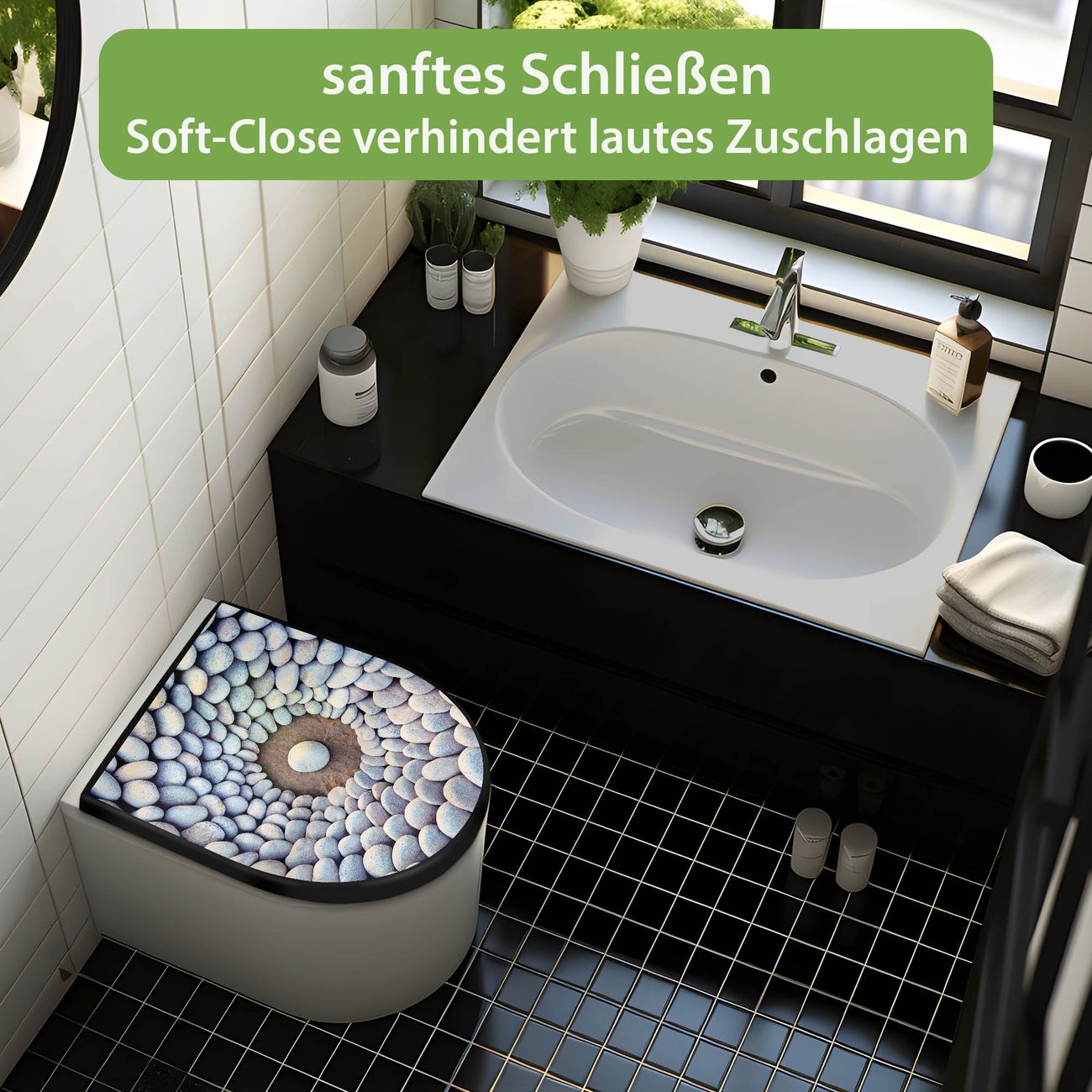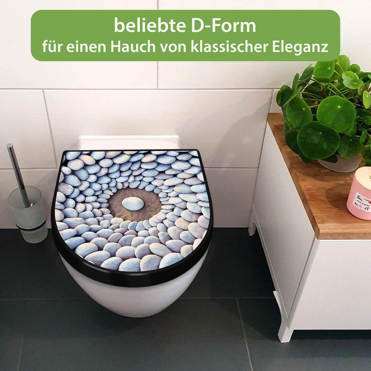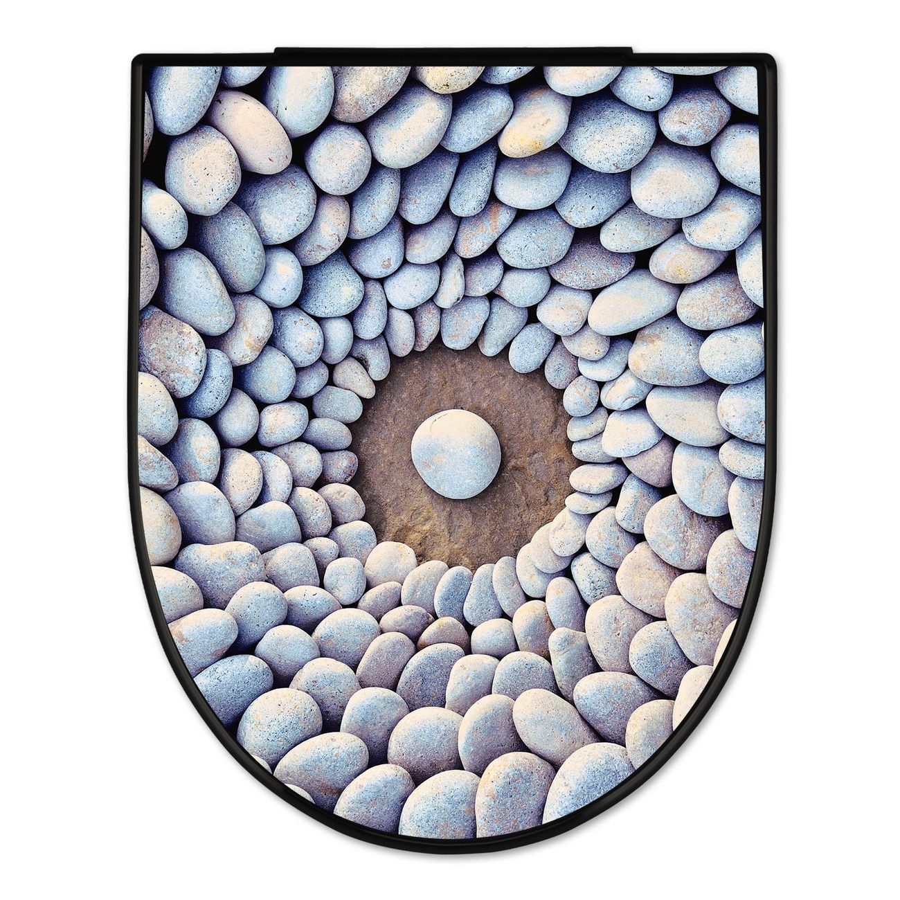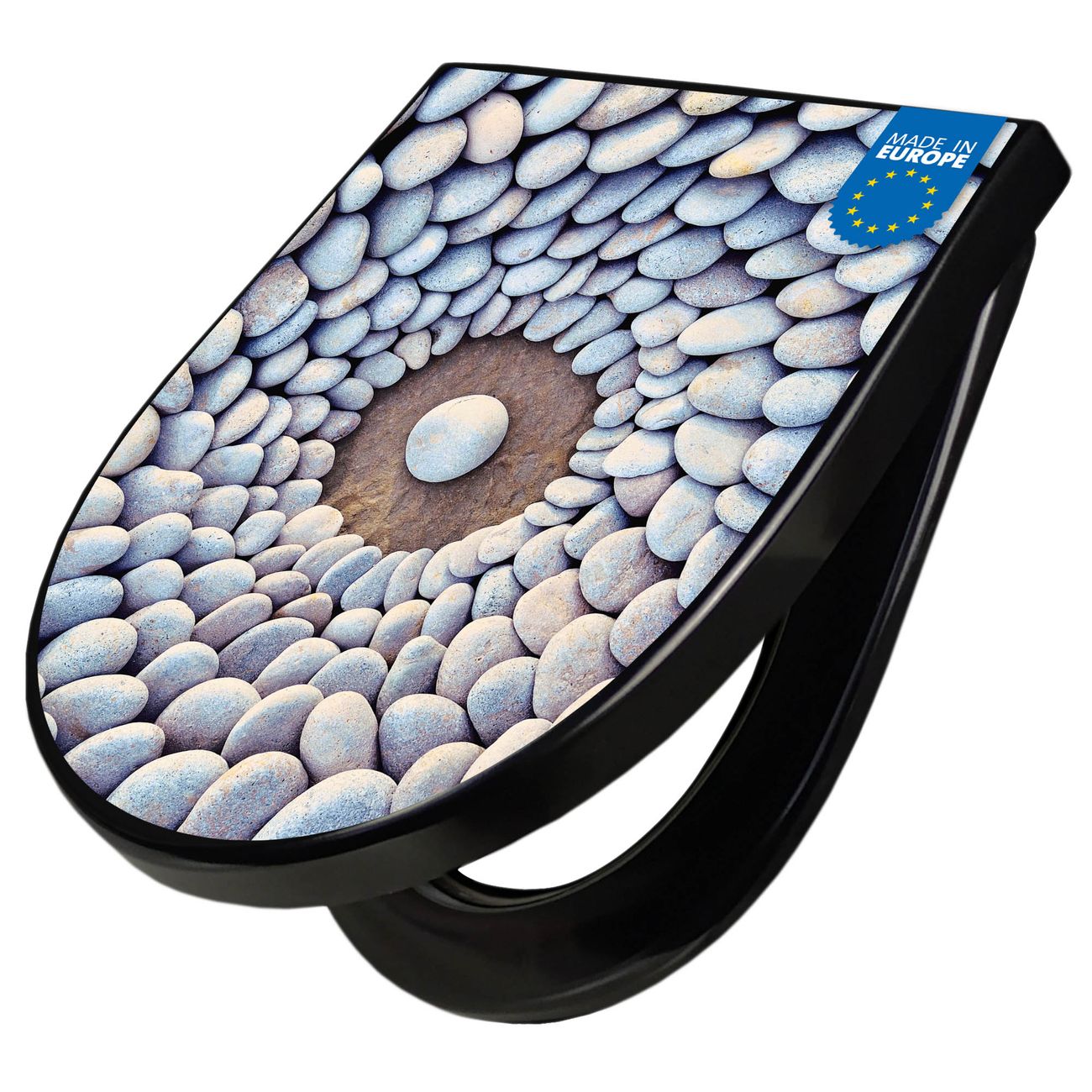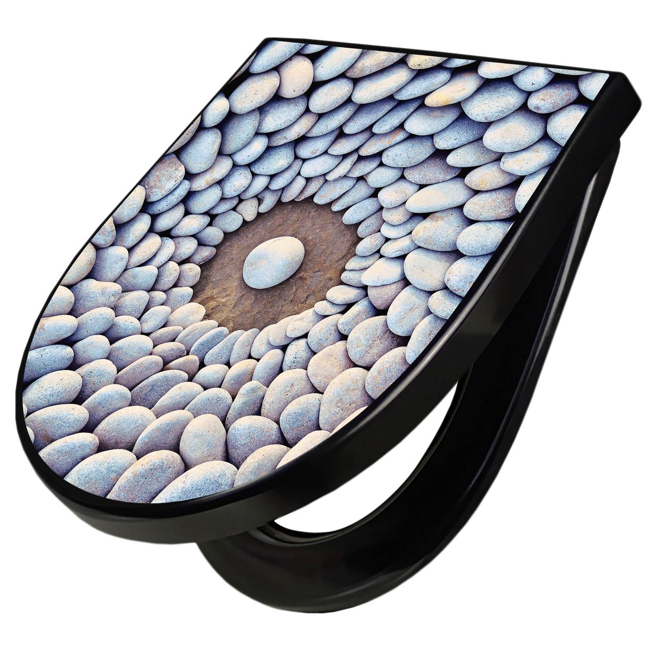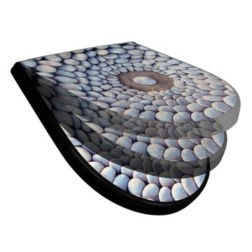 WC Sitz D-Form Schwarz mit Absenkautomatik Motiv Steinkreis