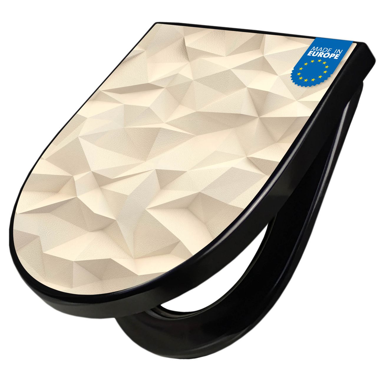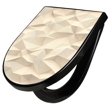WC Sitz D-Form Schwarz mit Absenkautomatik Motiv Steinwand 2