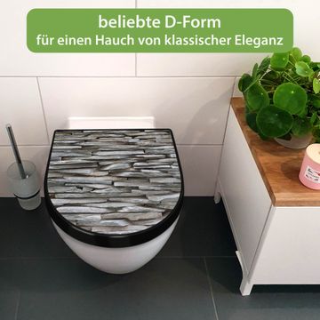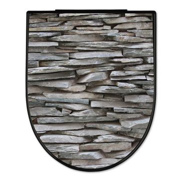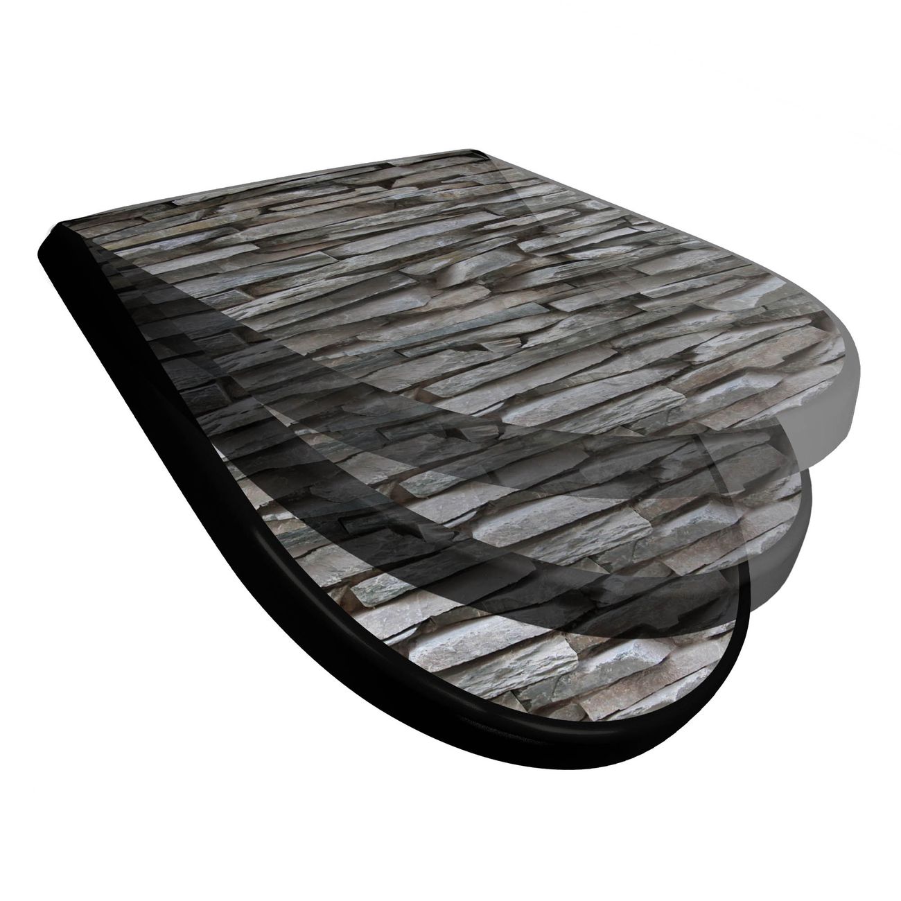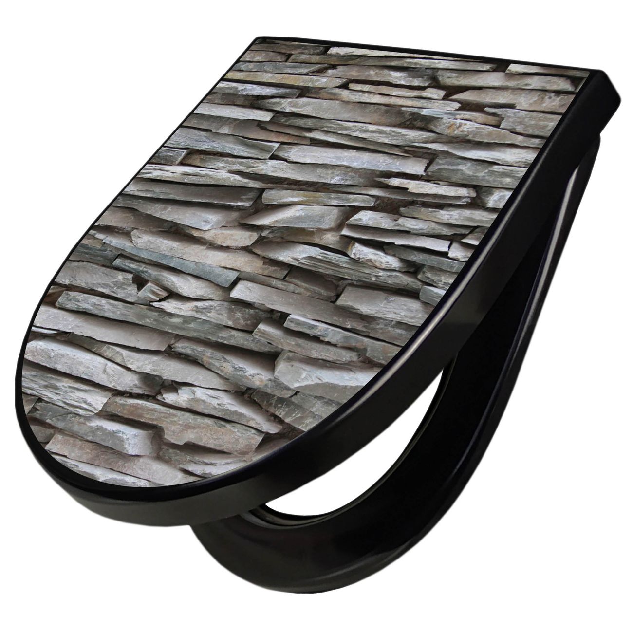 WC Sitz D-Form Schwarz mit Absenkautomatik Motiv Steinwand