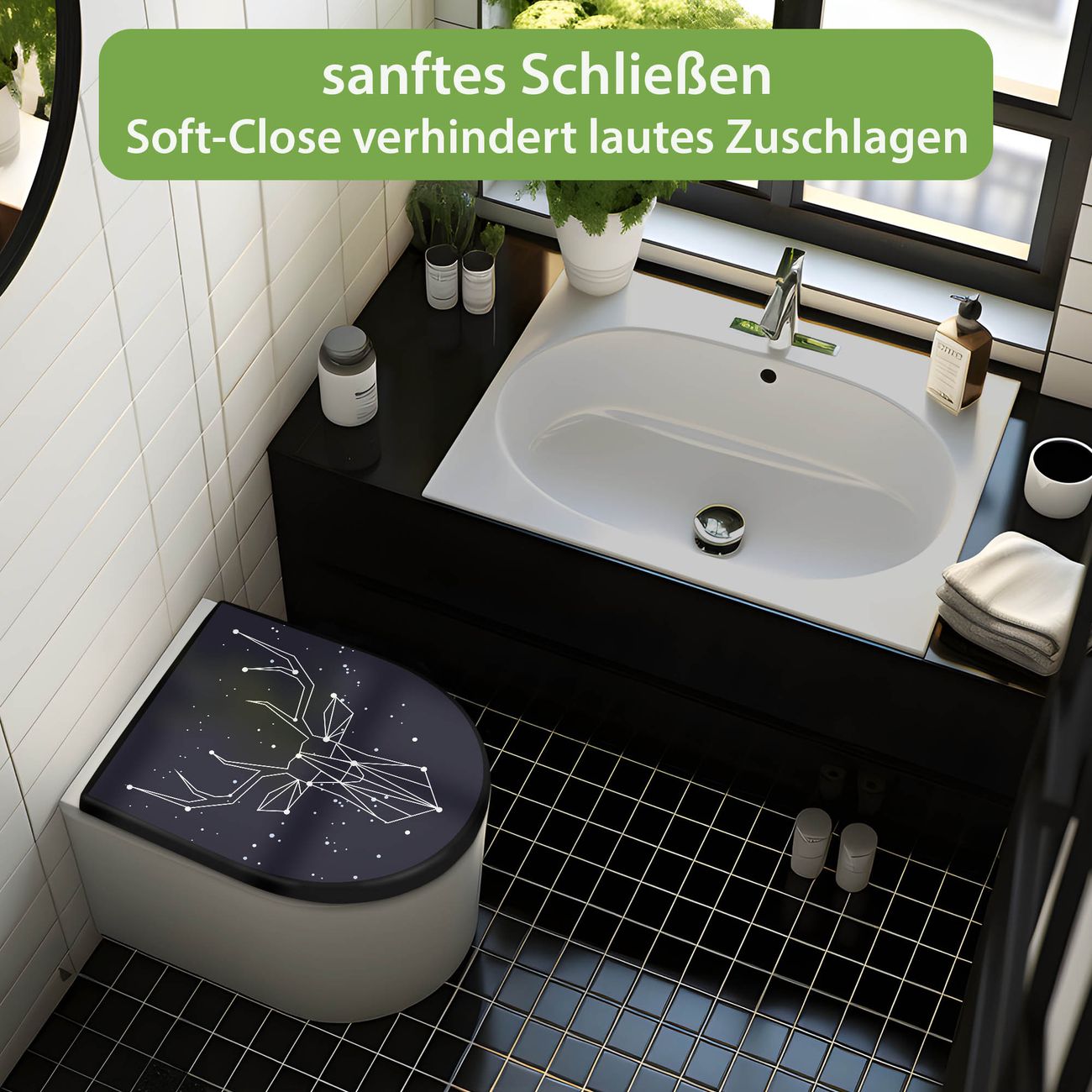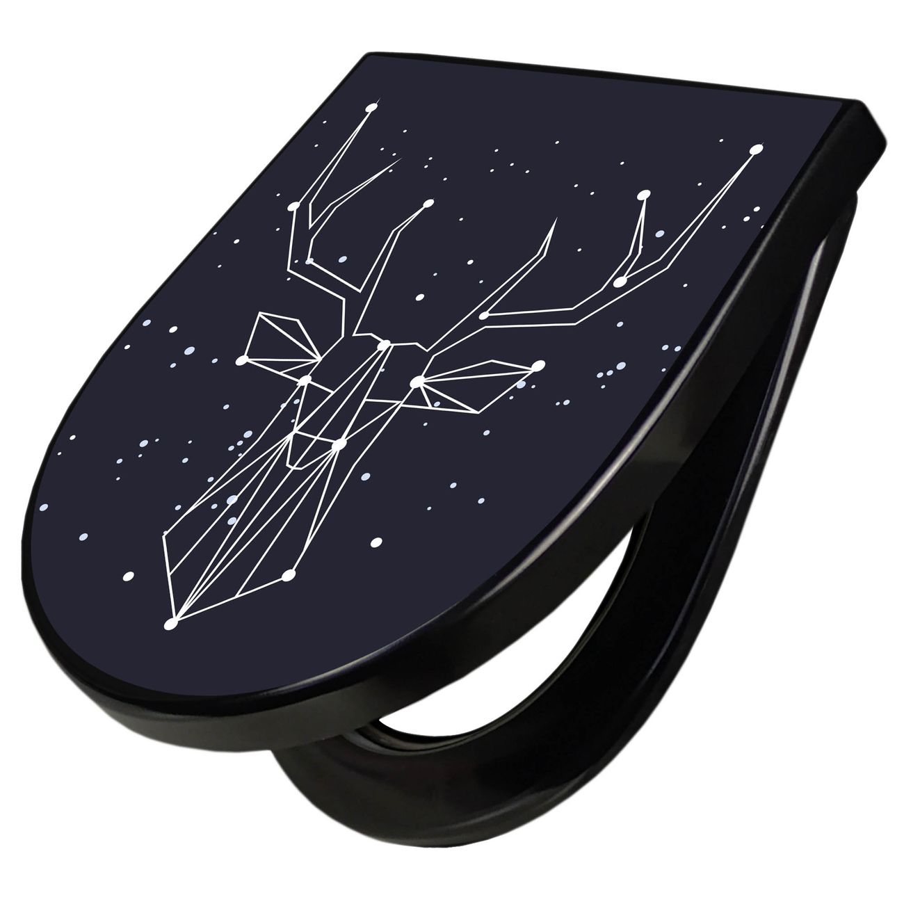 WC Sitz D-Form Schwarz mit Absenkautomatik Motiv Sternbild Hirsch