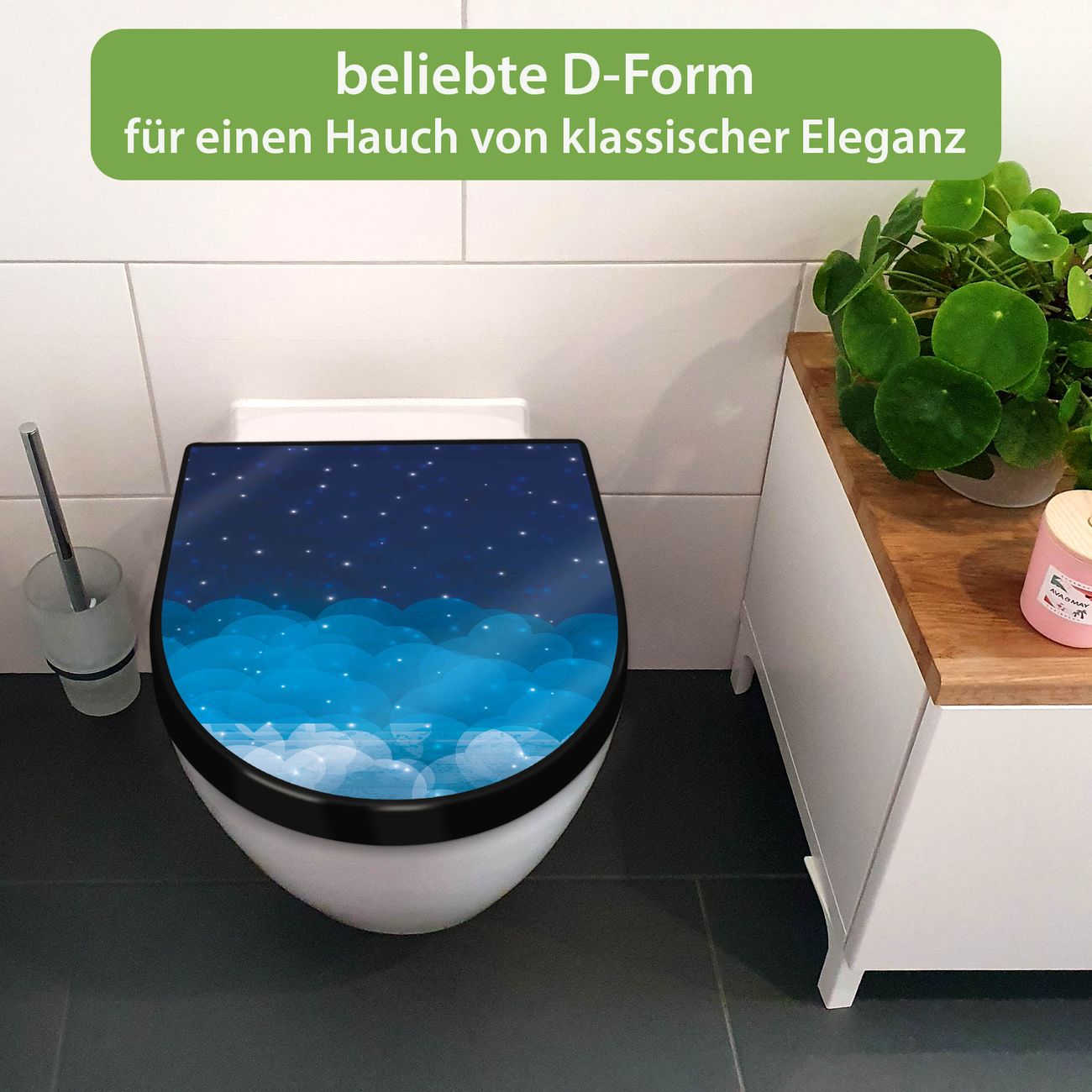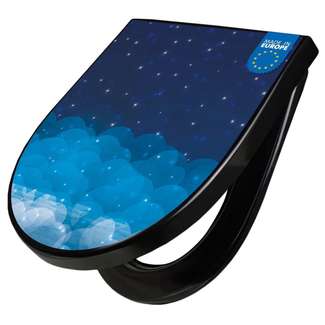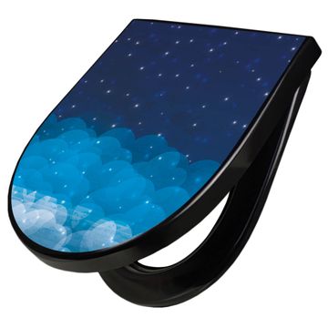 WC Sitz D-Form Schwarz mit Absenkautomatik Motiv Sternenhimmel 2