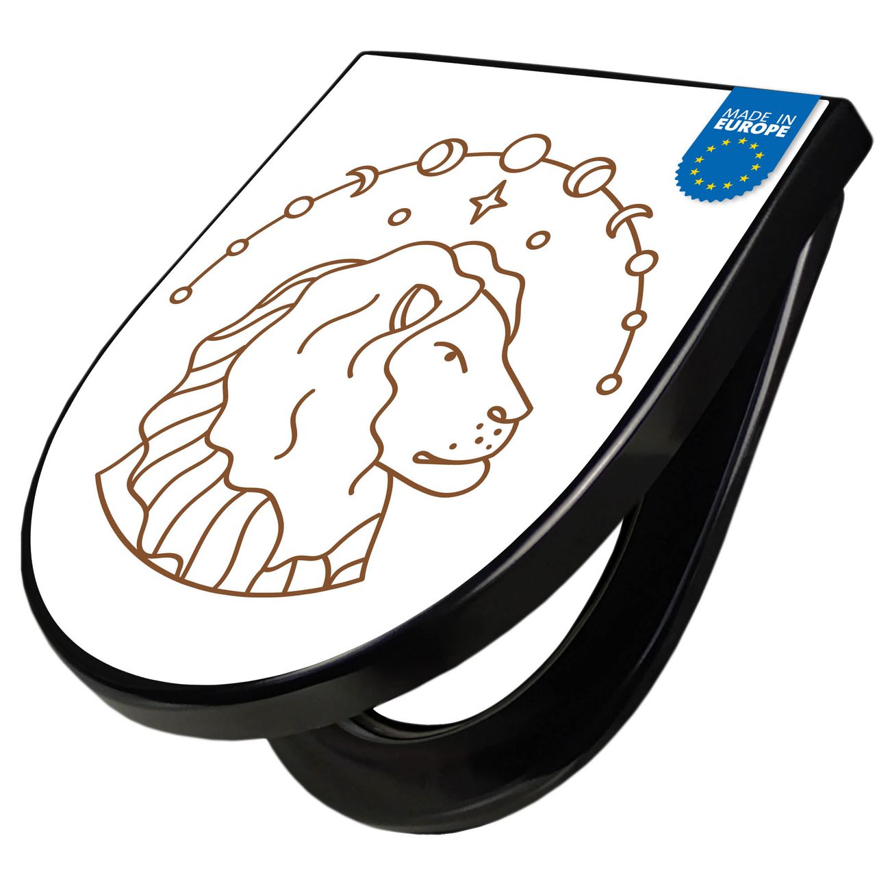 WC Sitz D-Form Schwarz mit Absenkautomatik Motiv Sternzeichen Löwe