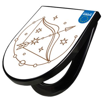 WC Sitz D-Form Schwarz mit Absenkautomatik Motiv Sternzeichen Schütze