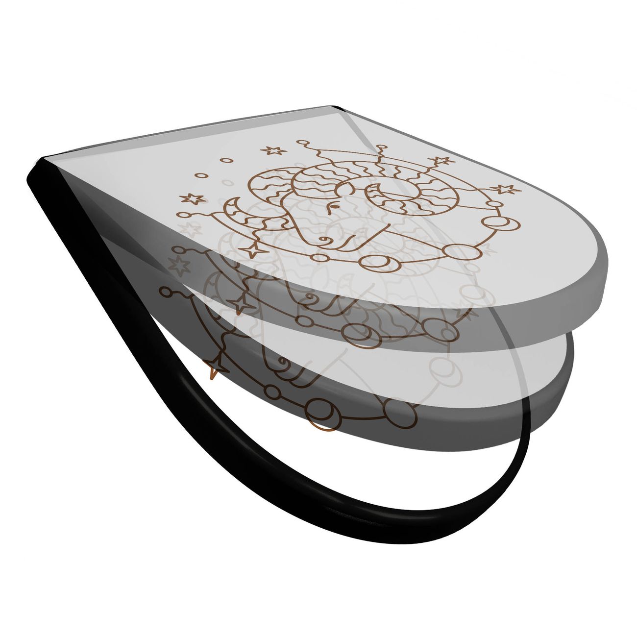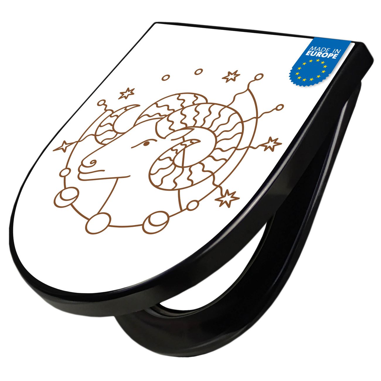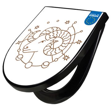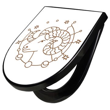 WC Sitz D-Form Schwarz mit Absenkautomatik Motiv Sternzeichen Widder