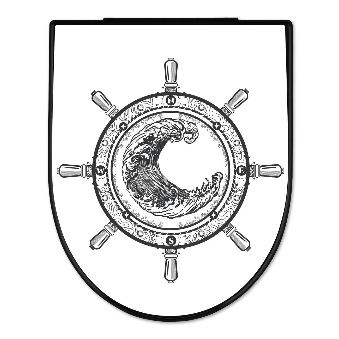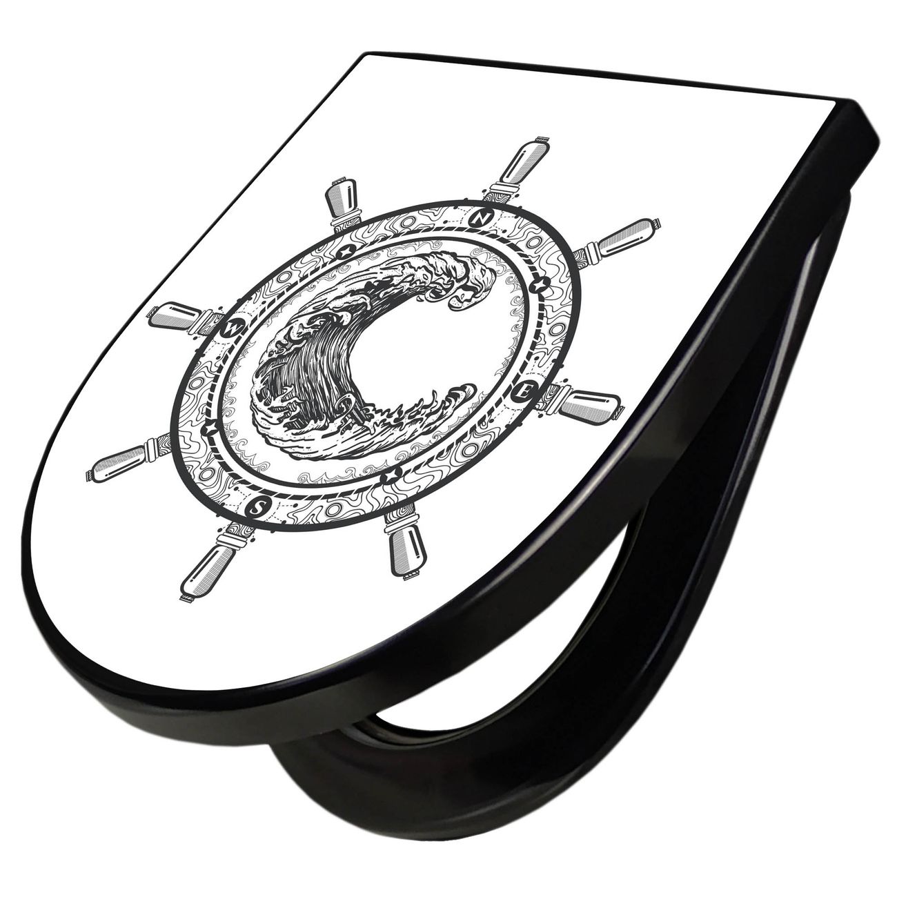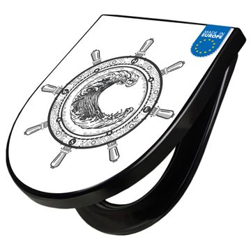 WC Sitz D-Form Schwarz mit Absenkautomatik Motiv Steuerrad 2