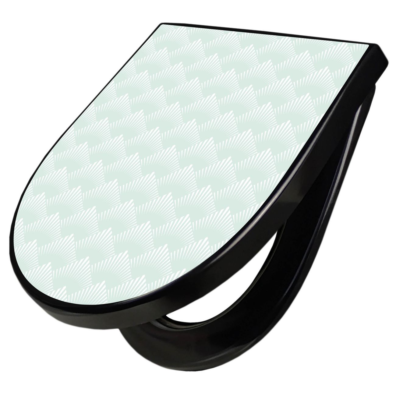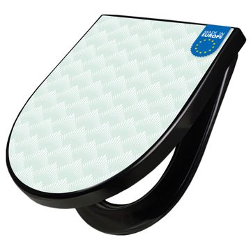 WC Sitz D-Form Schwarz mit Absenkautomatik Motiv Strahlen Mint