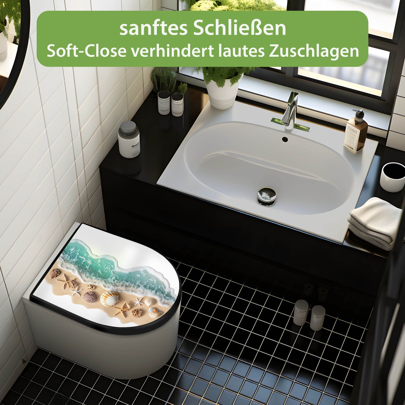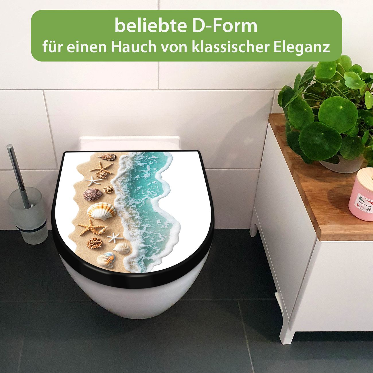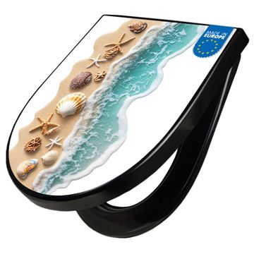WC Sitz D-Form Schwarz mit Absenkautomatik Motiv Strandparadies