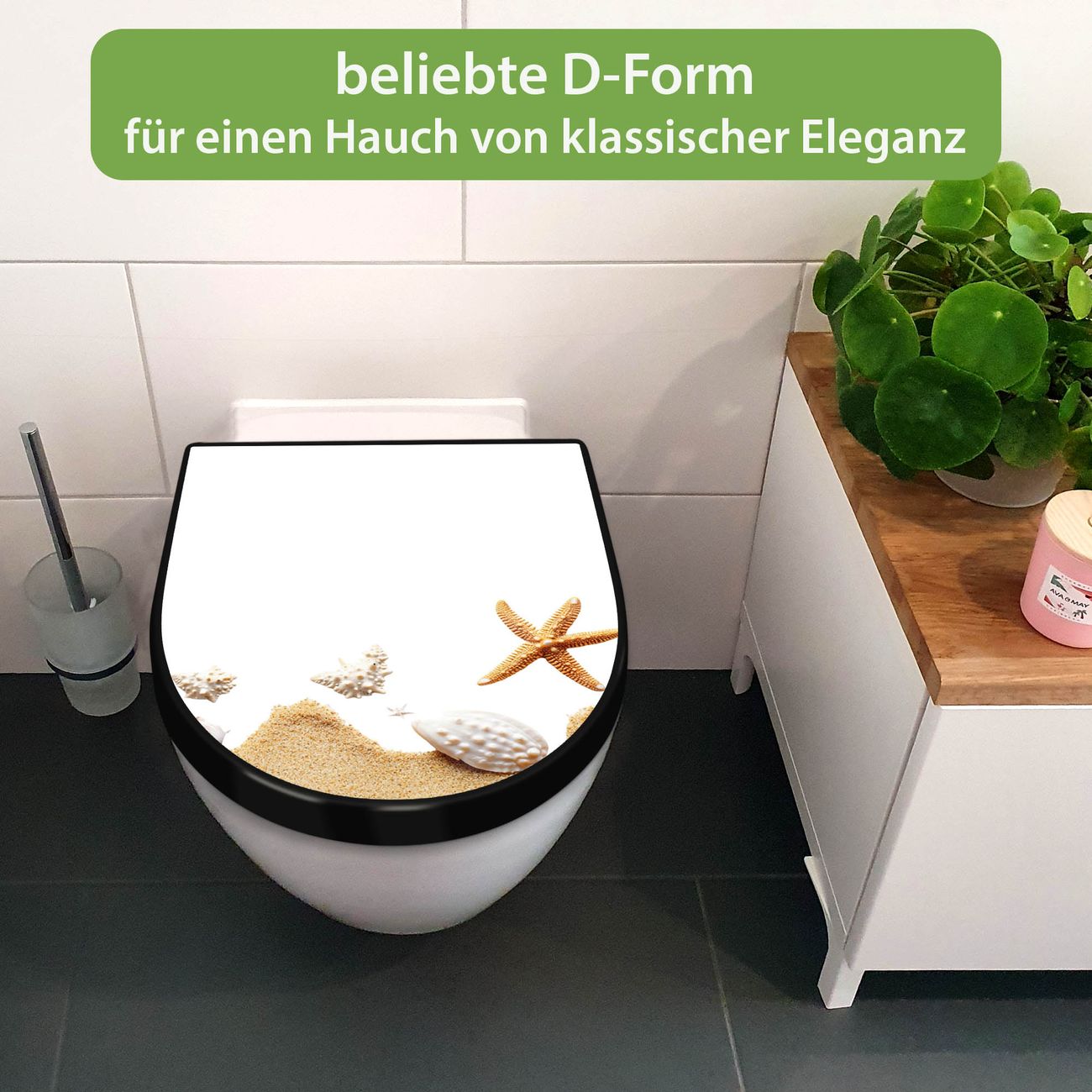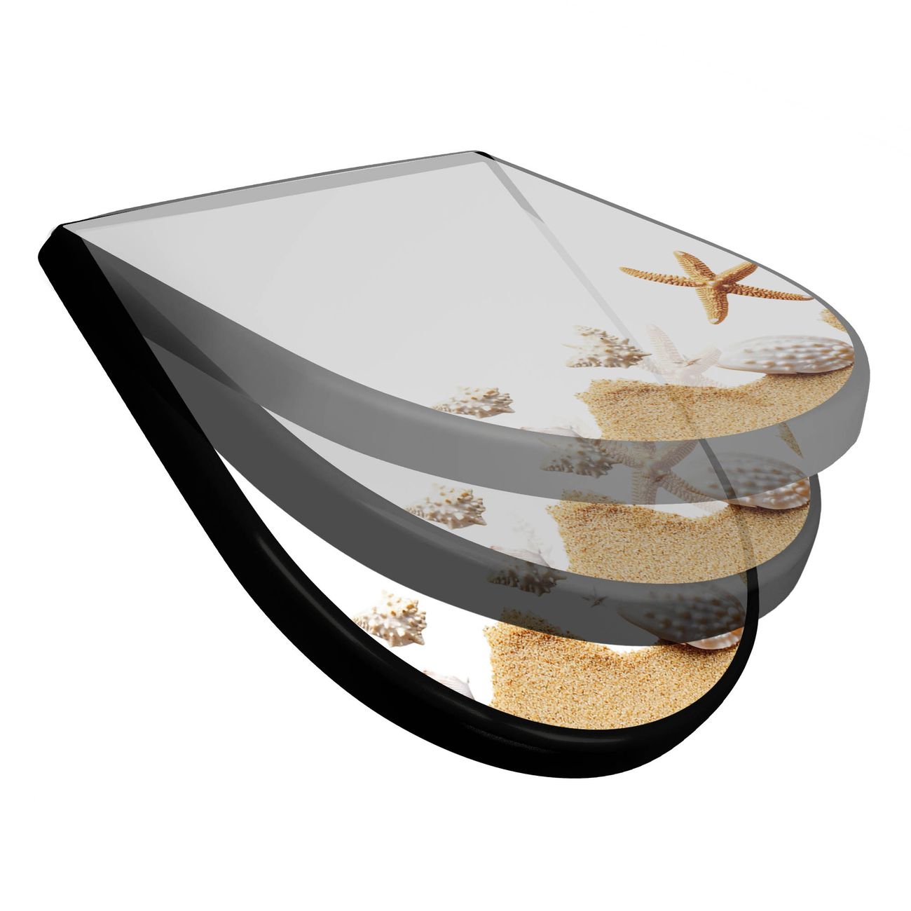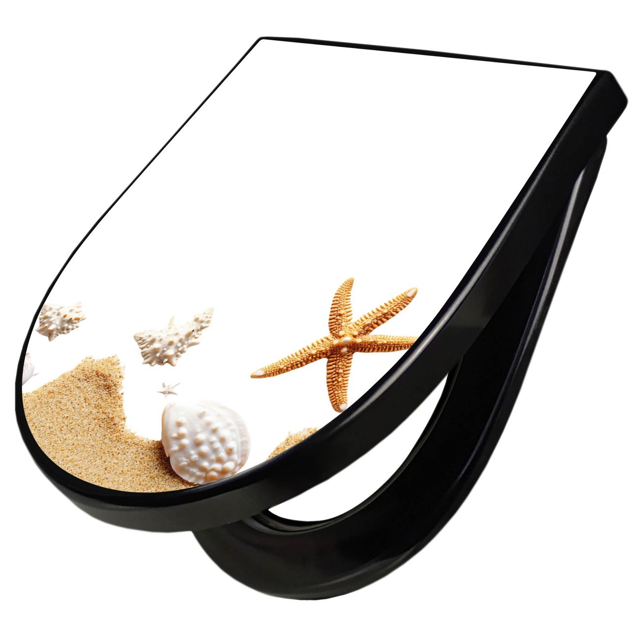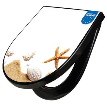 WC Sitz D-Form Schwarz mit Absenkautomatik Motiv Strandzauber