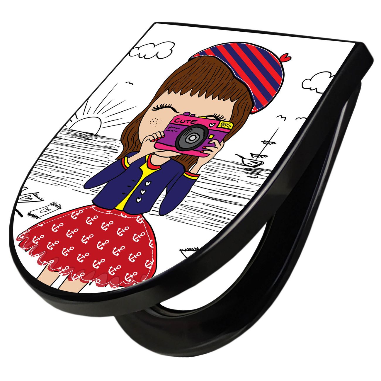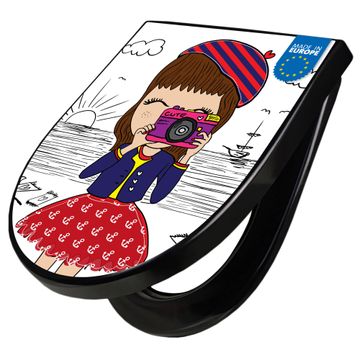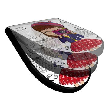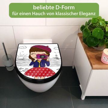 WC Sitz D-Form Schwarz mit Absenkautomatik Motiv Süße Kamera