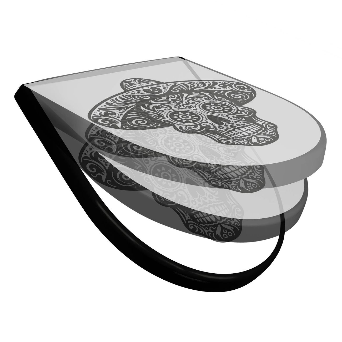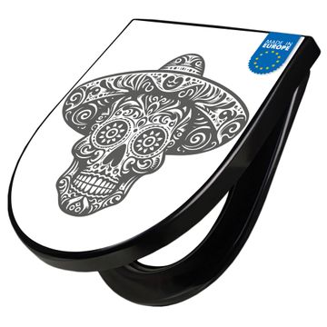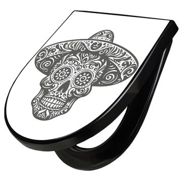 WC Sitz D-Form Schwarz mit Absenkautomatik Motiv Sugar Skull Design