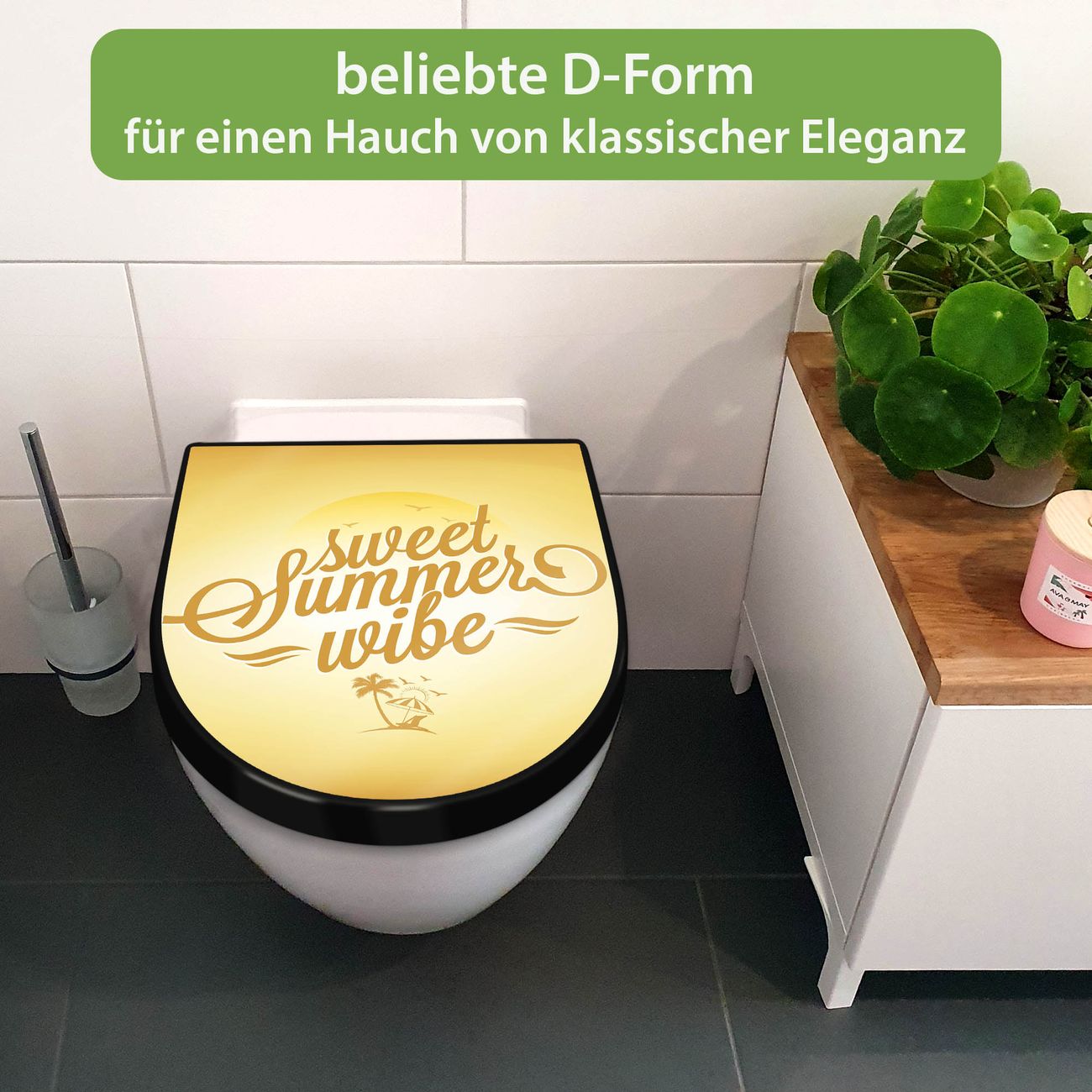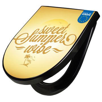 WC Sitz D-Form Schwarz mit Absenkautomatik Motiv Summer Wibe