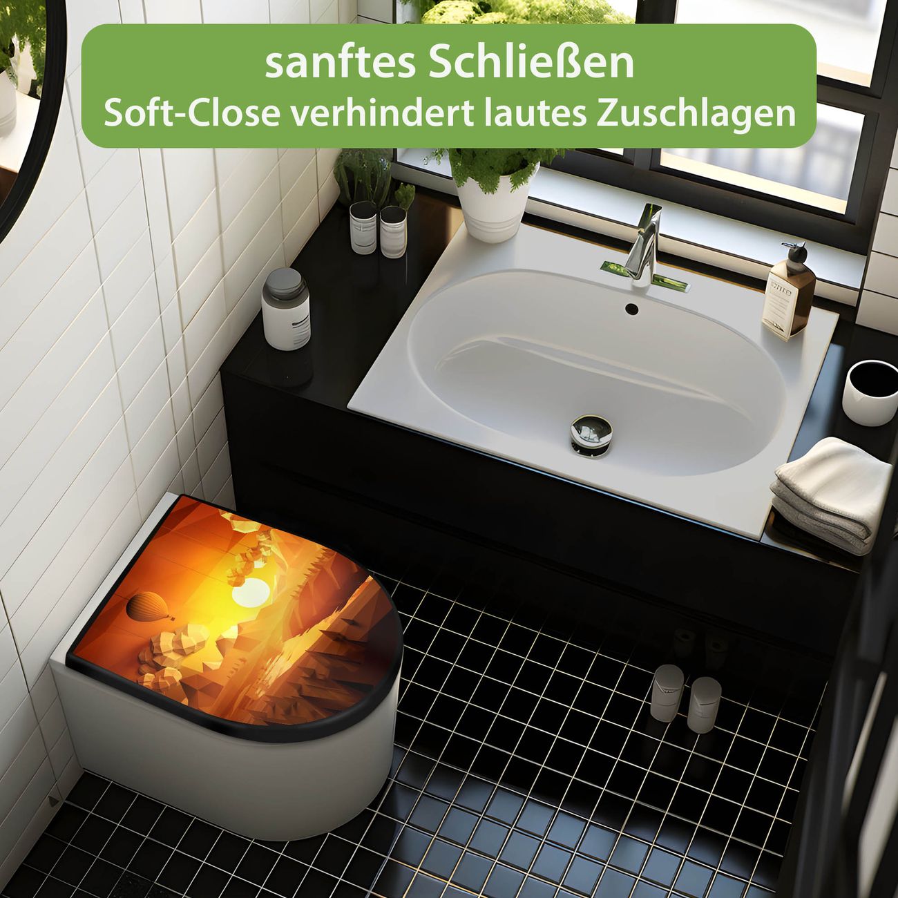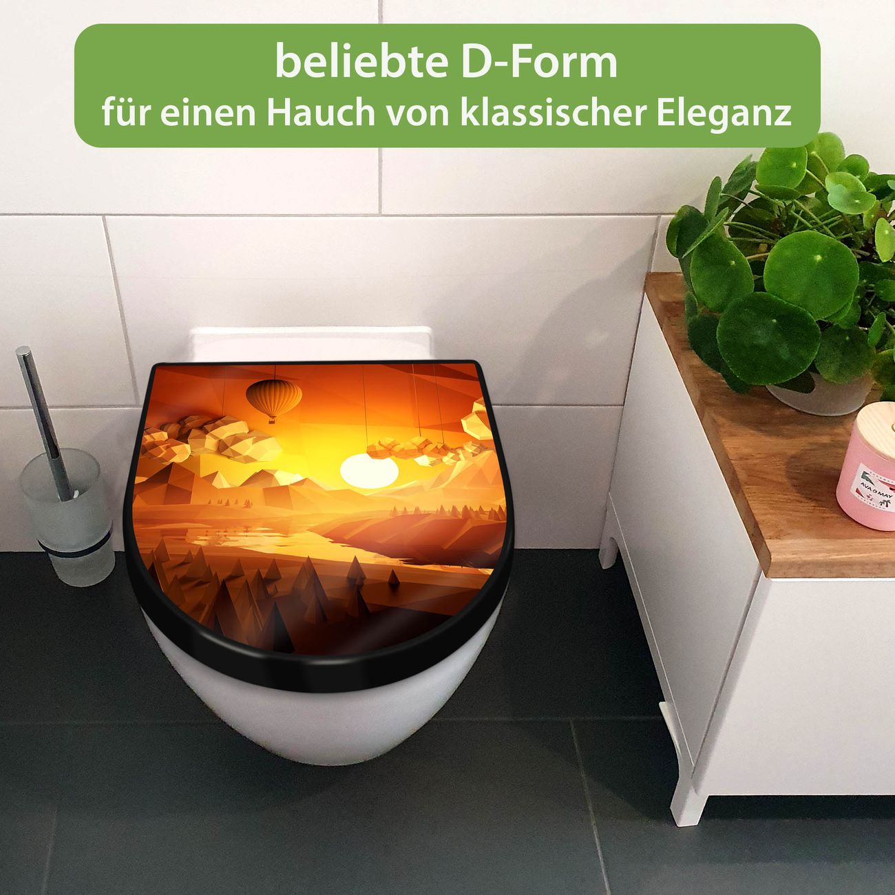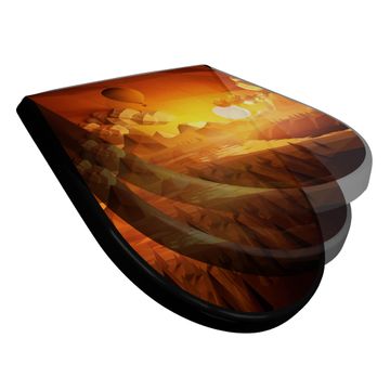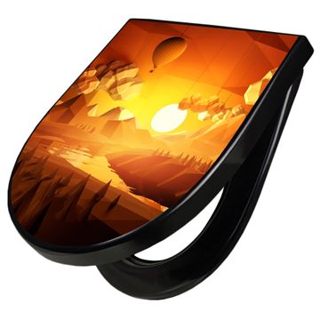 WC Sitz D-Form Schwarz mit Absenkautomatik Motiv Sunset