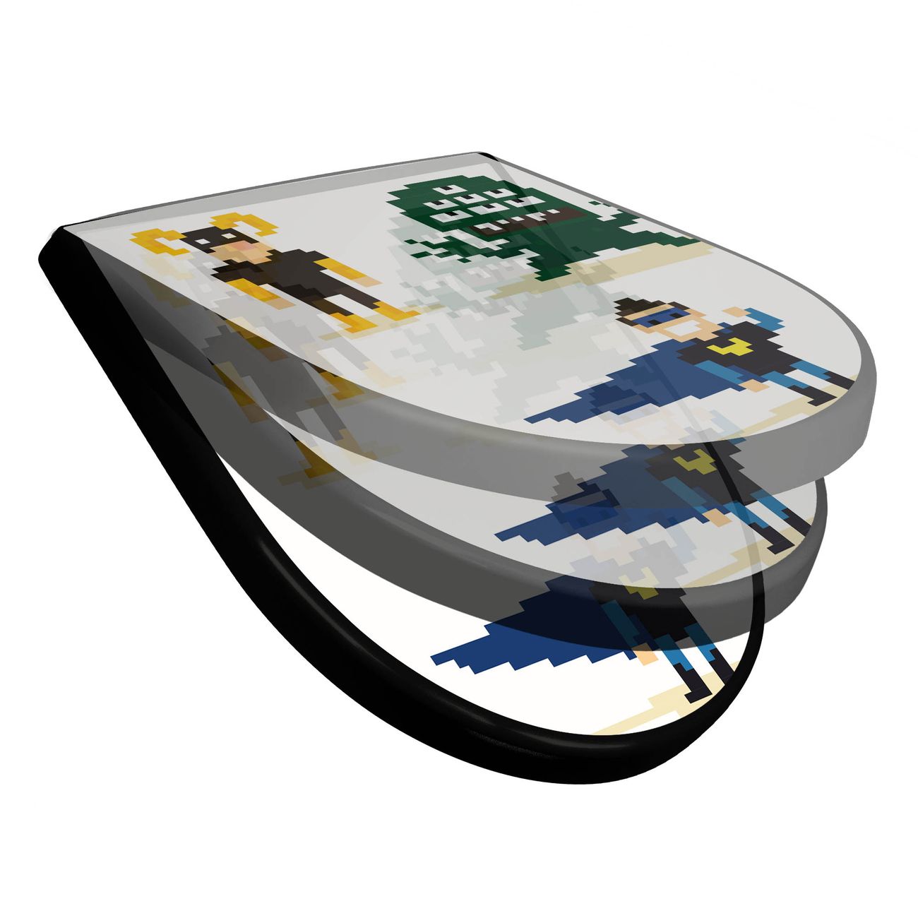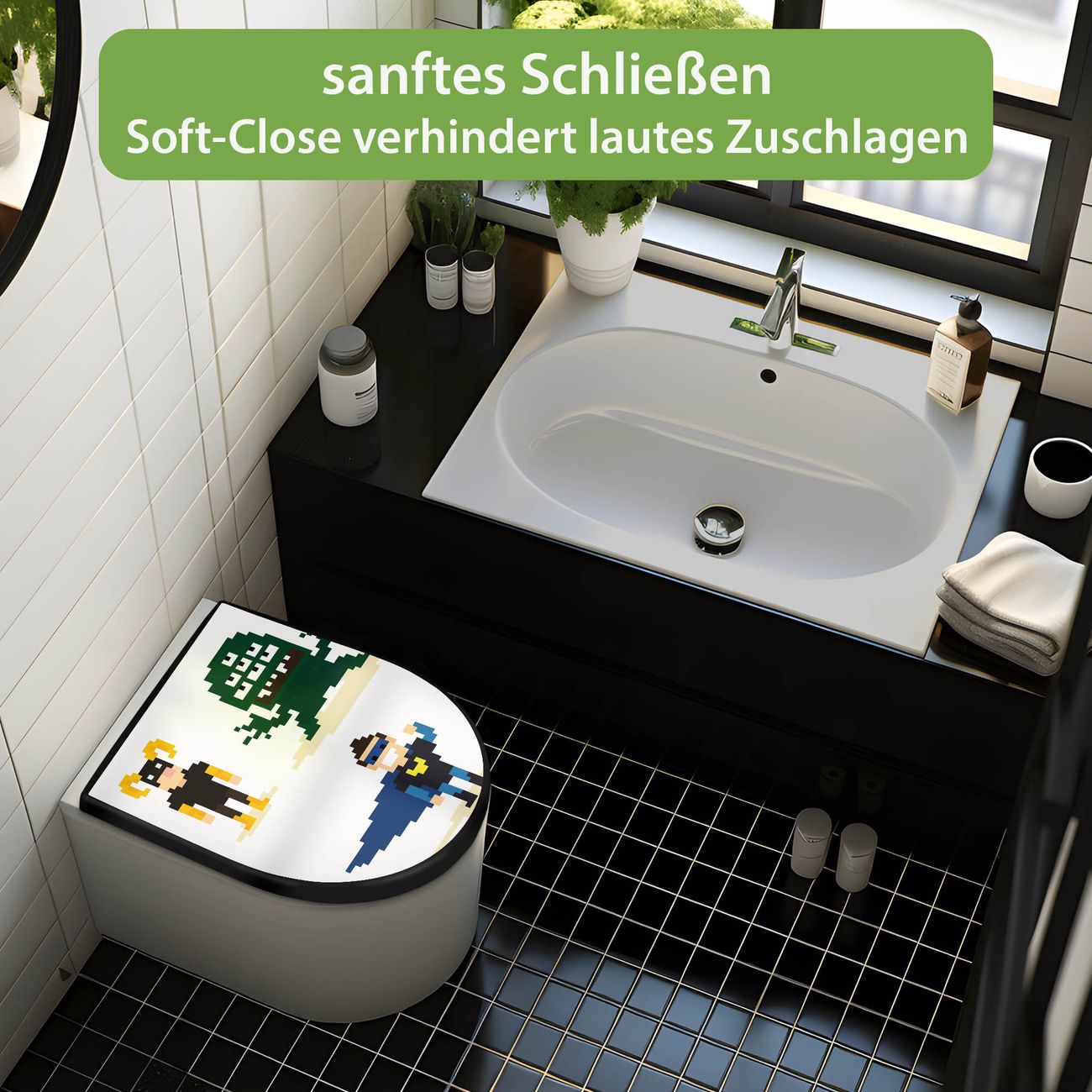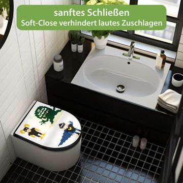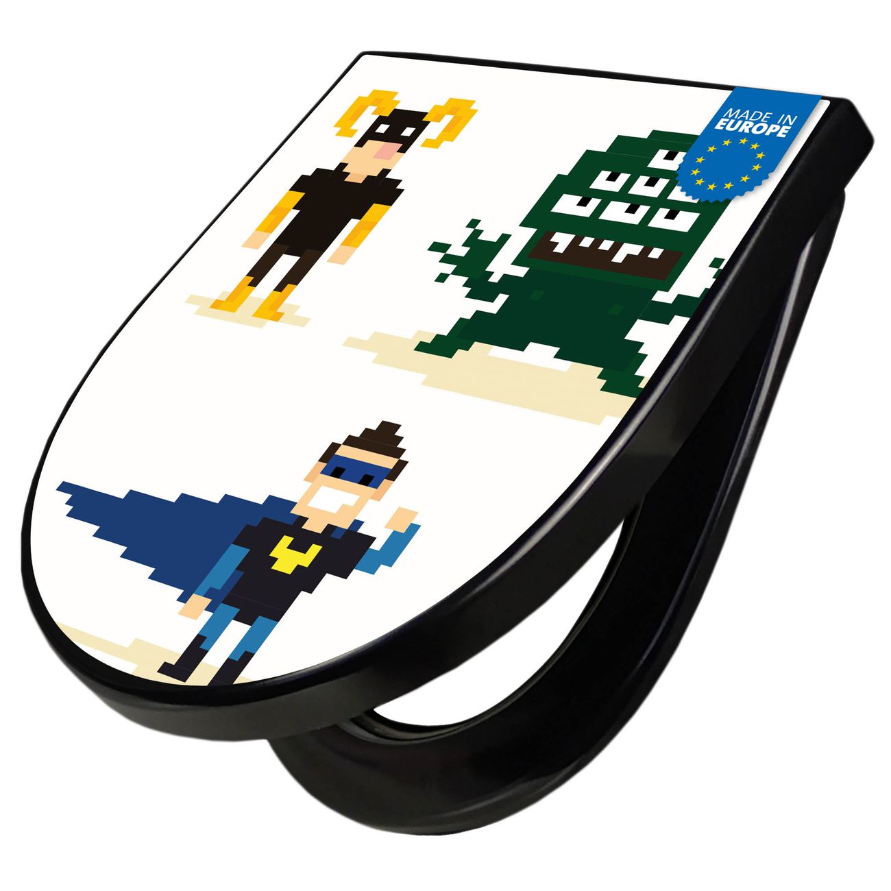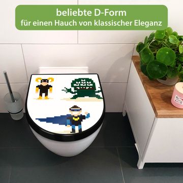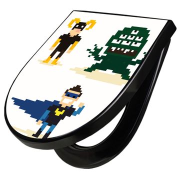 WC Sitz D-Form Schwarz mit Absenkautomatik Motiv Superhelden