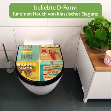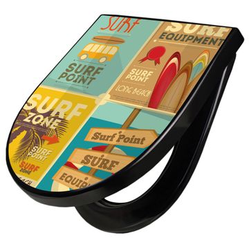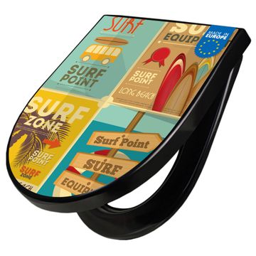 WC Sitz D-Form Schwarz mit Absenkautomatik Motiv Surf Point