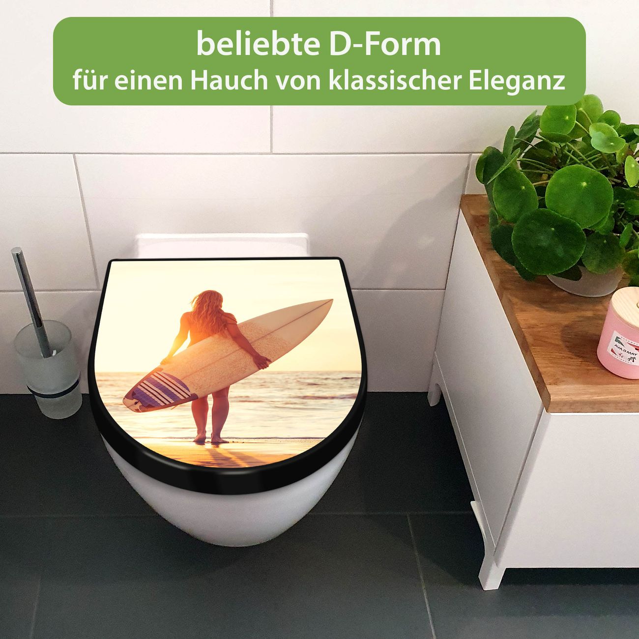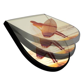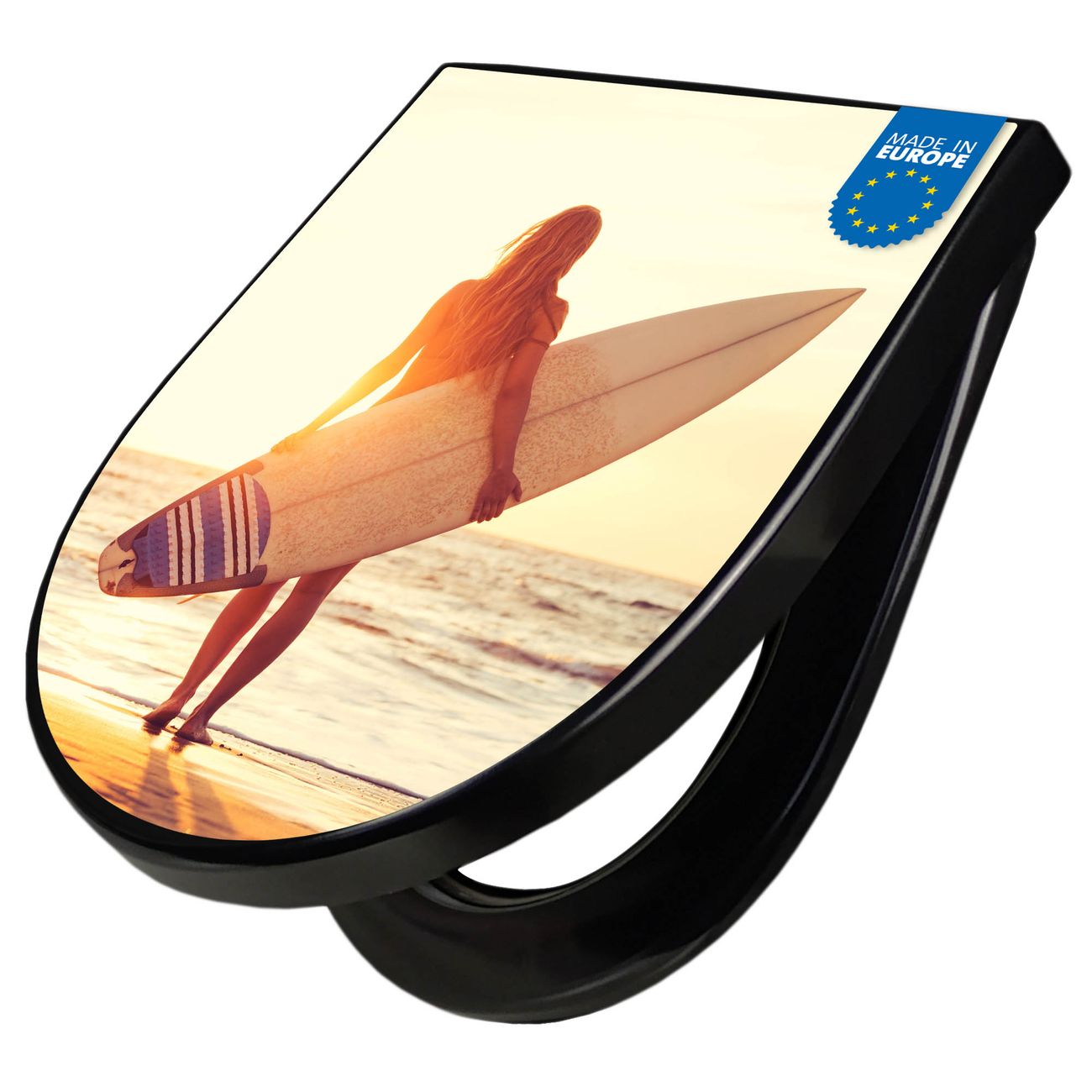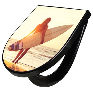 WC Sitz D-Form Schwarz mit Absenkautomatik Motiv Surfer Girl