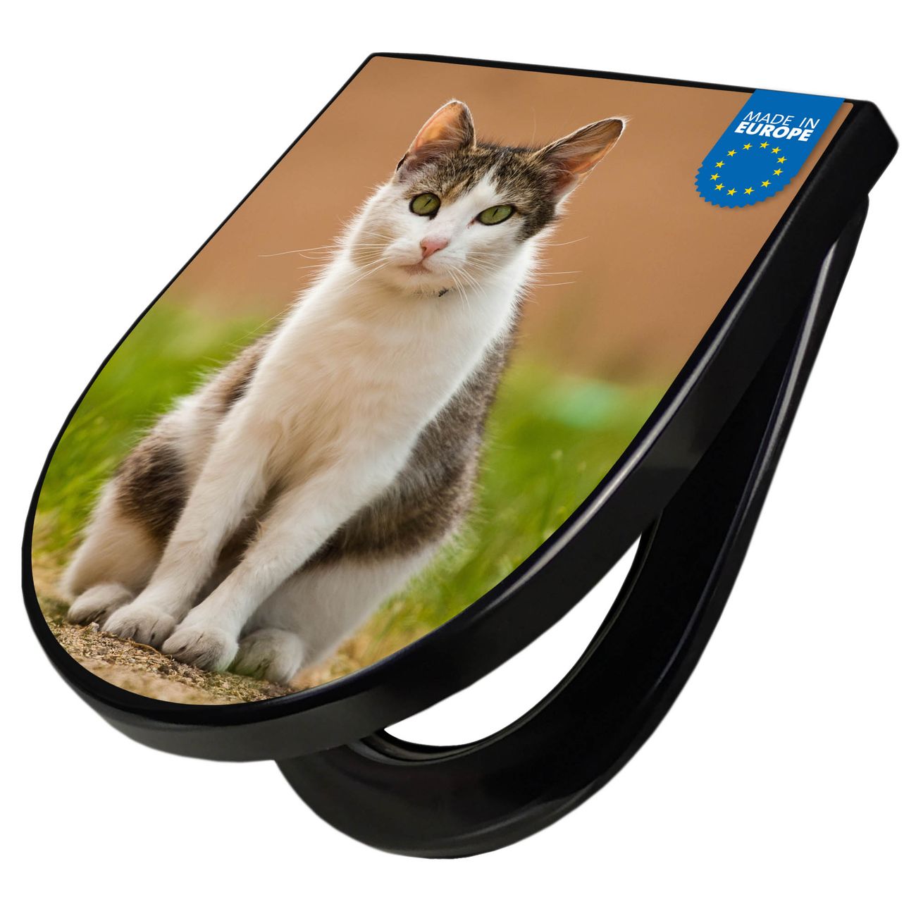 Der WC-Deckel wird in Europa gefertigt und im Herzen von Sachsen für Sie mit dem gewünschten Motiv veredelt. Die hierfür verwendete Folie ist lösungsmittelfrei und schutzlaminiert.