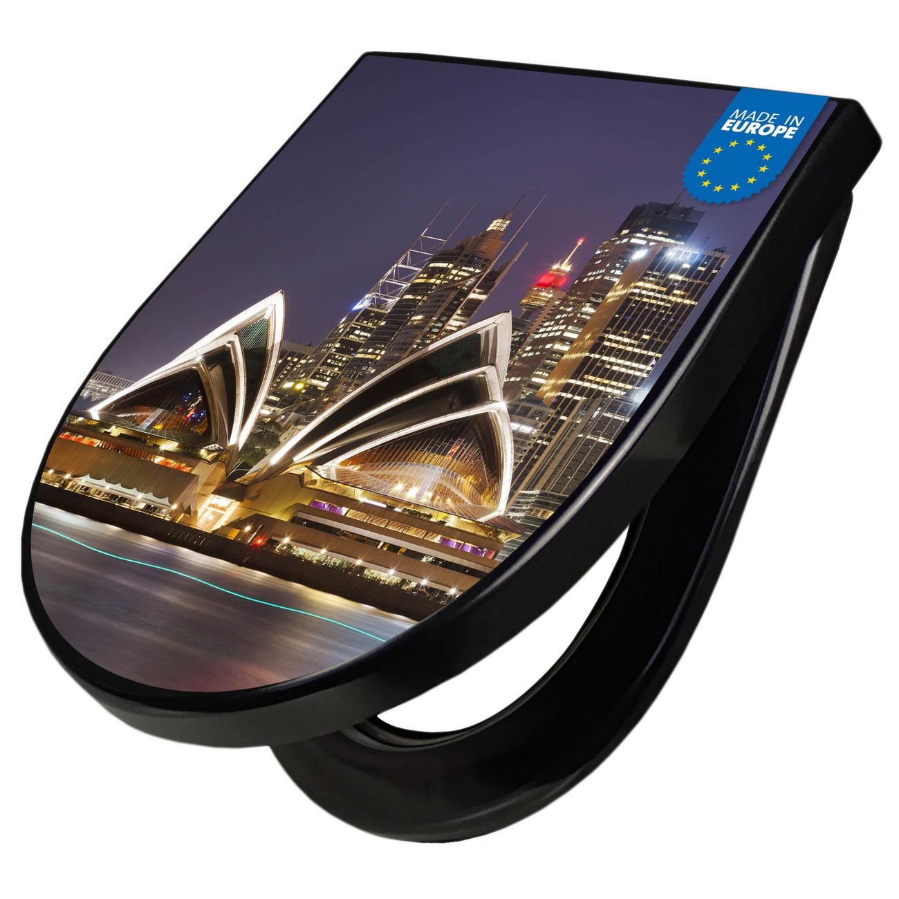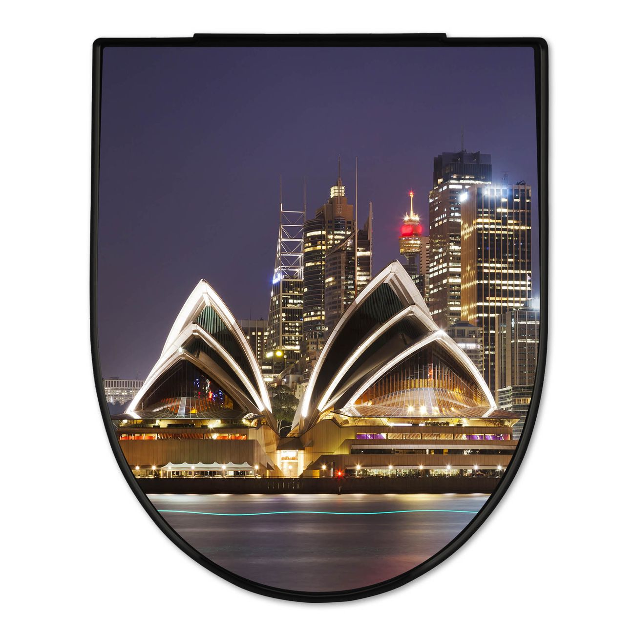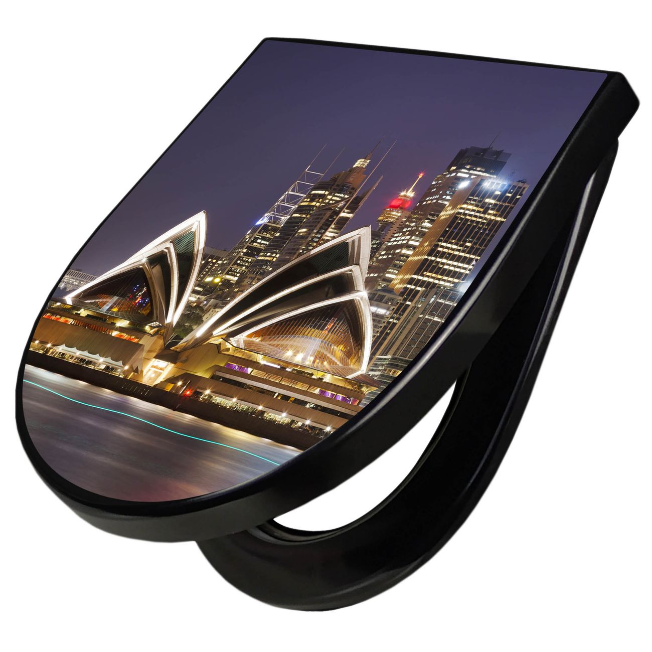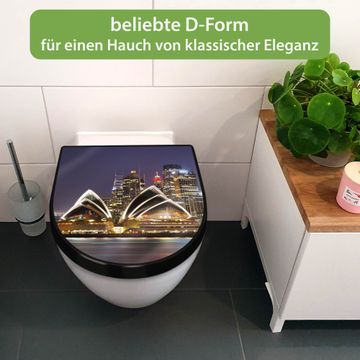 WC Sitz D-Form Schwarz mit Absenkautomatik Motiv Sydney