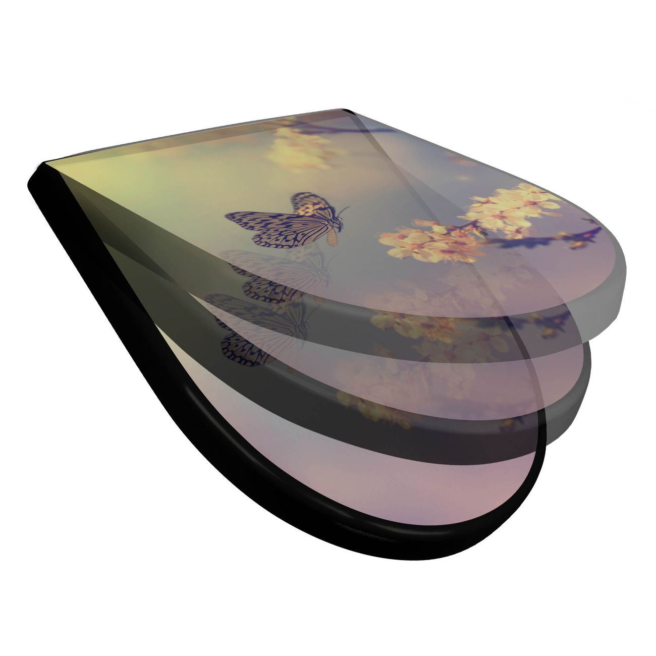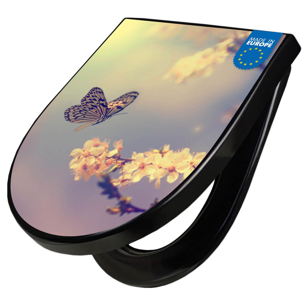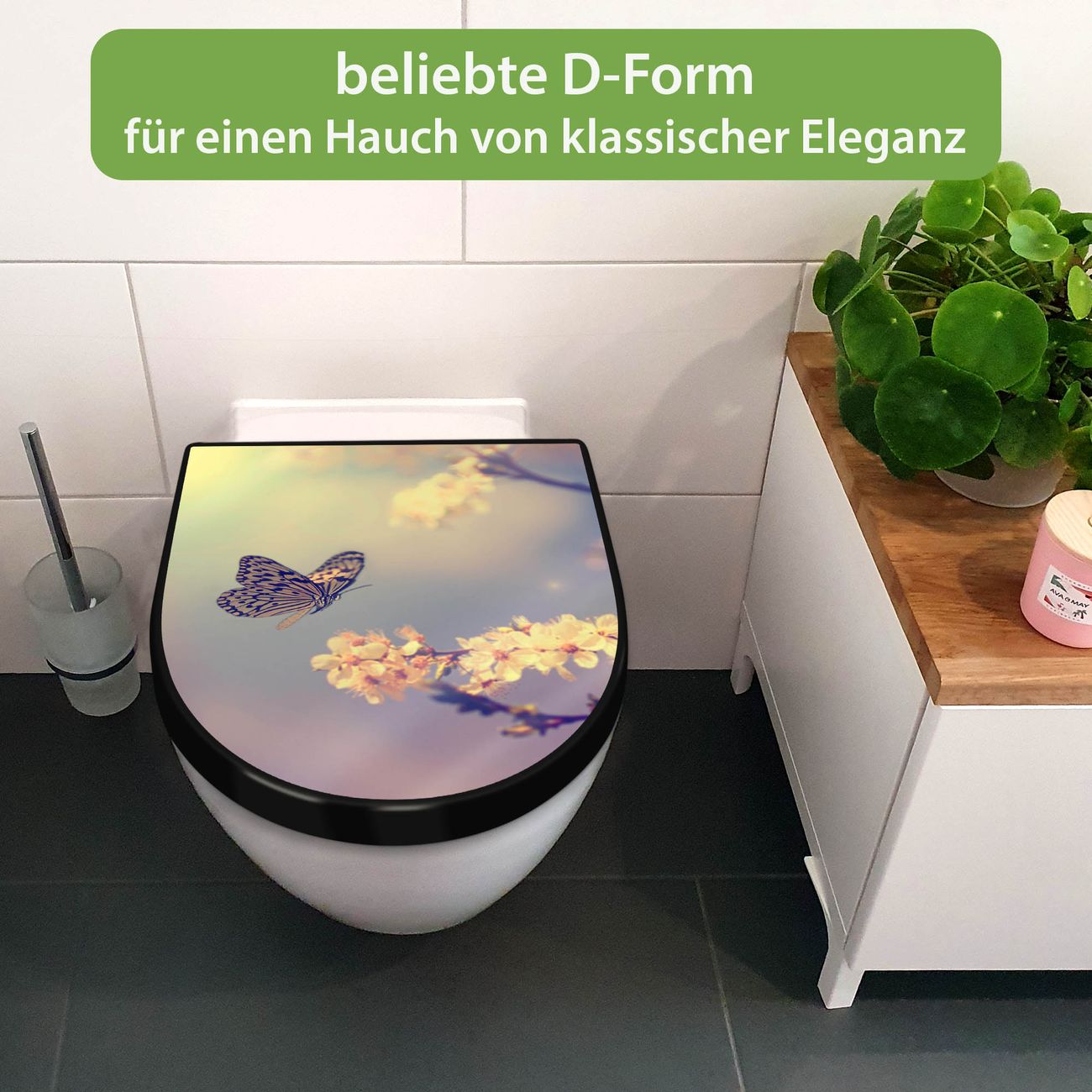 WC Sitz D-Form Schwarz mit Absenkautomatik Motiv Tag Im Mai