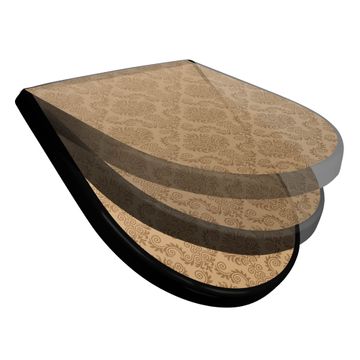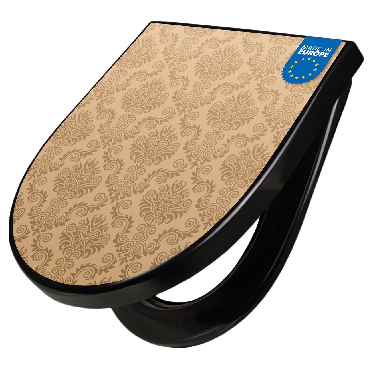 WC Sitz D-Form Schwarz mit Absenkautomatik Motiv Tapete Beige
