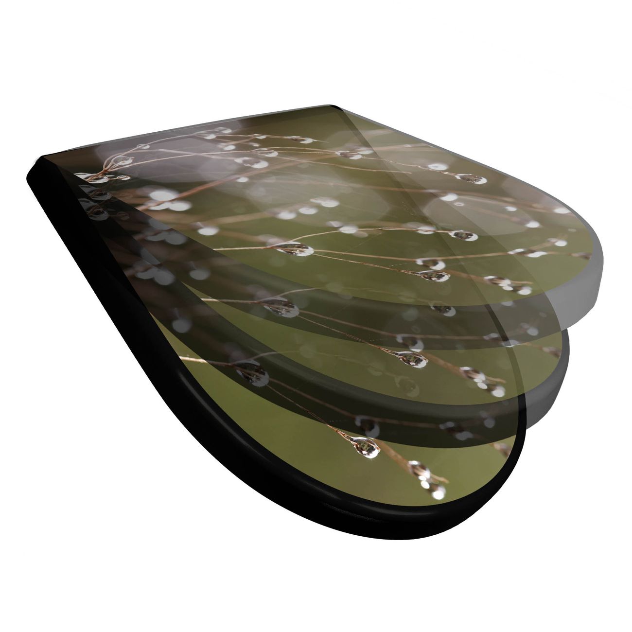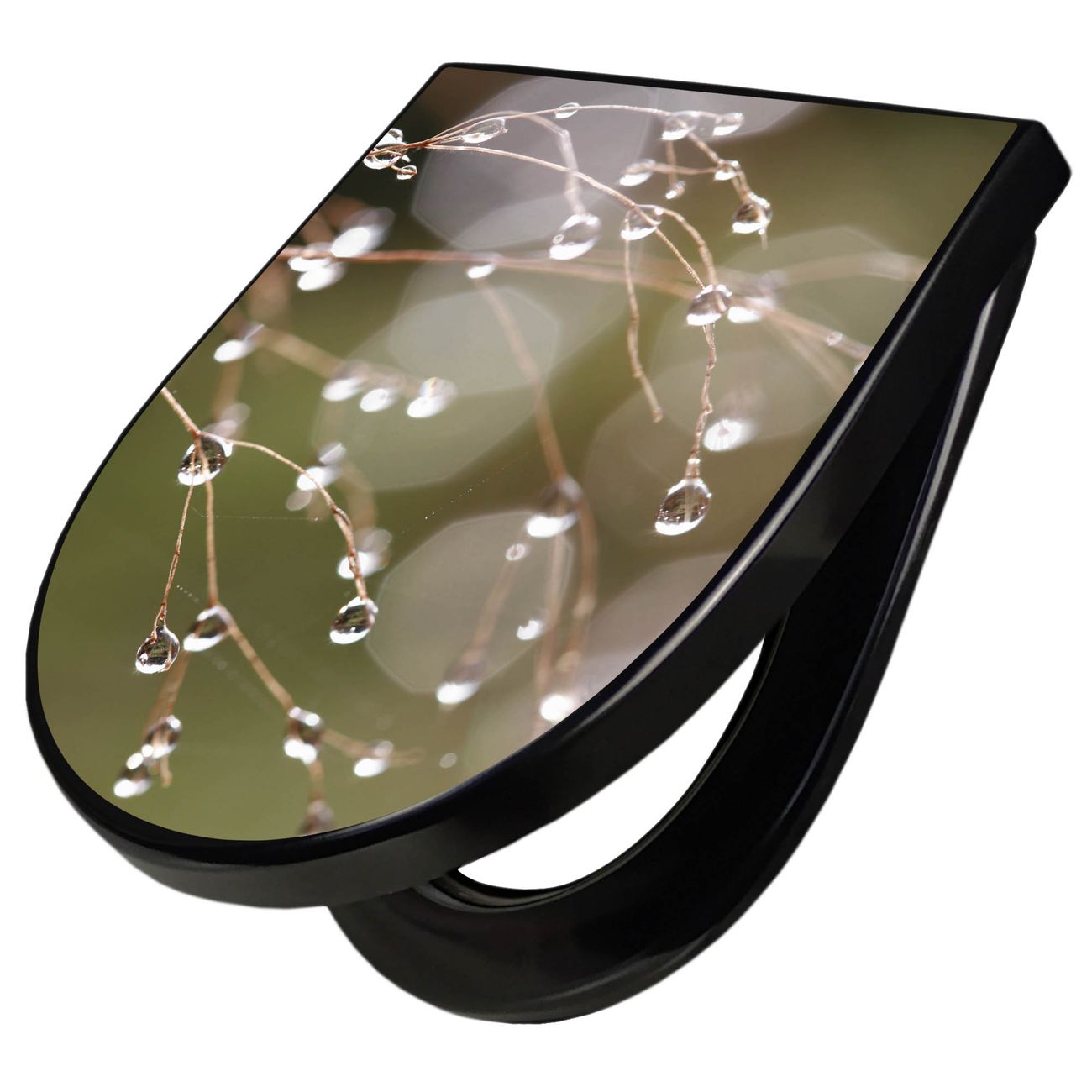 WC Sitz D-Form Schwarz mit Absenkautomatik Motiv Tau Auf Zweigen