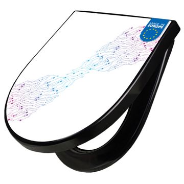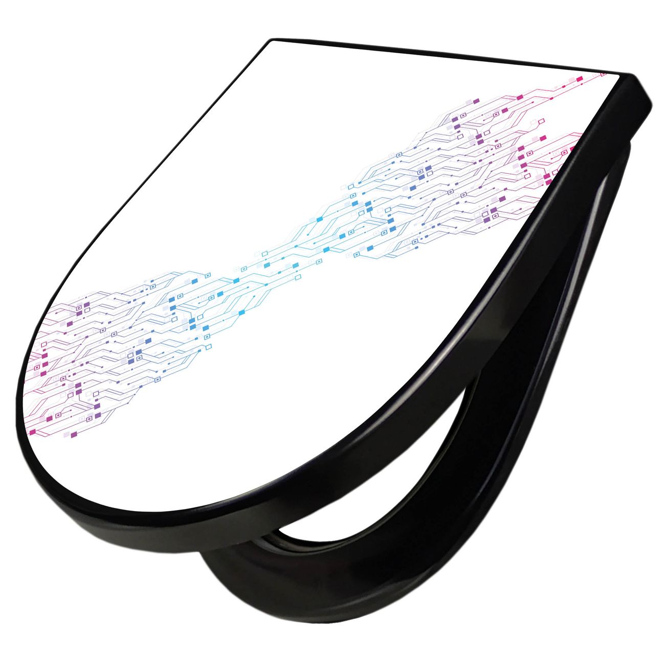 WC Sitz D-Form Schwarz mit Absenkautomatik Motiv Technologiemuster