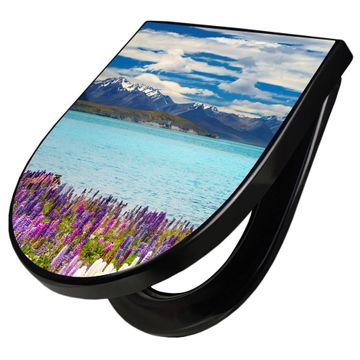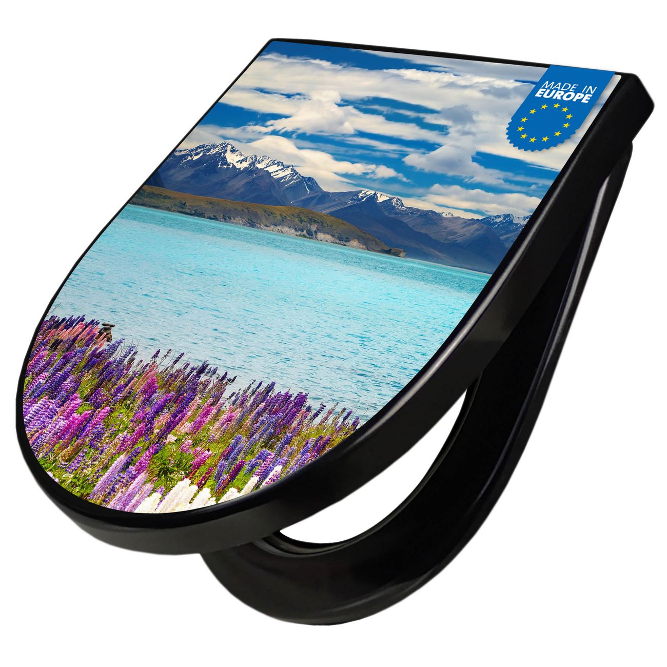 WC Sitz D-Form Schwarz mit Absenkautomatik Motiv Tekapo See