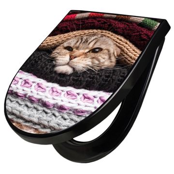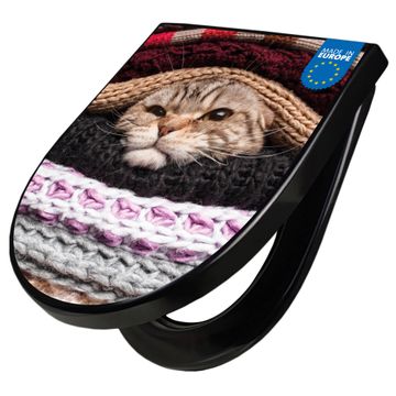 WC Sitz D-Form Schwarz mit Absenkautomatik Motiv Theo