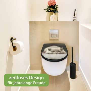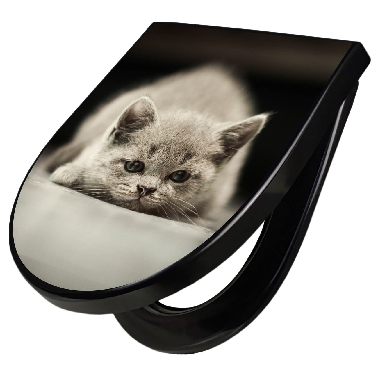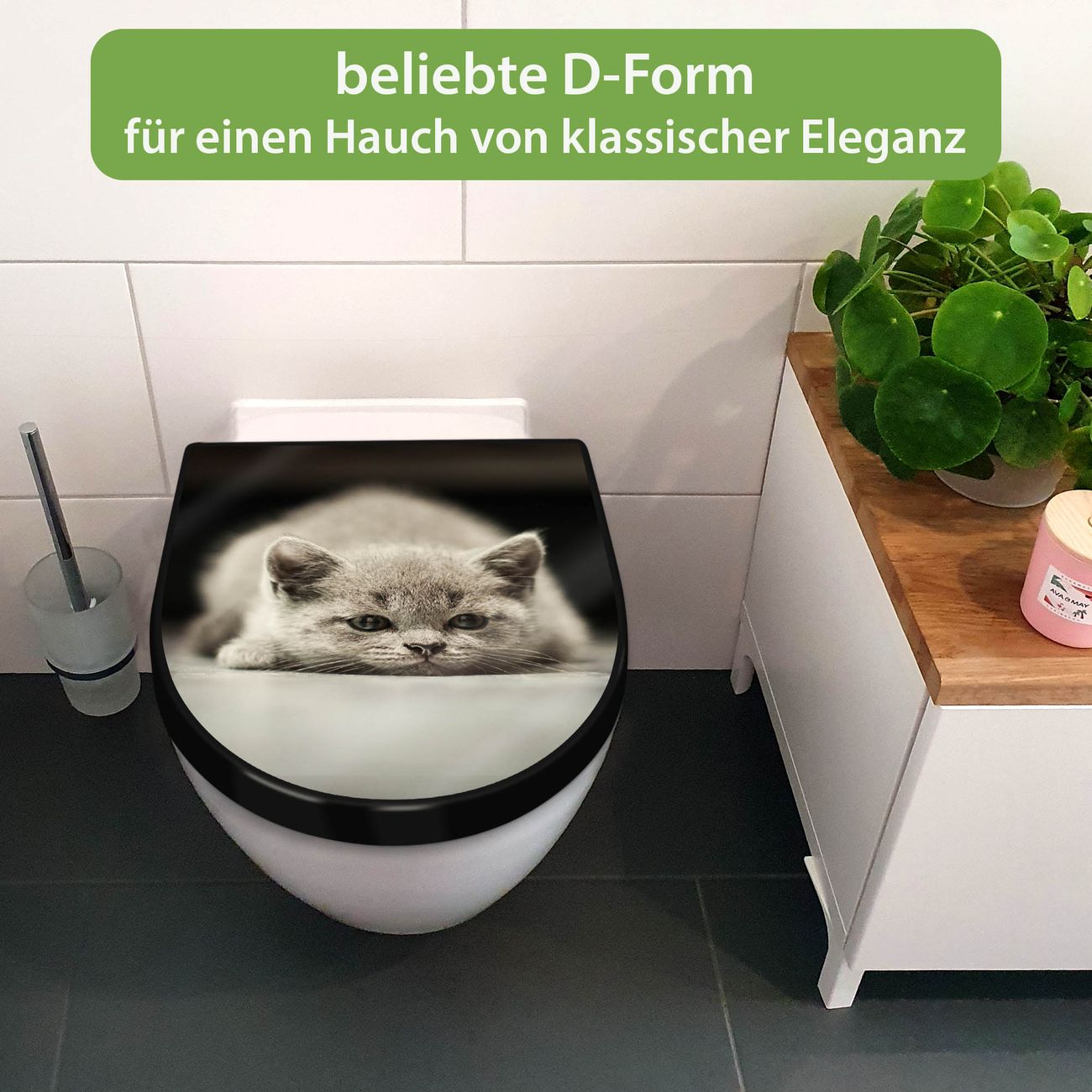 WC Sitz D-Form Schwarz mit Absenkautomatik Motiv Theodor