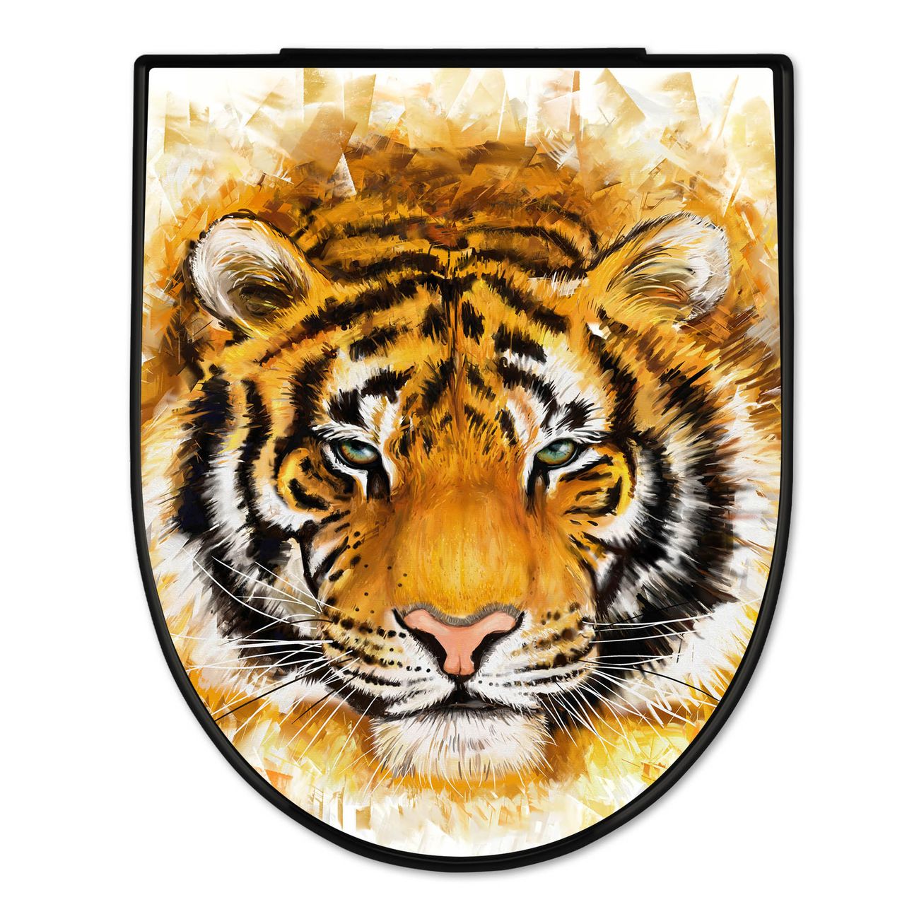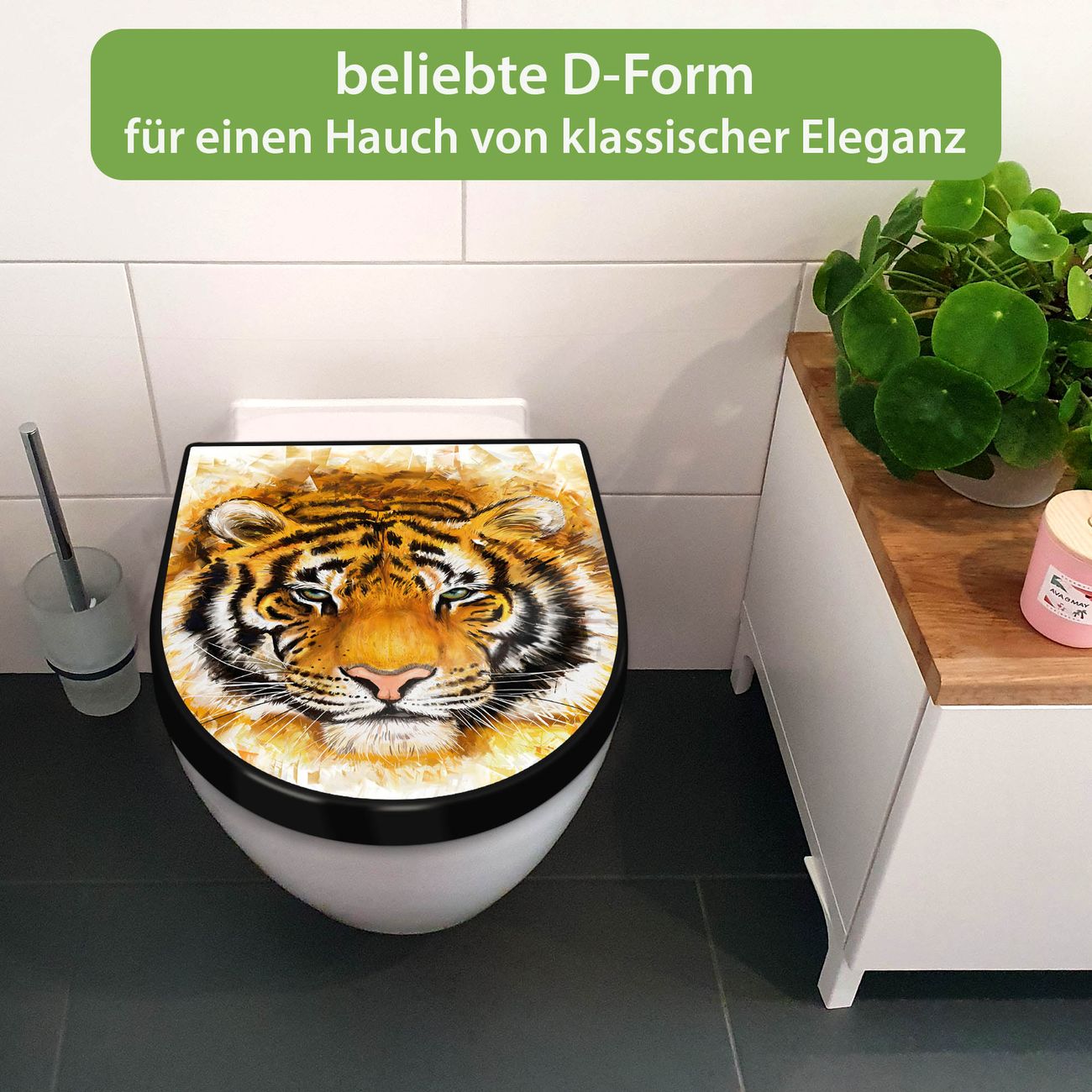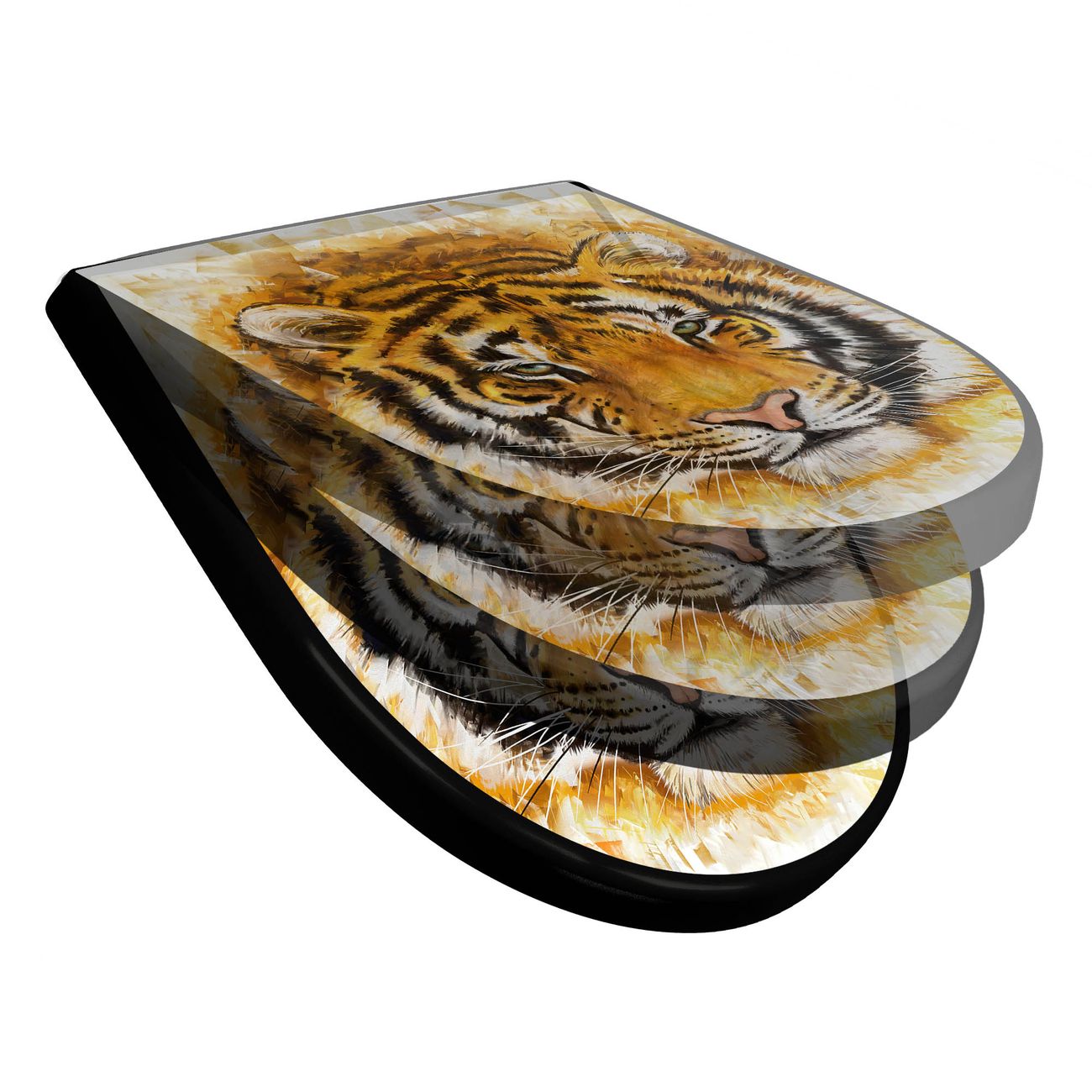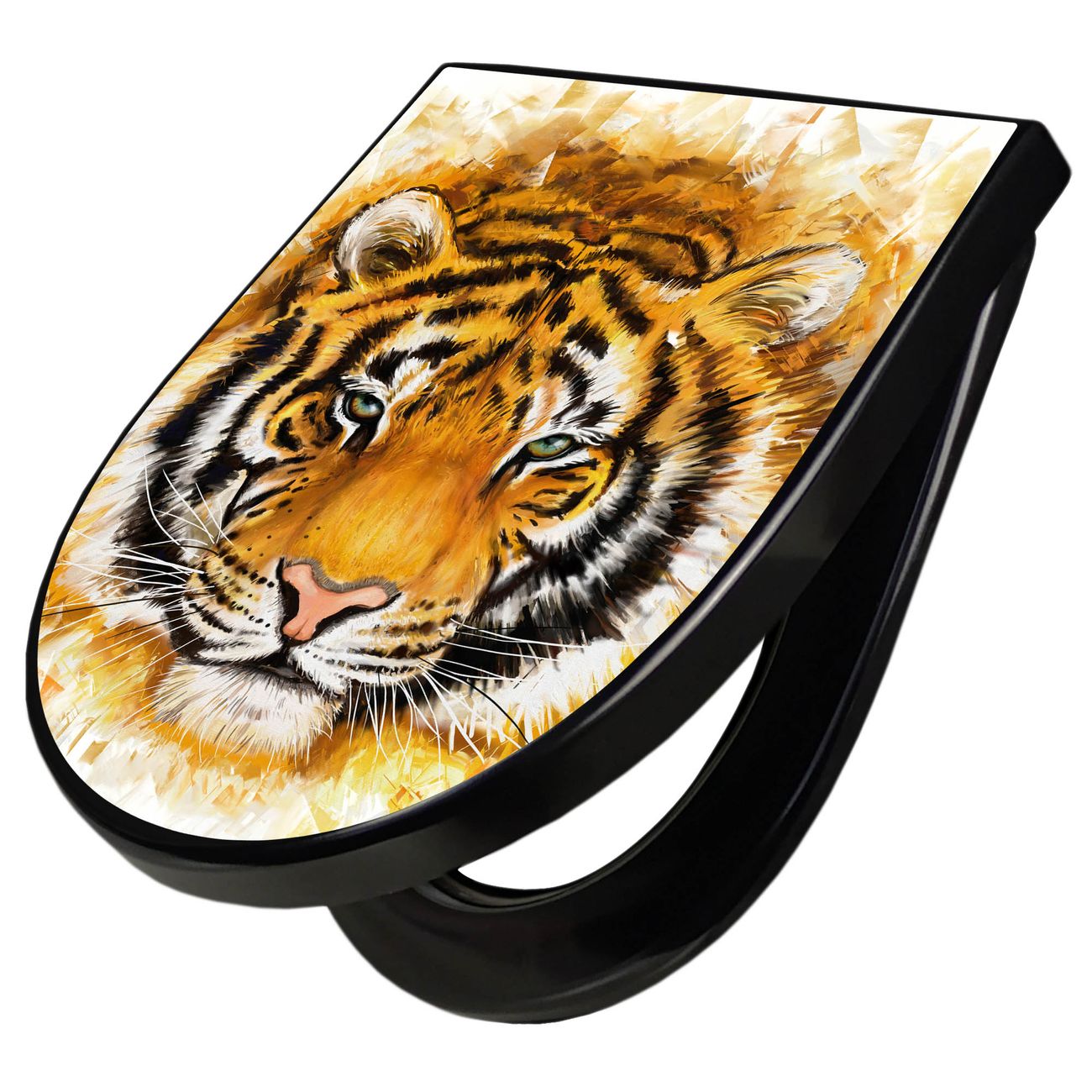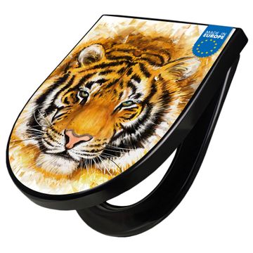 WC Sitz D-Form Schwarz mit Absenkautomatik Motiv Tigerkopf