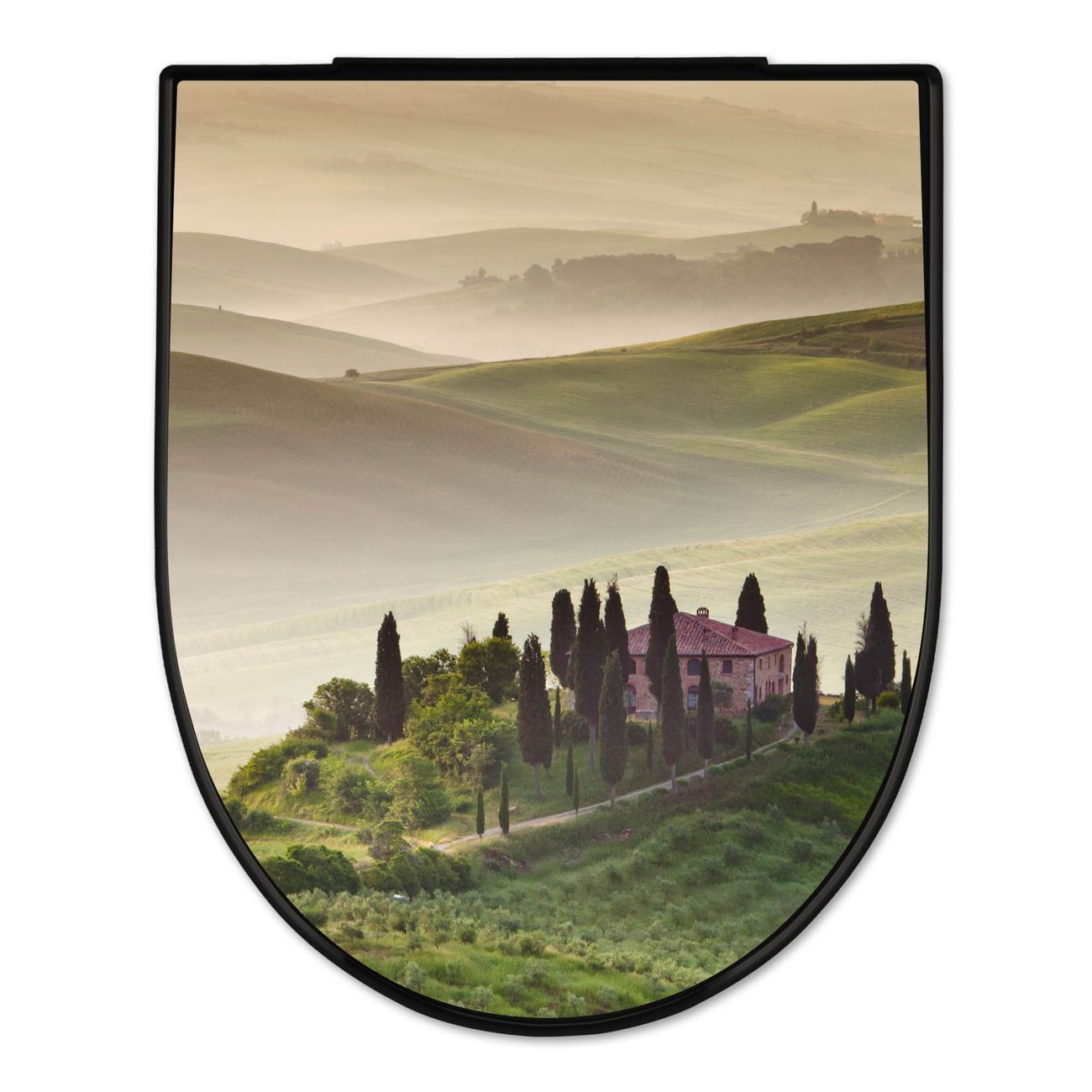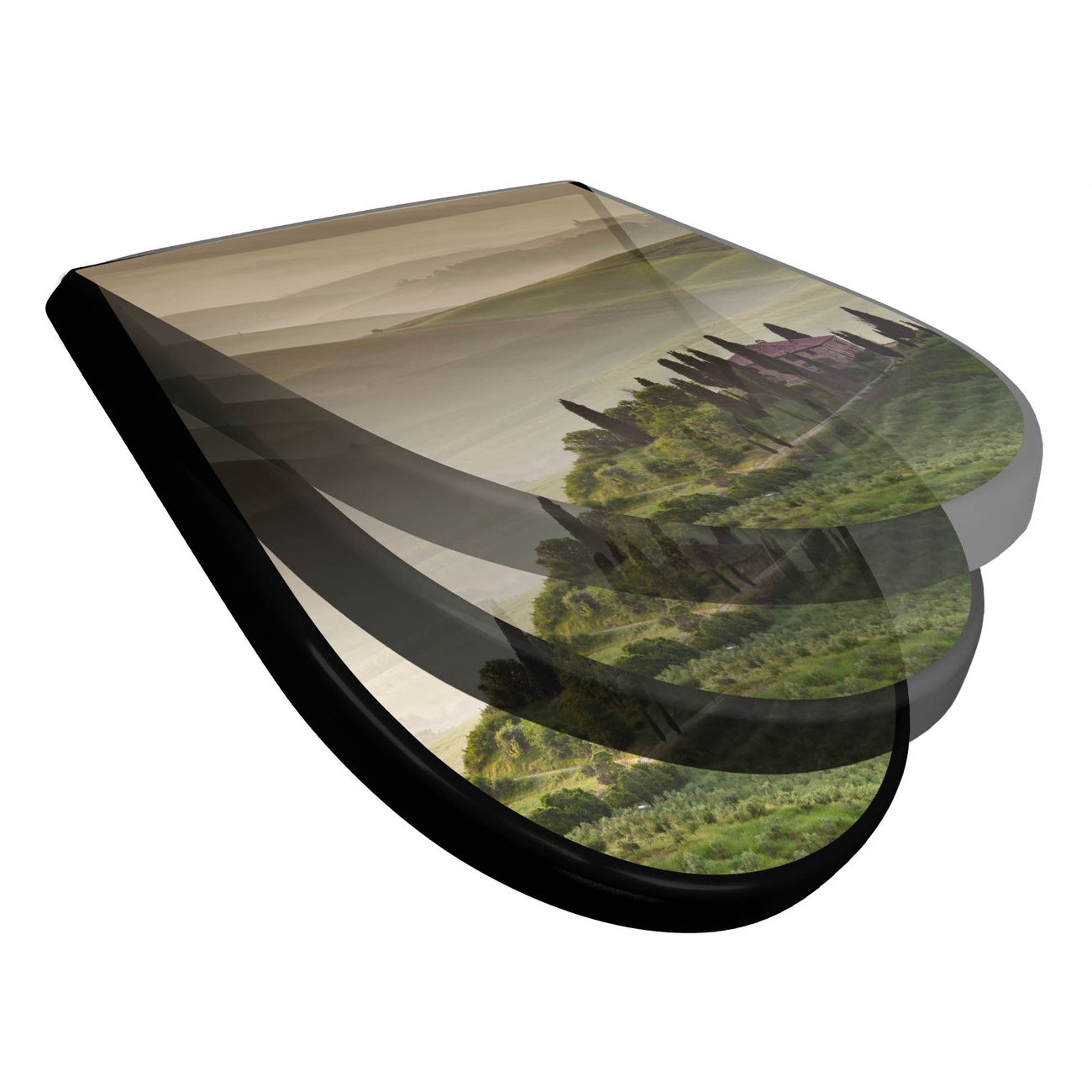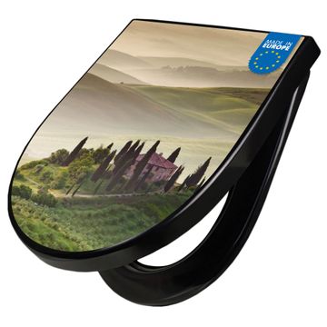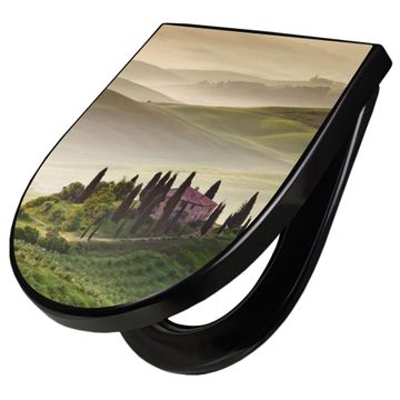WC Sitz D-Form Schwarz mit Absenkautomatik Motiv Toscana