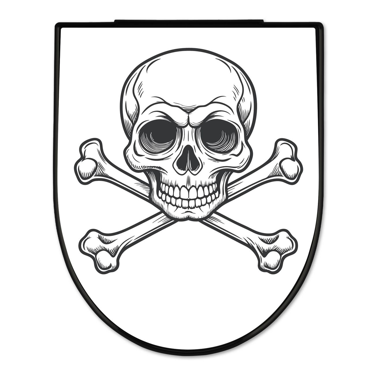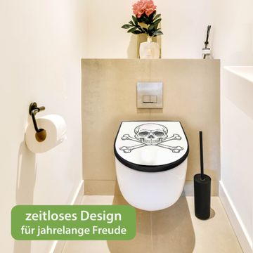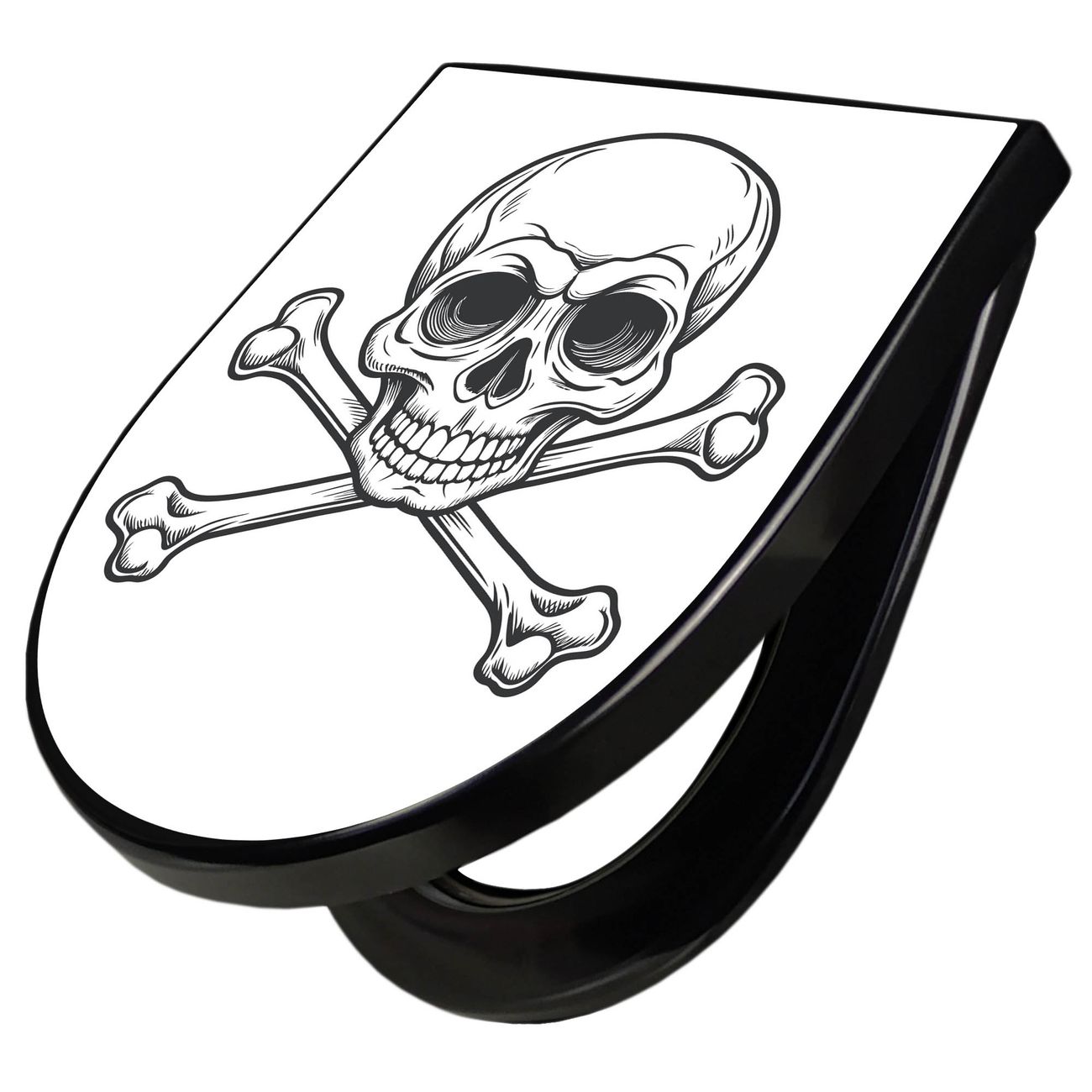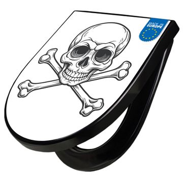 WC Sitz D-Form Schwarz mit Absenkautomatik Motiv Totenkopfsymbol