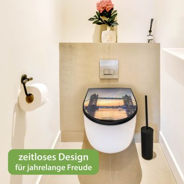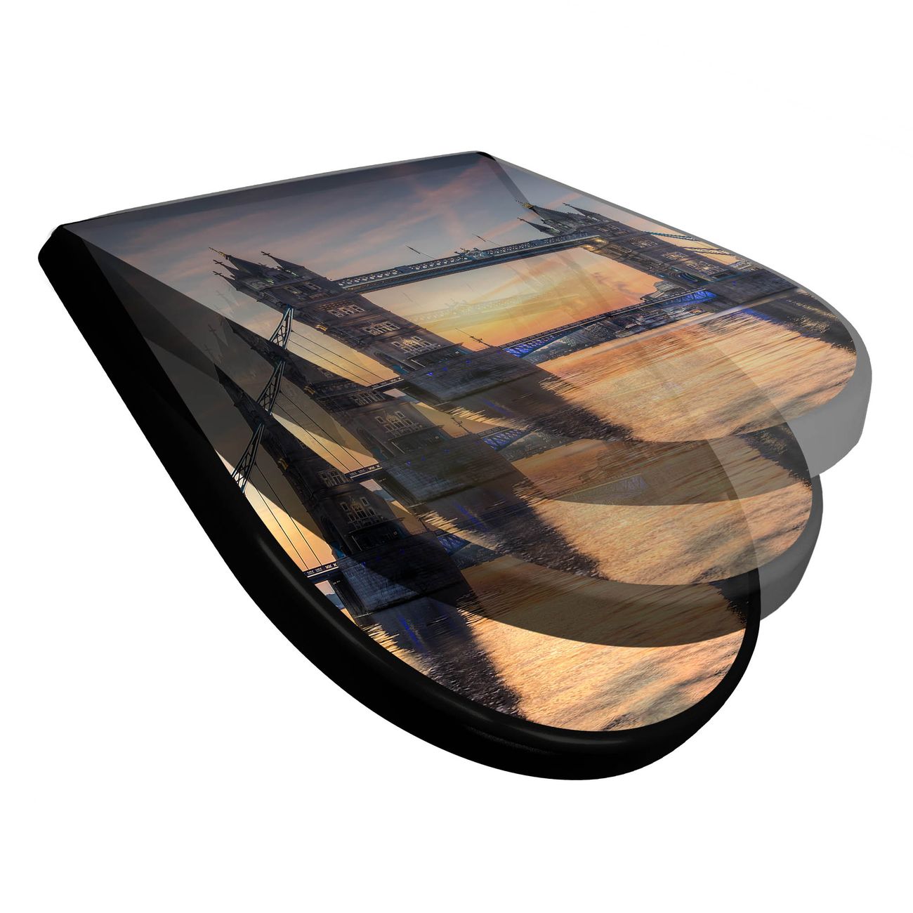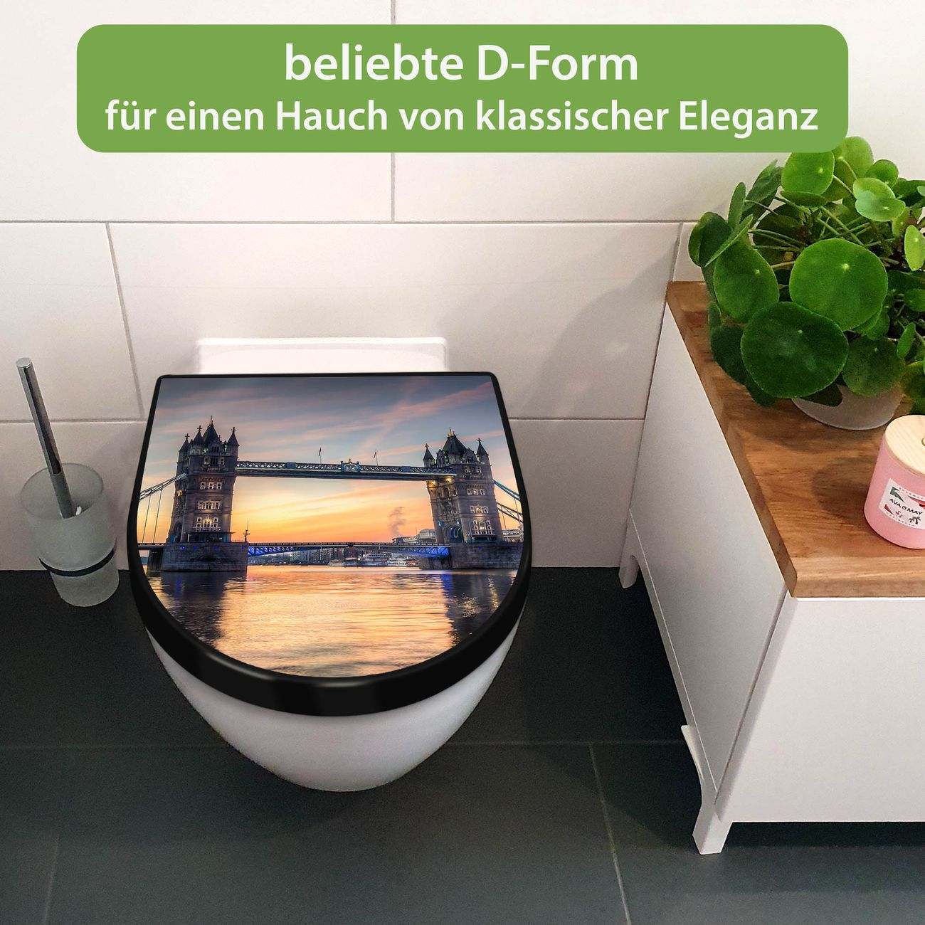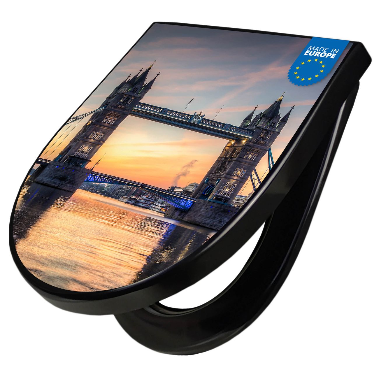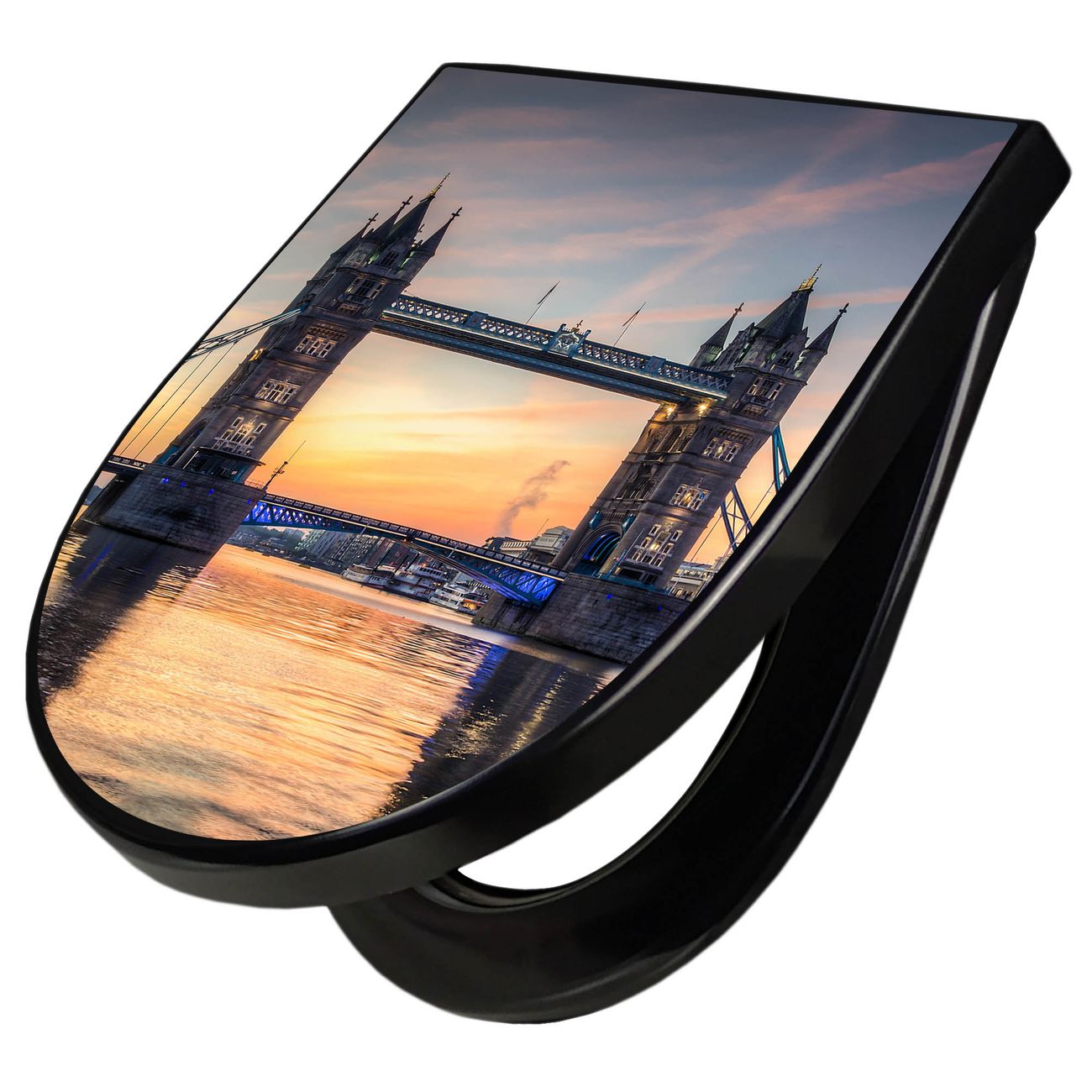WC Sitz D-Form Schwarz mit Absenkautomatik Motiv Tower Bridge