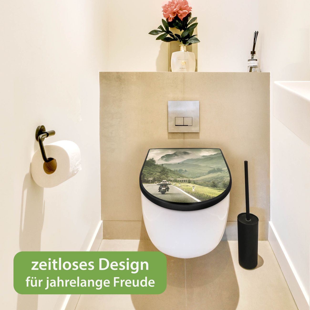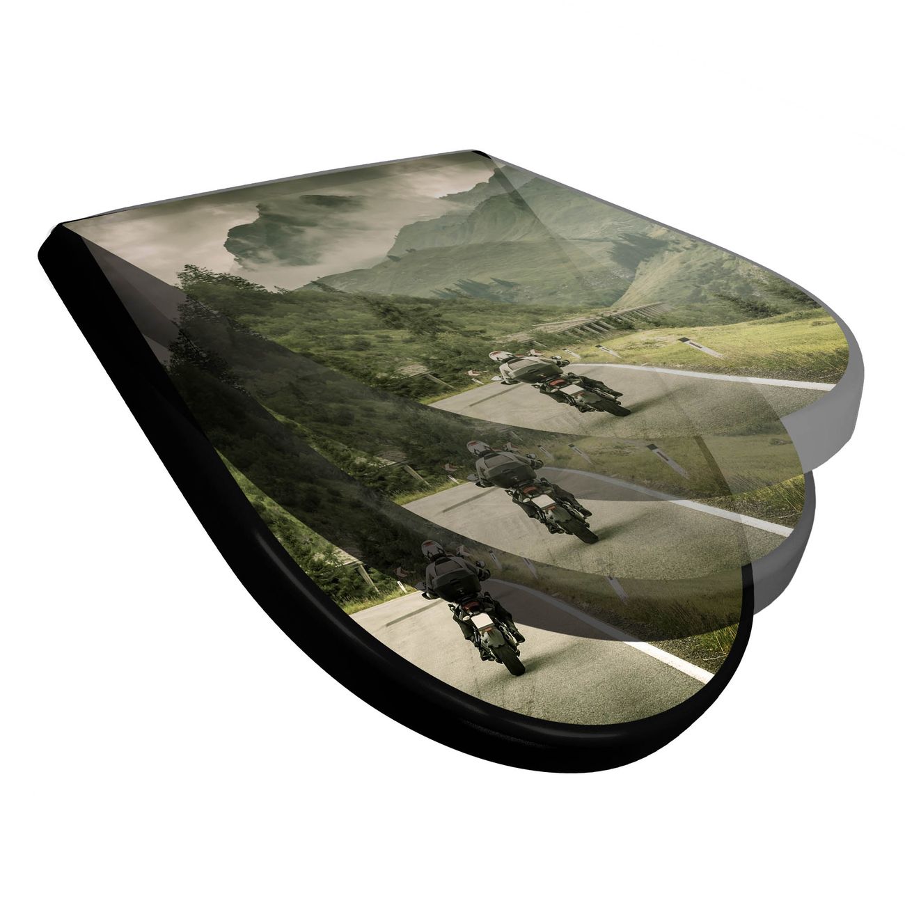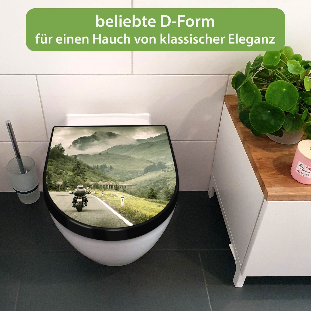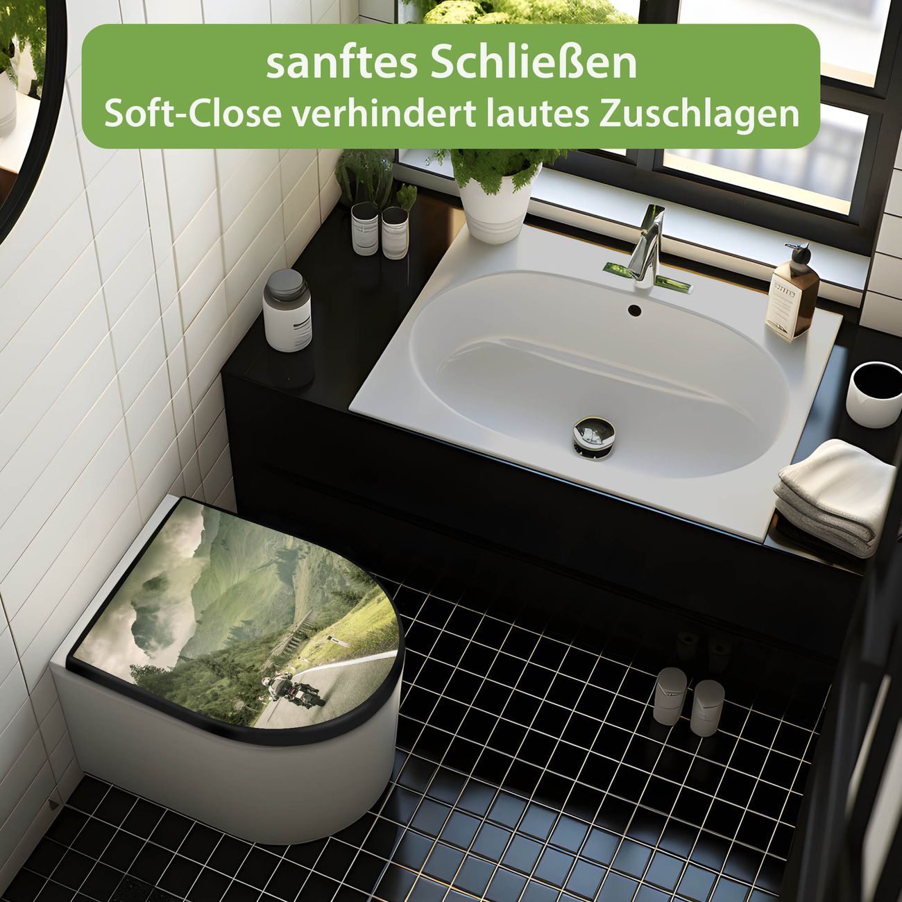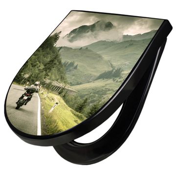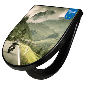WC Sitz D-Form Schwarz mit Absenkautomatik Motiv Transalp