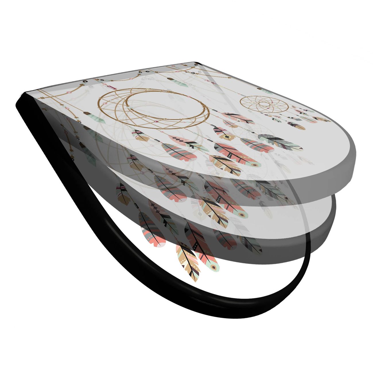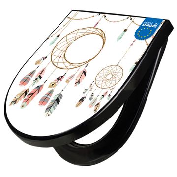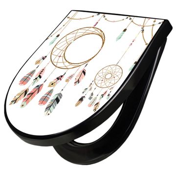 WC Sitz D-Form Schwarz mit Absenkautomatik Motiv Traumfänger Boho