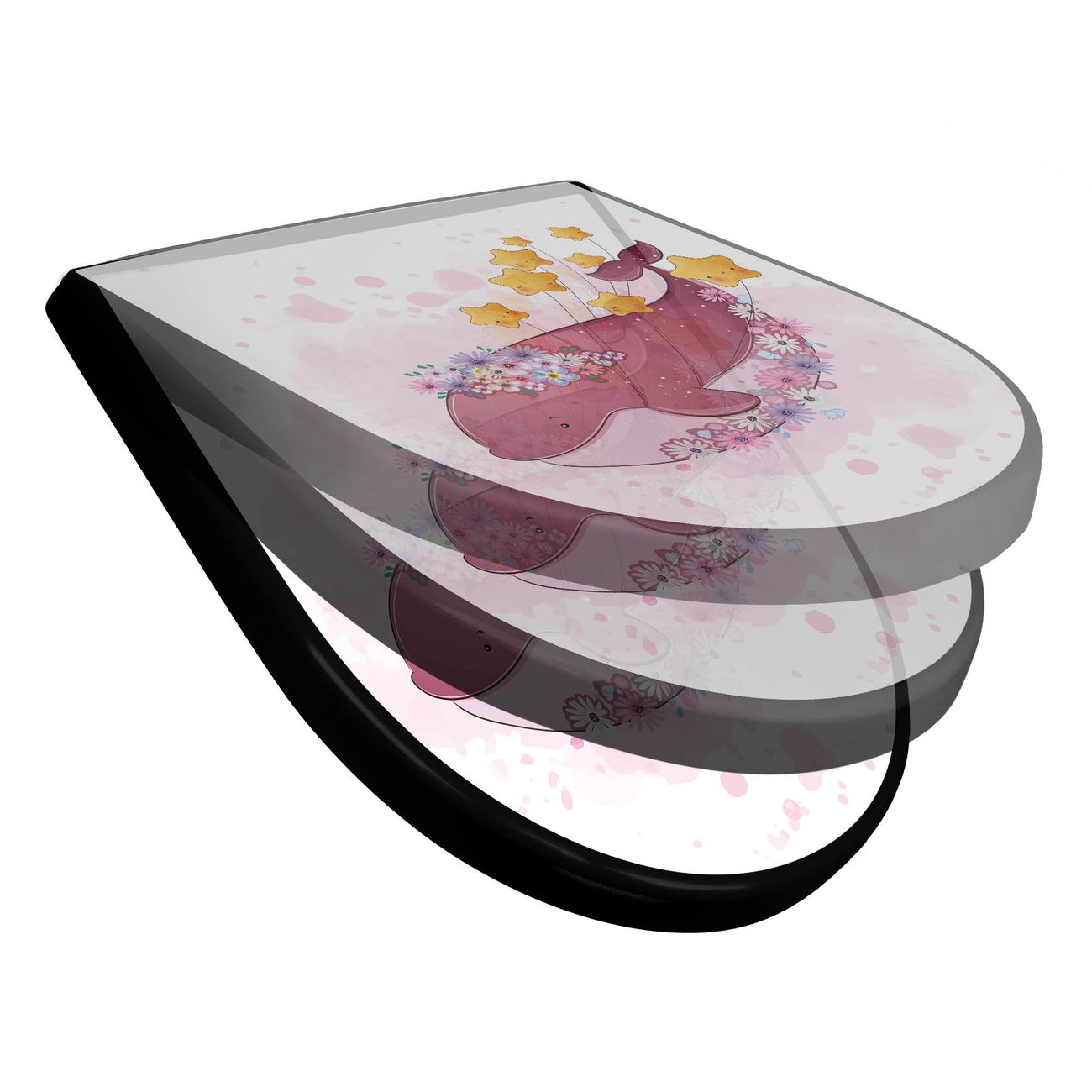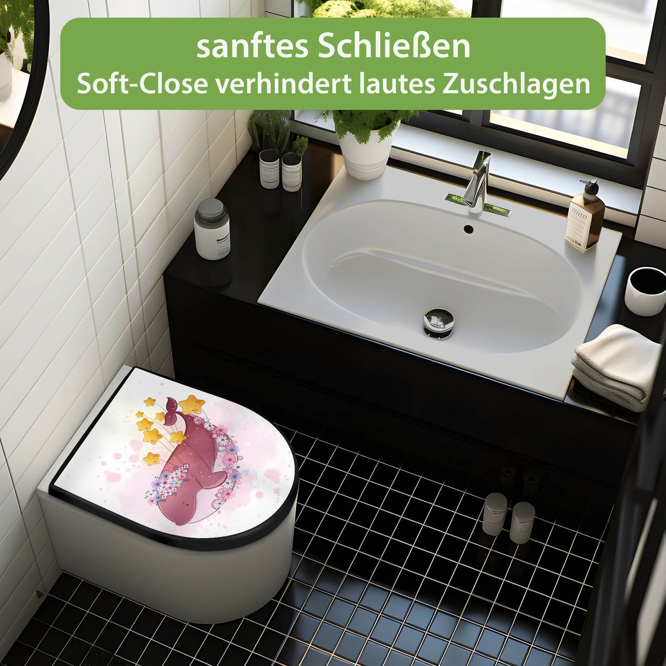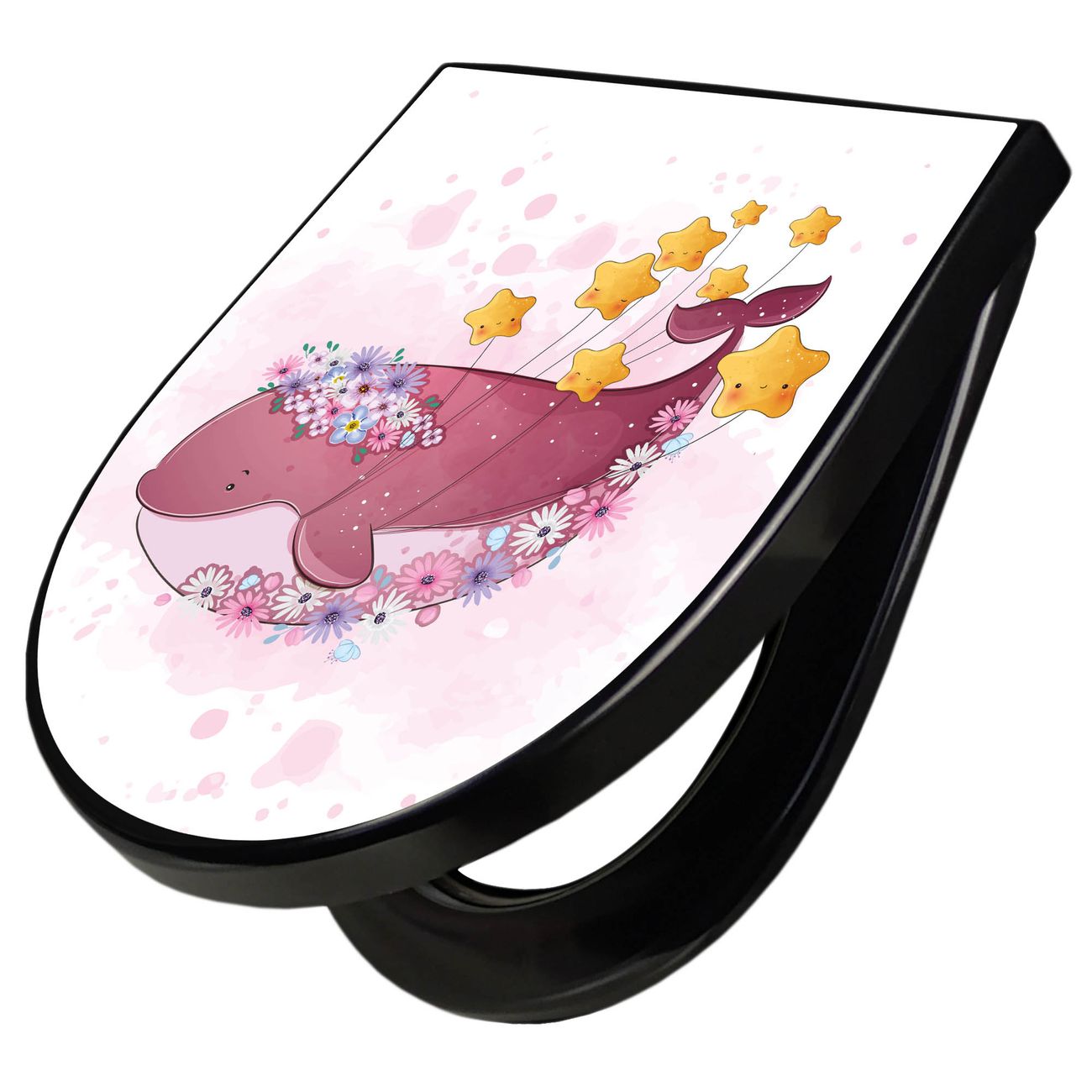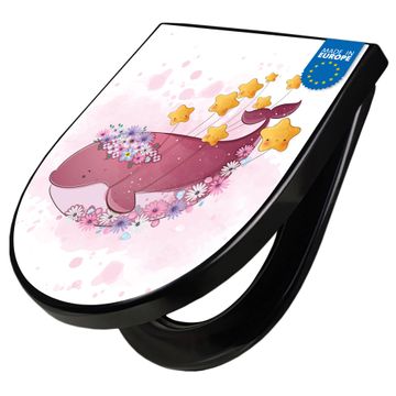 WC Sitz D-Form Schwarz mit Absenkautomatik Motiv Traumwal mit Sternen