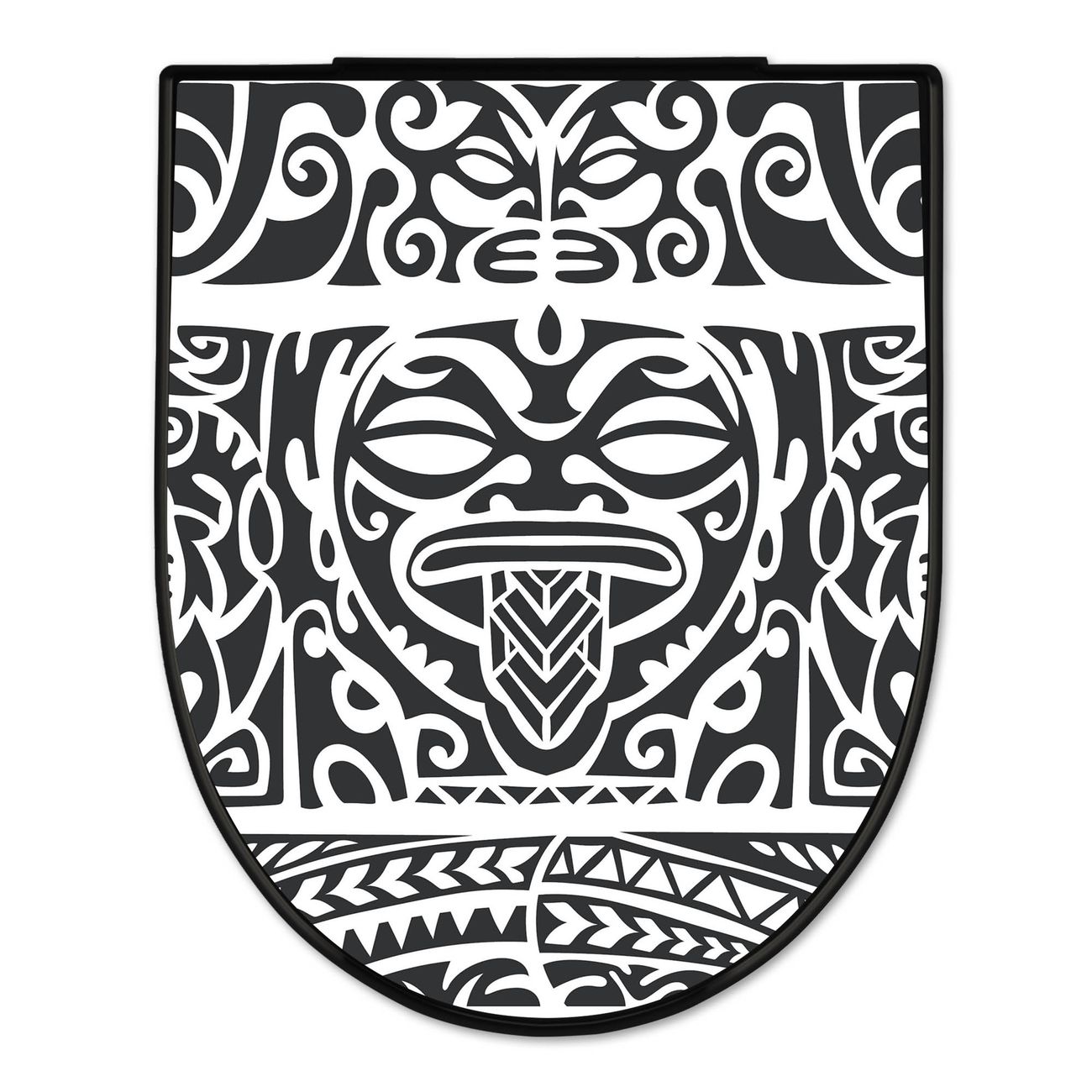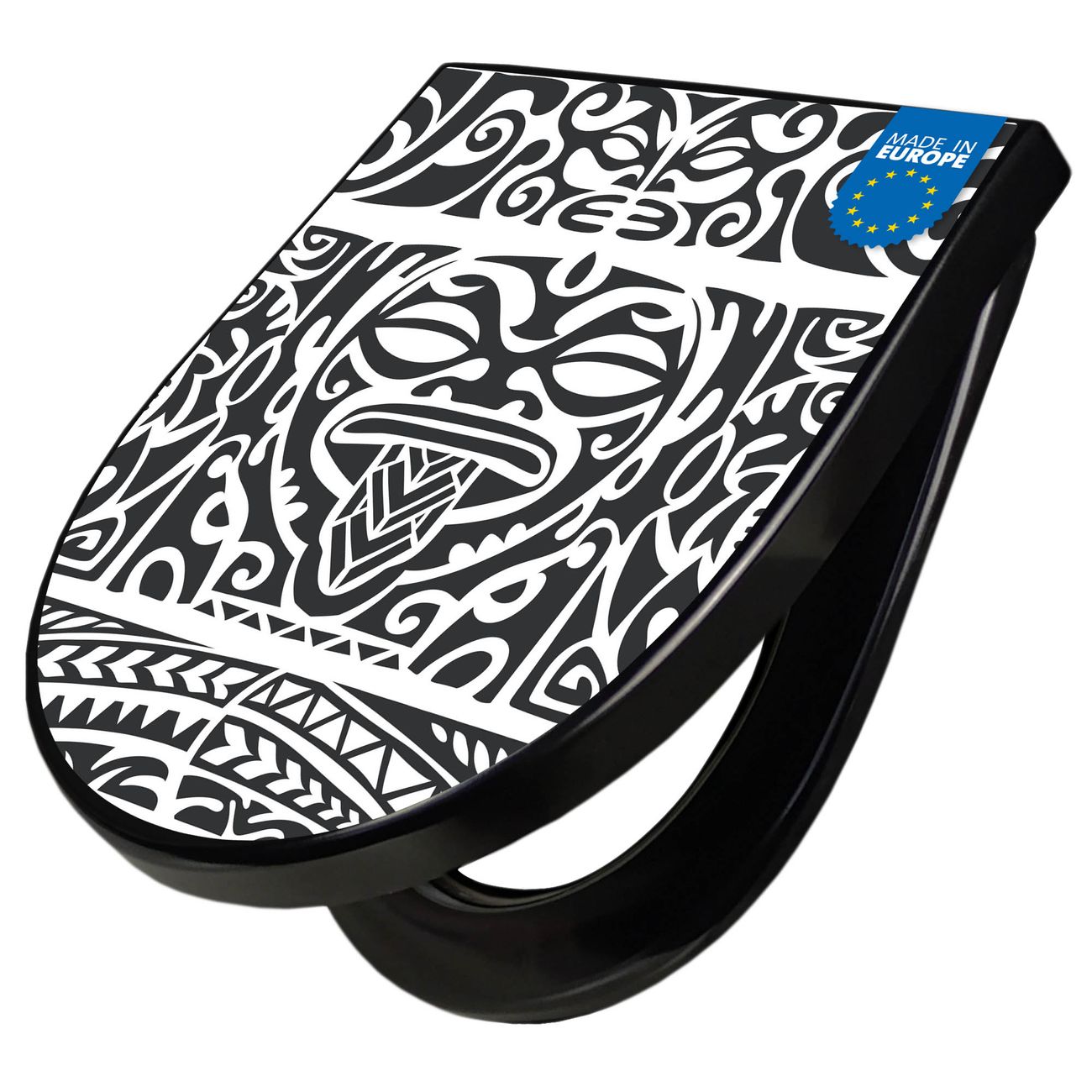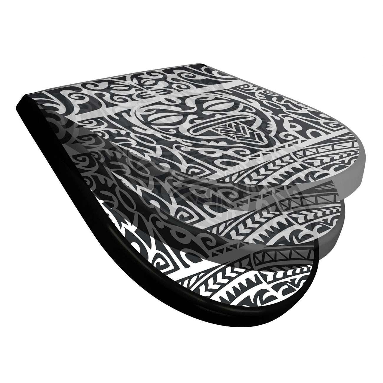 WC Sitz D-Form Schwarz mit Absenkautomatik Motiv Tribal Muster