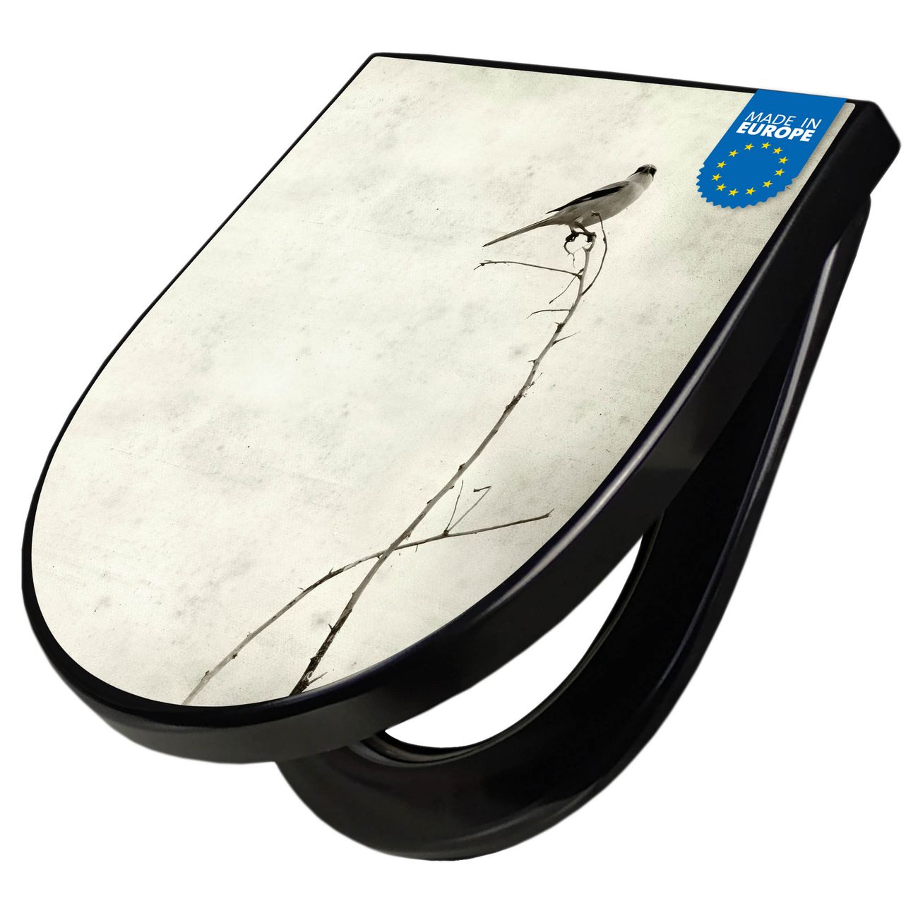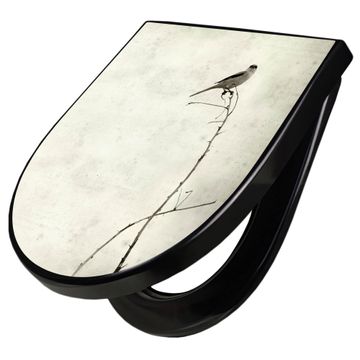 WC Sitz D-Form Schwarz mit Absenkautomatik Motiv Tristessa