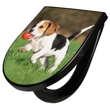 WC Sitz D-Form Schwarz mit Absenkautomatik Motiv Trixi