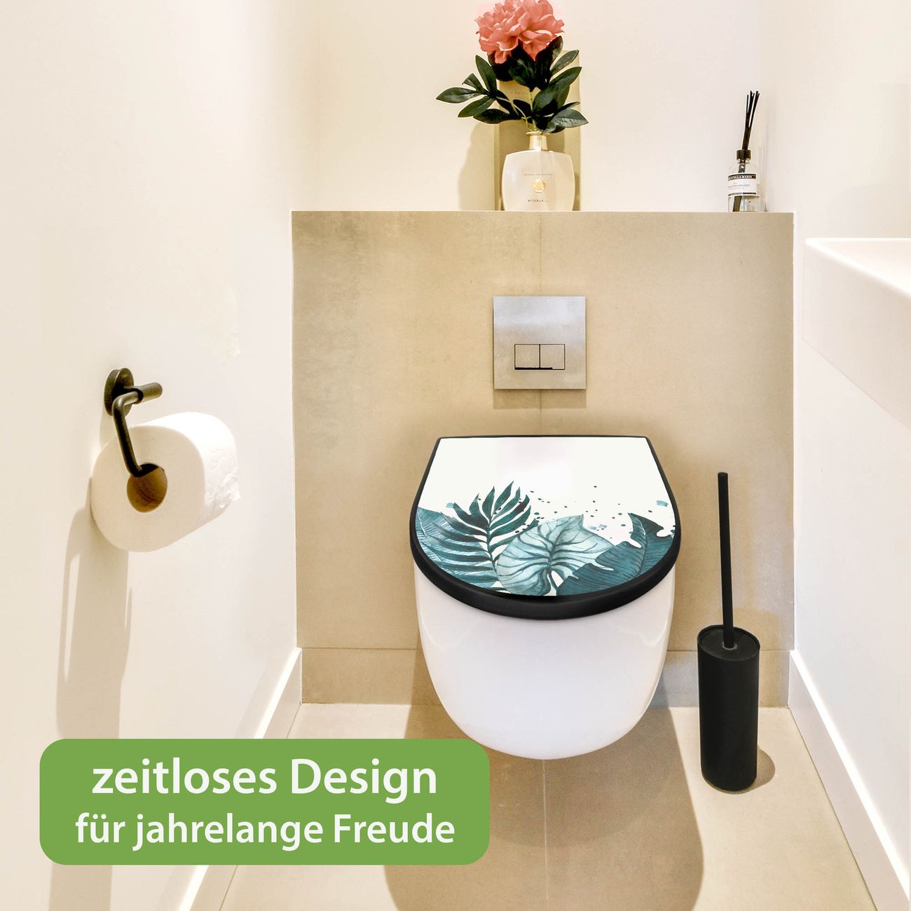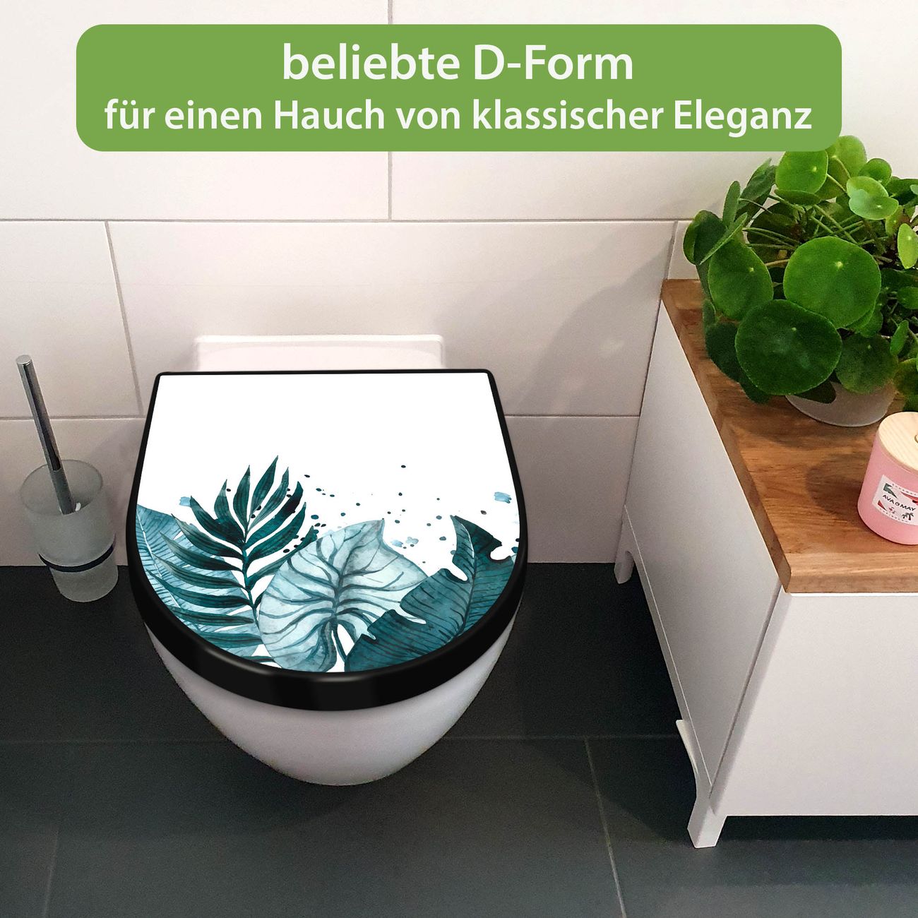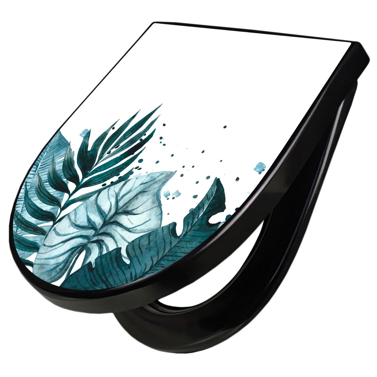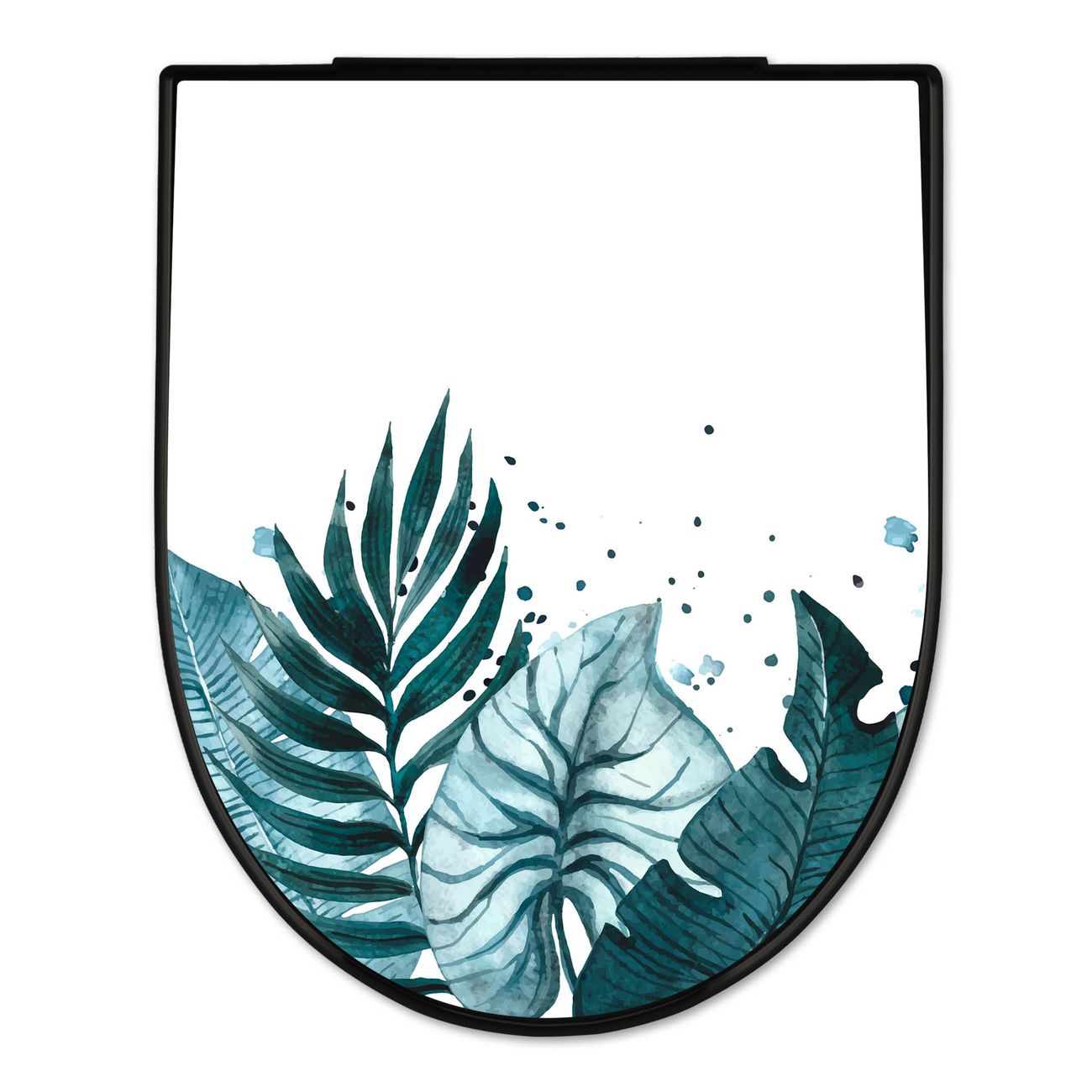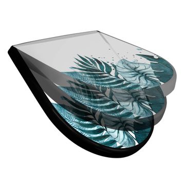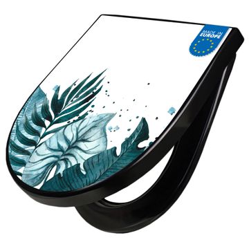 WC Sitz D-Form Schwarz mit Absenkautomatik Motiv Tropisches Aquarell