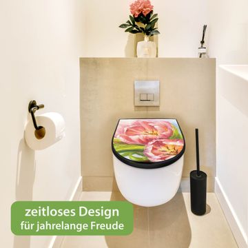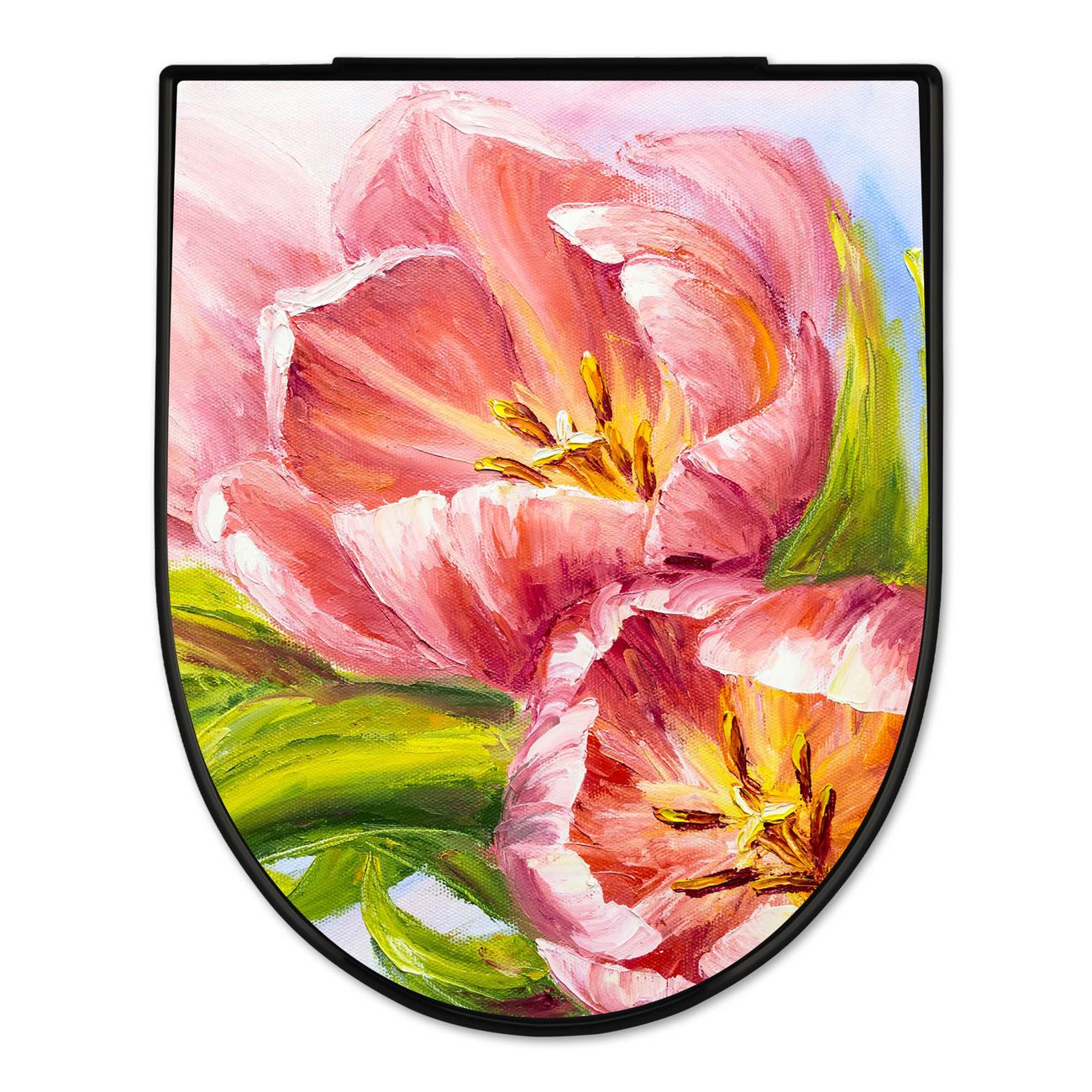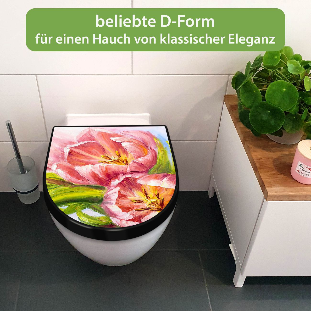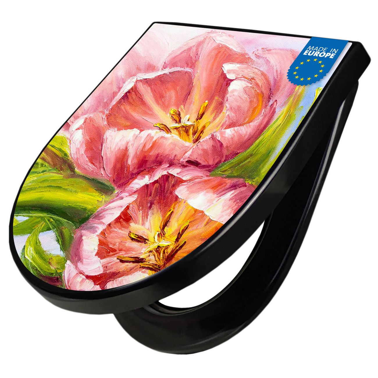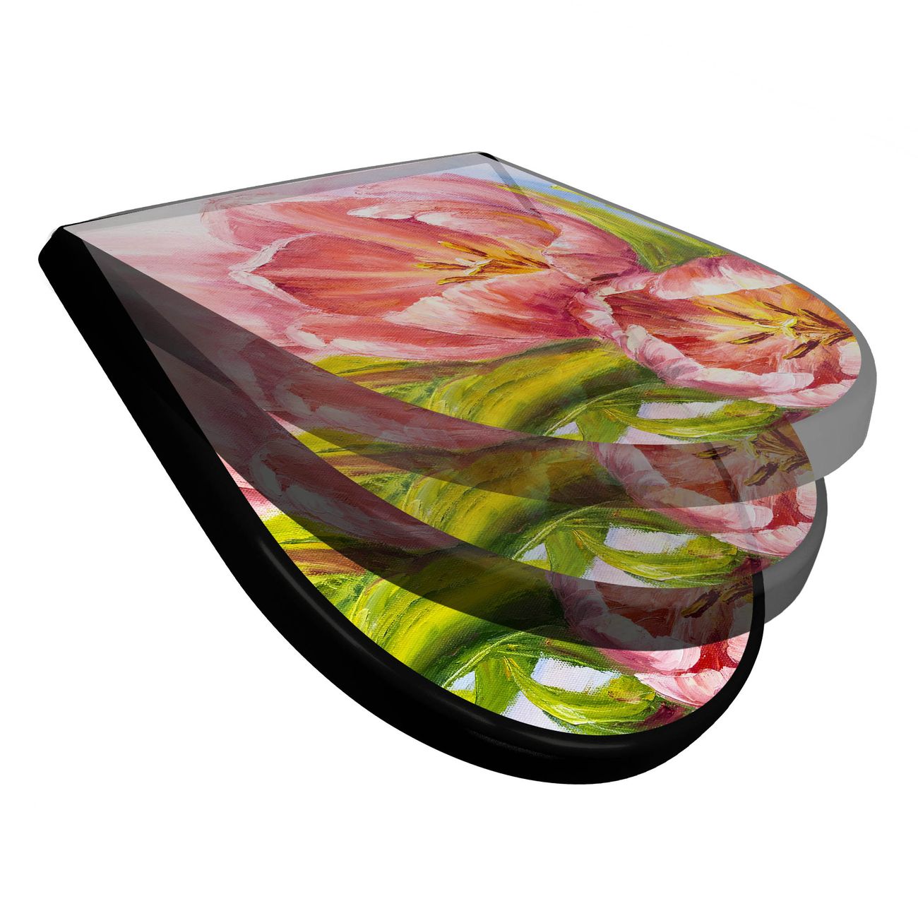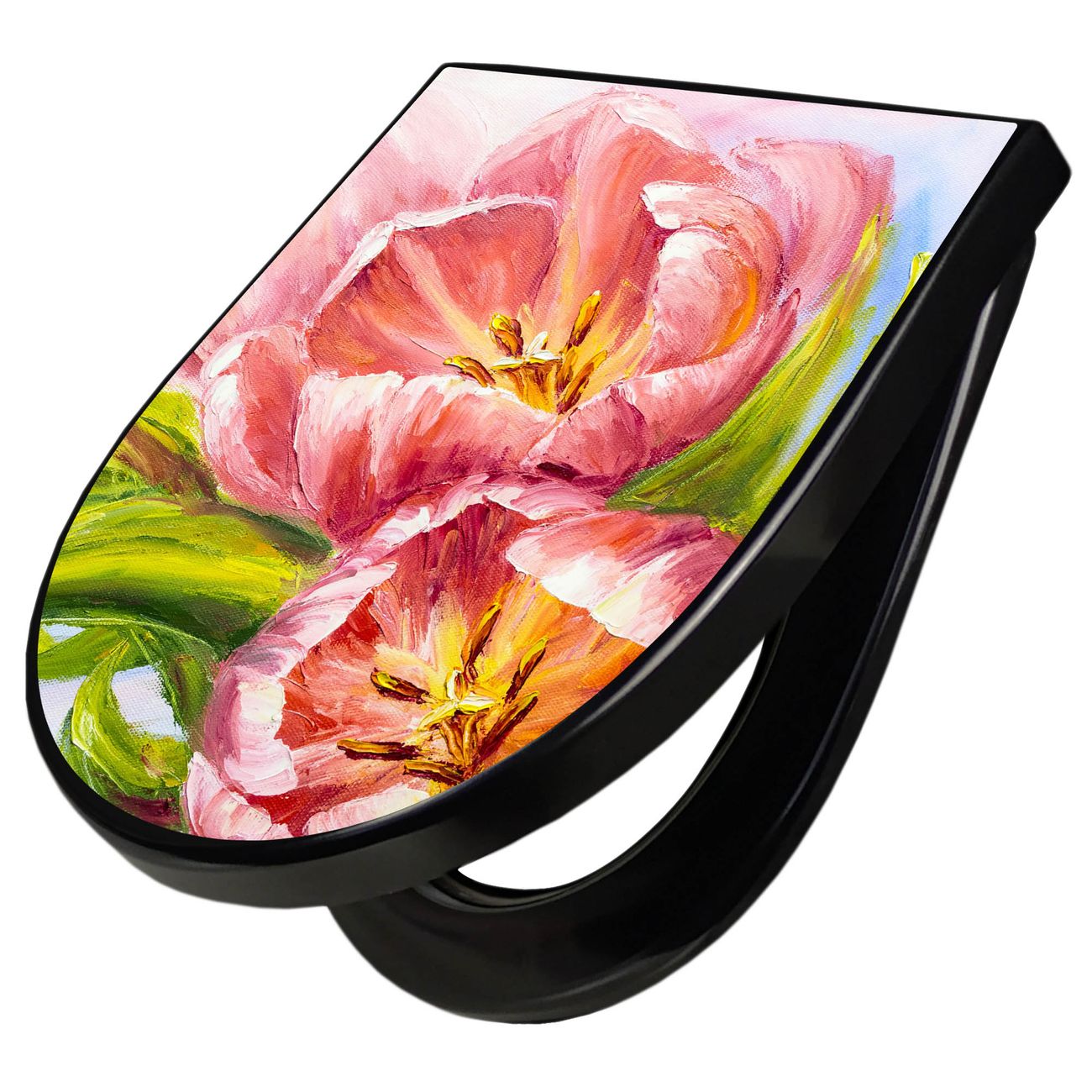 WC Sitz D-Form Schwarz mit Absenkautomatik Motiv Tulpen Detail