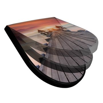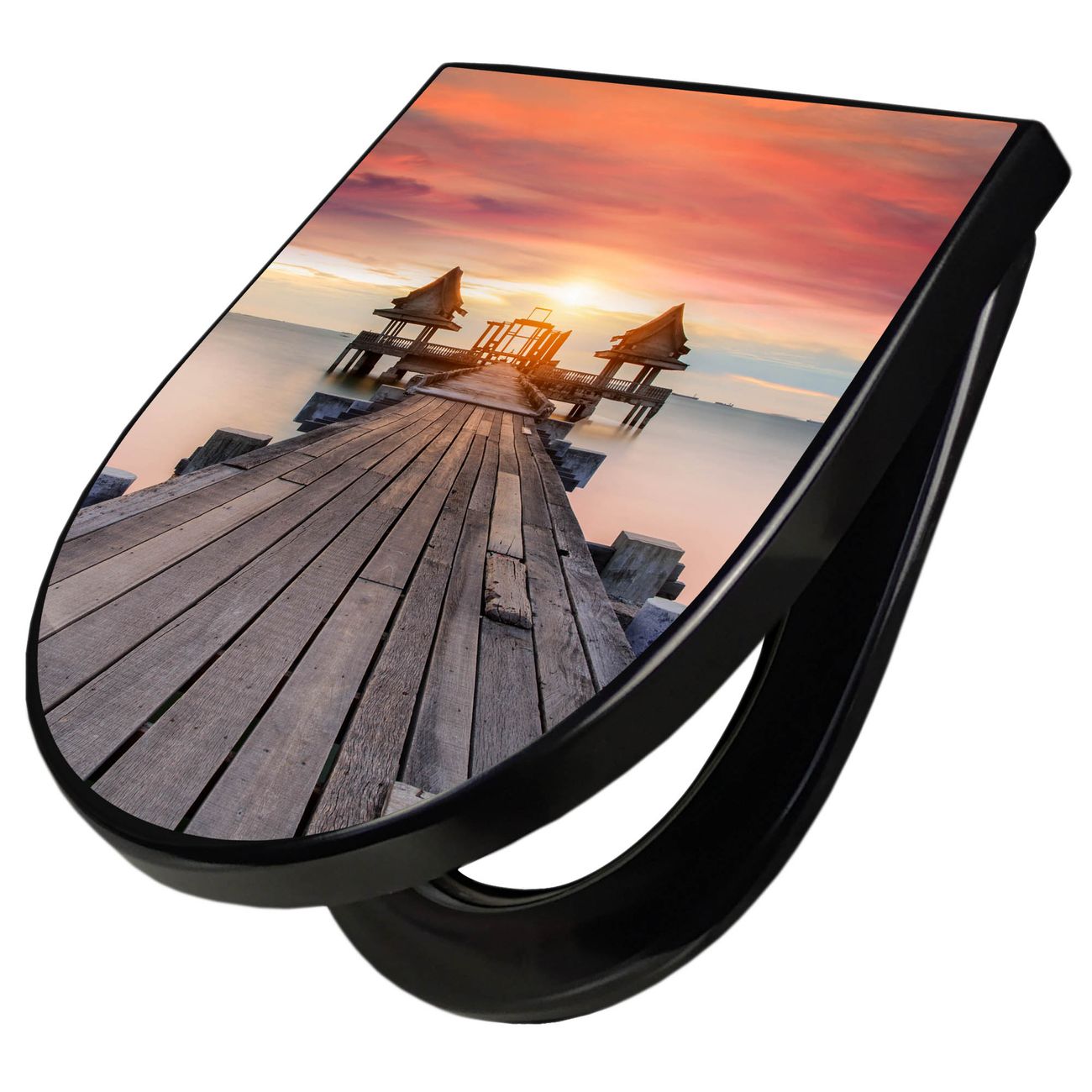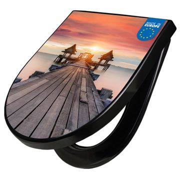 WC Sitz D-Form Schwarz mit Absenkautomatik Motiv Überm Nebelmeer