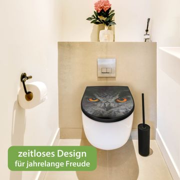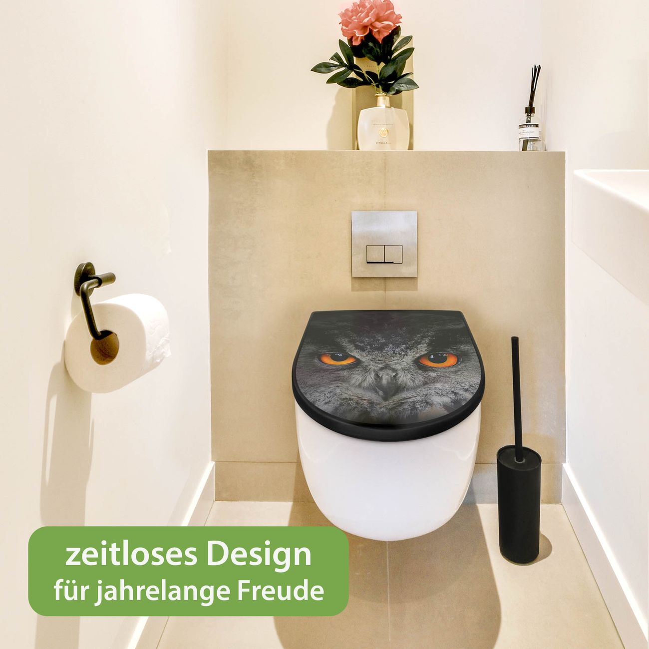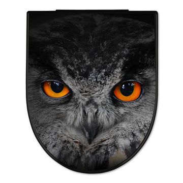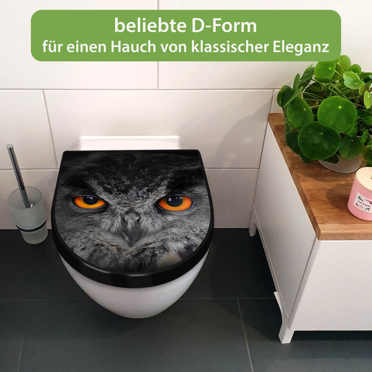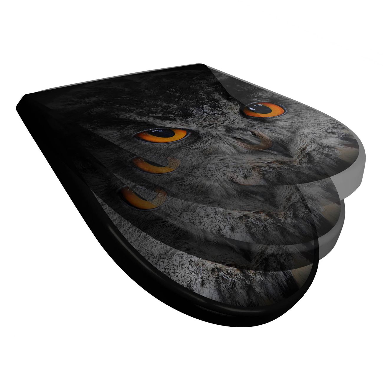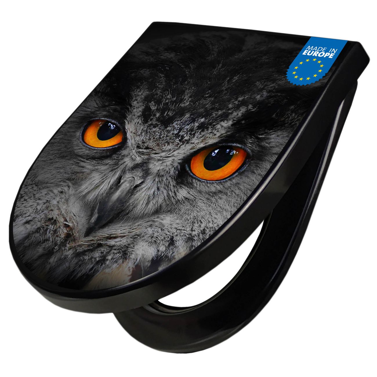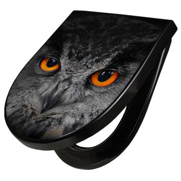 WC Sitz D-Form Schwarz mit Absenkautomatik Motiv Uhu