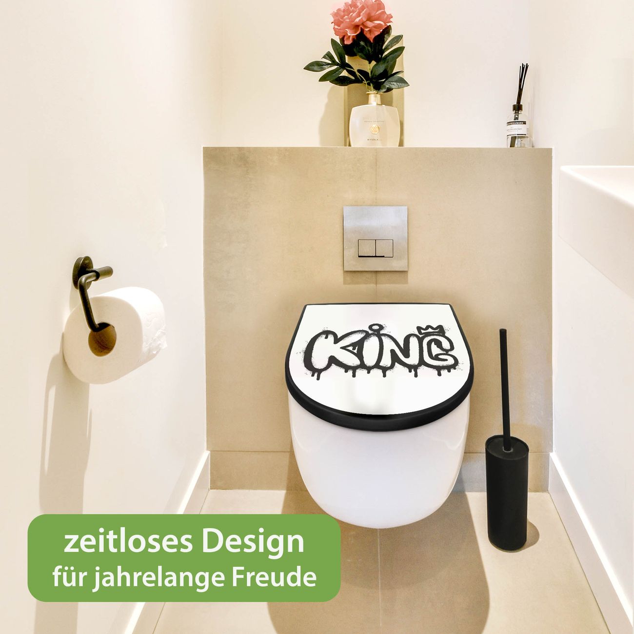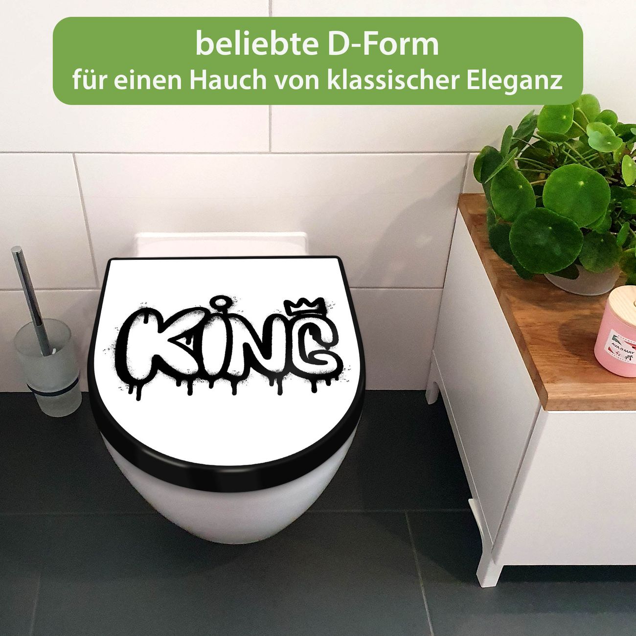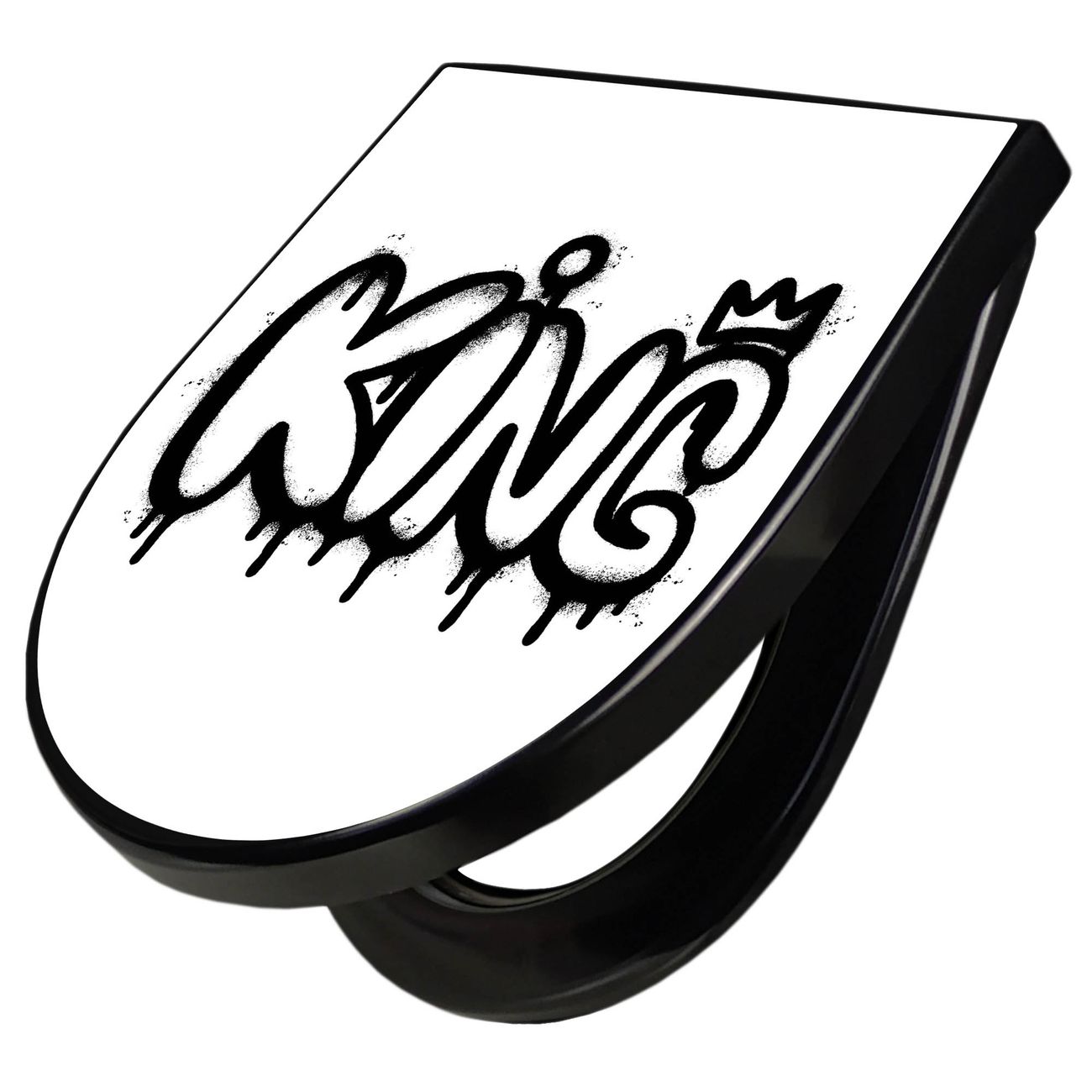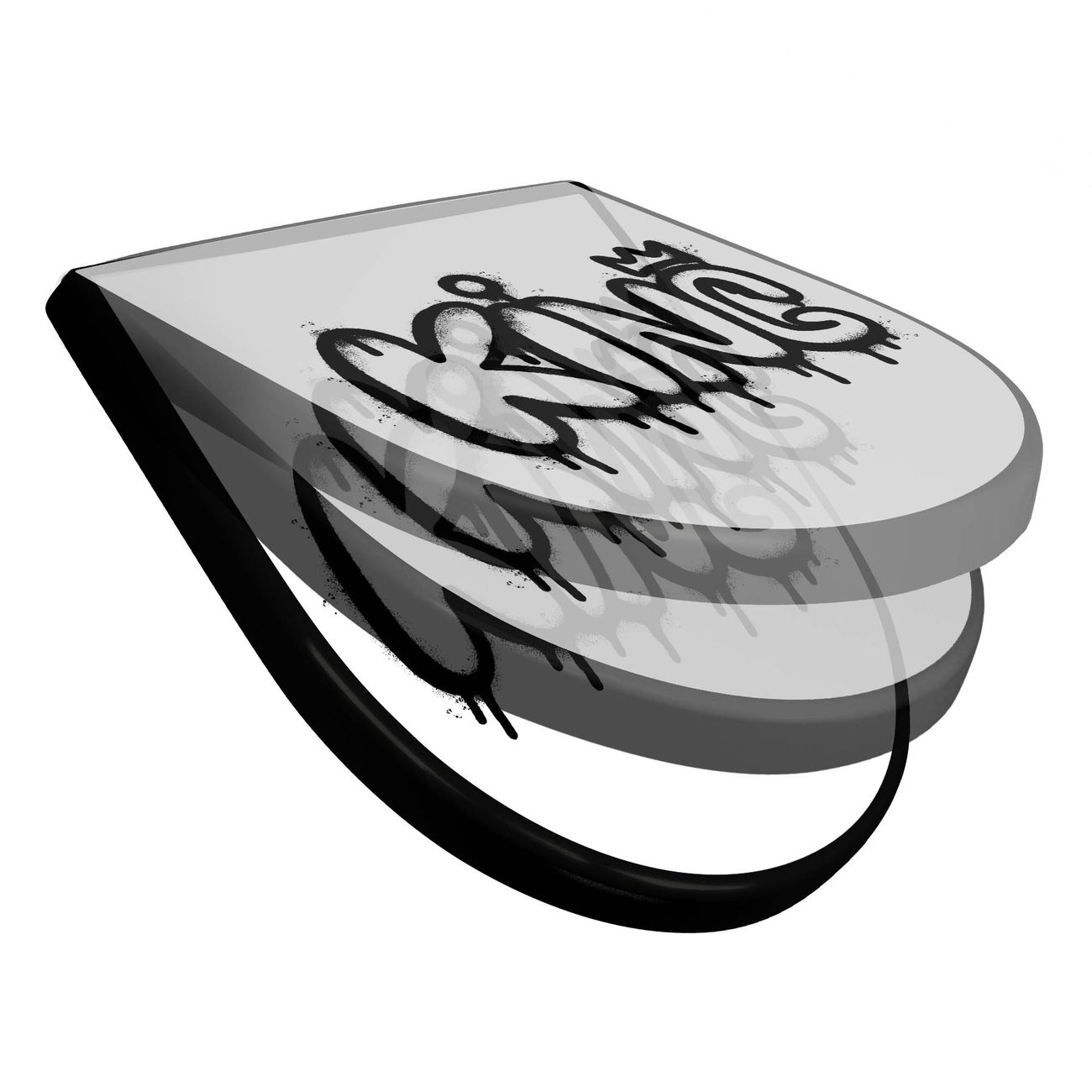 WC Sitz D-Form Schwarz mit Absenkautomatik Motiv Urban King Graffiti