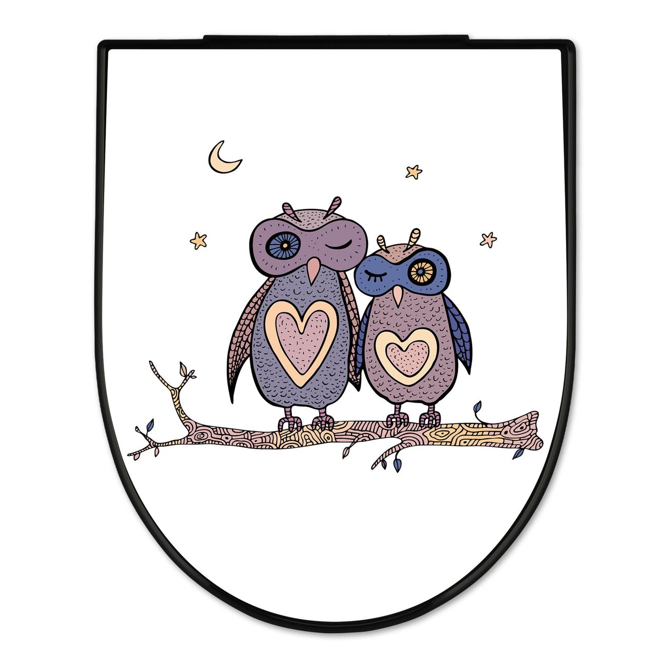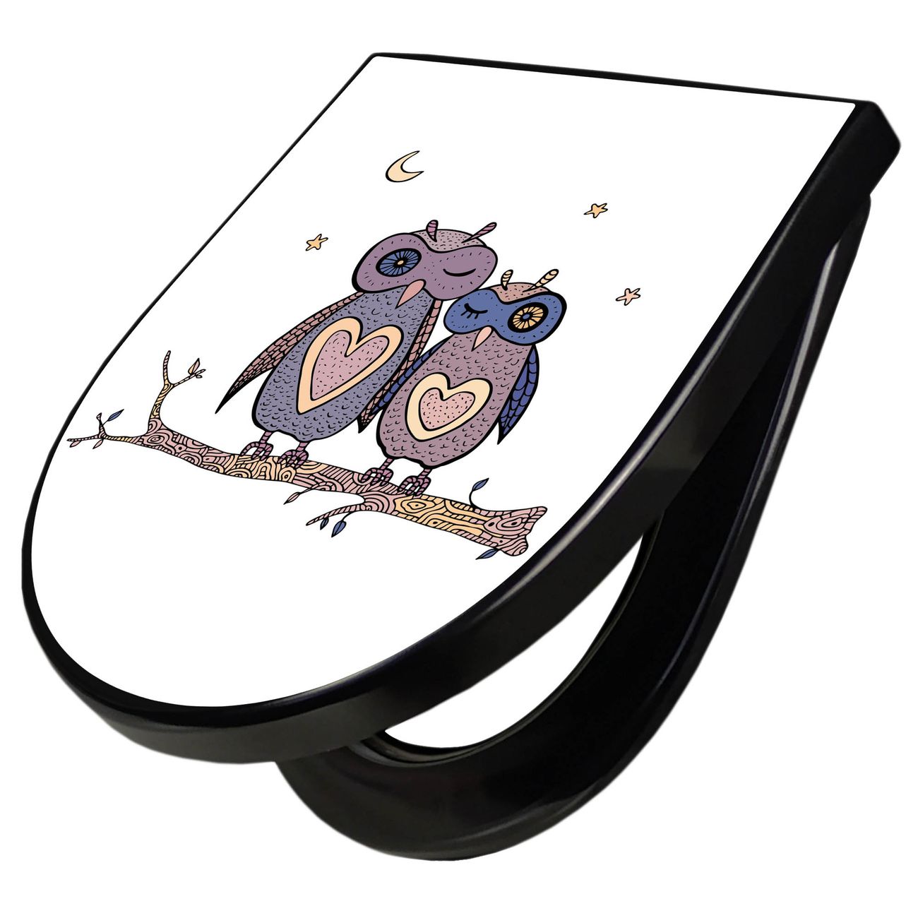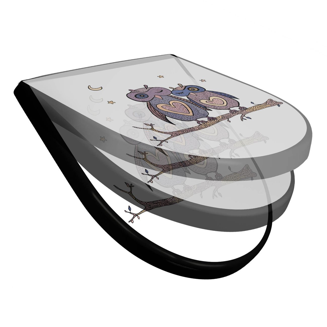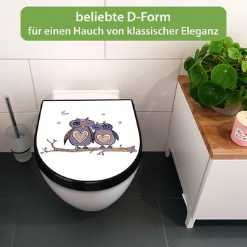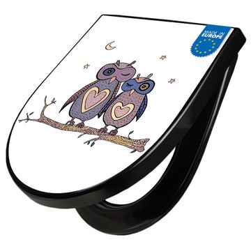 WC Sitz D-Form Schwarz mit Absenkautomatik Motiv Verliebte Eulen