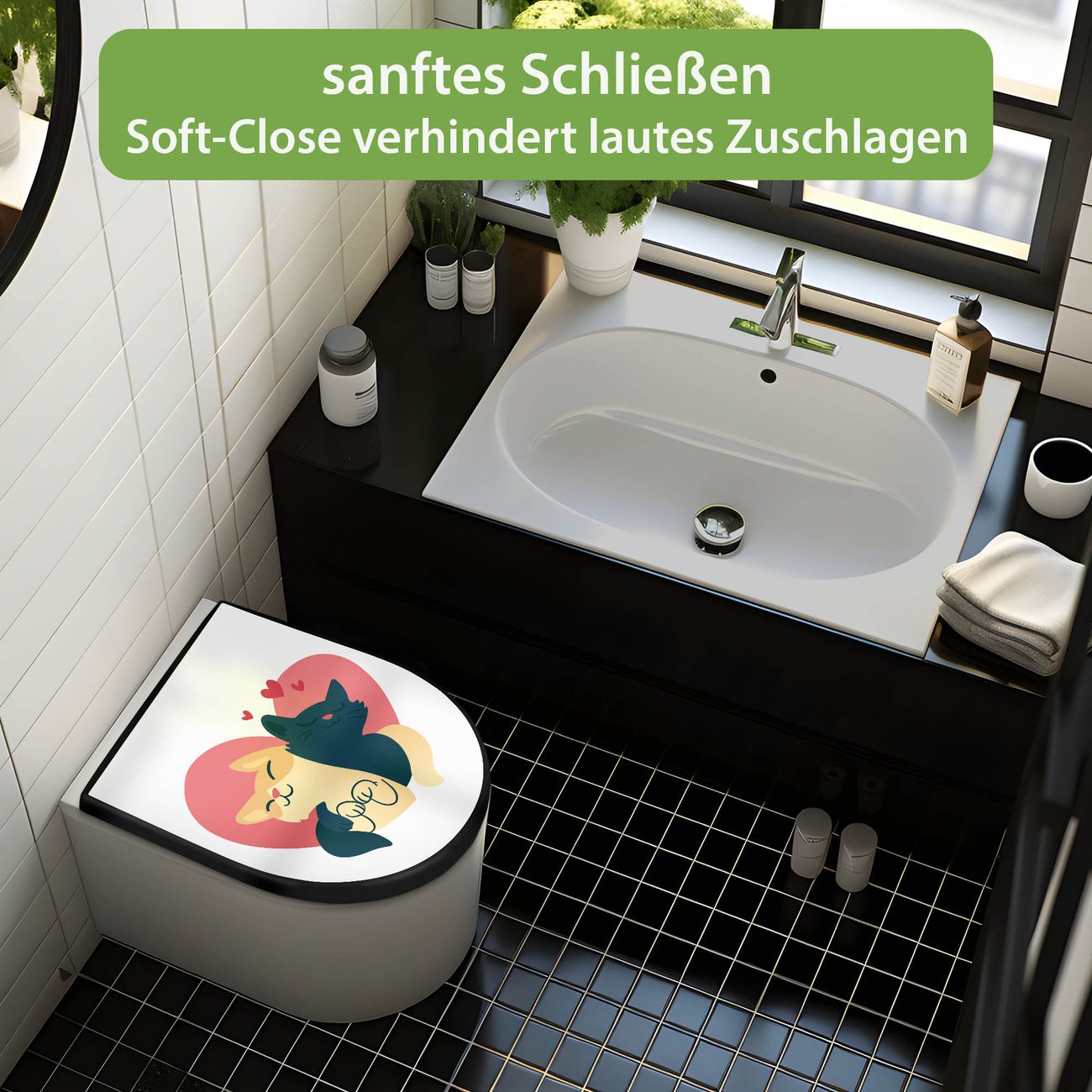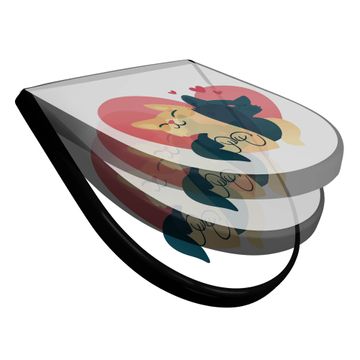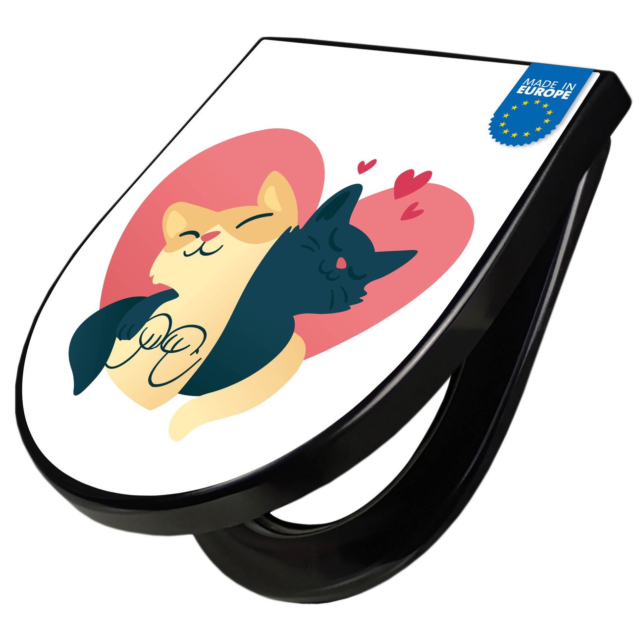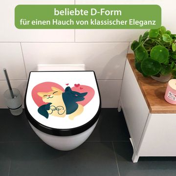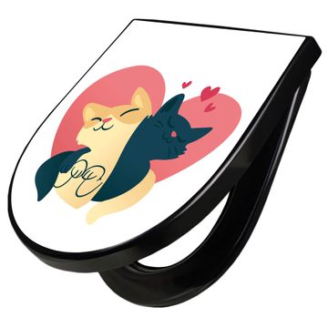 WC Sitz D-Form Schwarz mit Absenkautomatik Motiv Verliebte Katzen 1