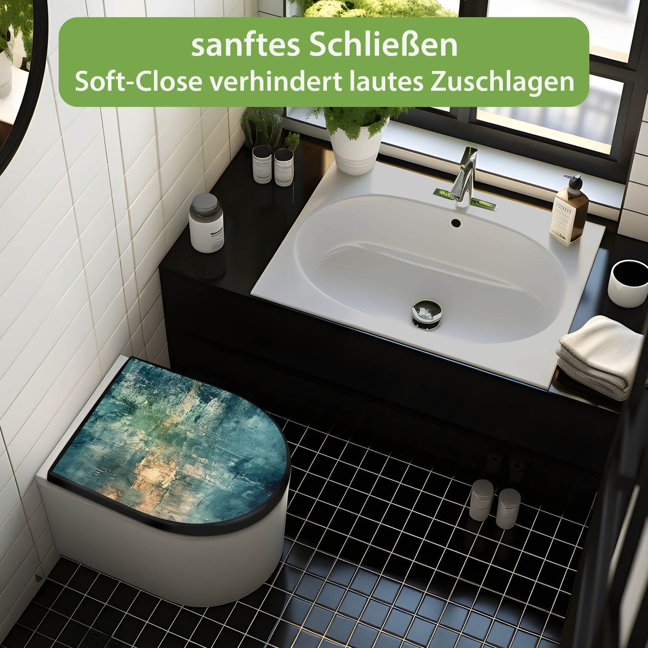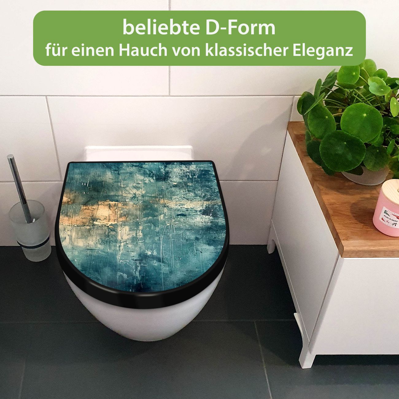 WC Sitz D-Form Schwarz mit Absenkautomatik Motiv Verwitterte Oberfläche