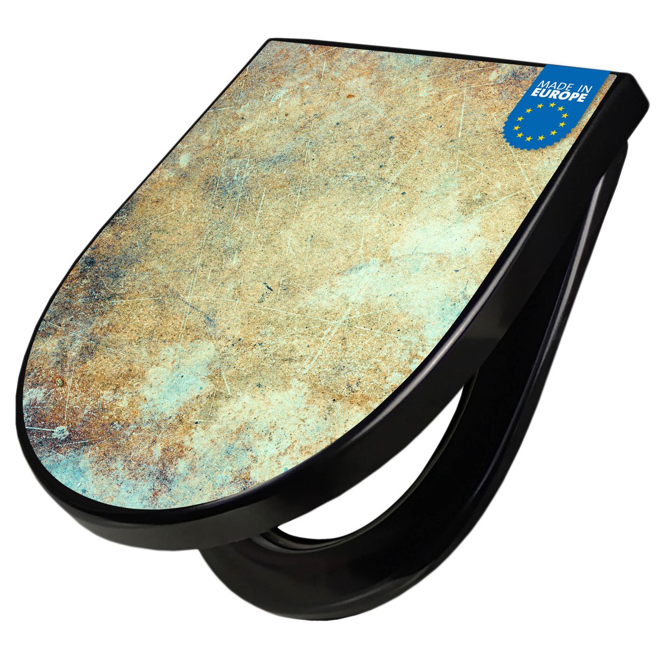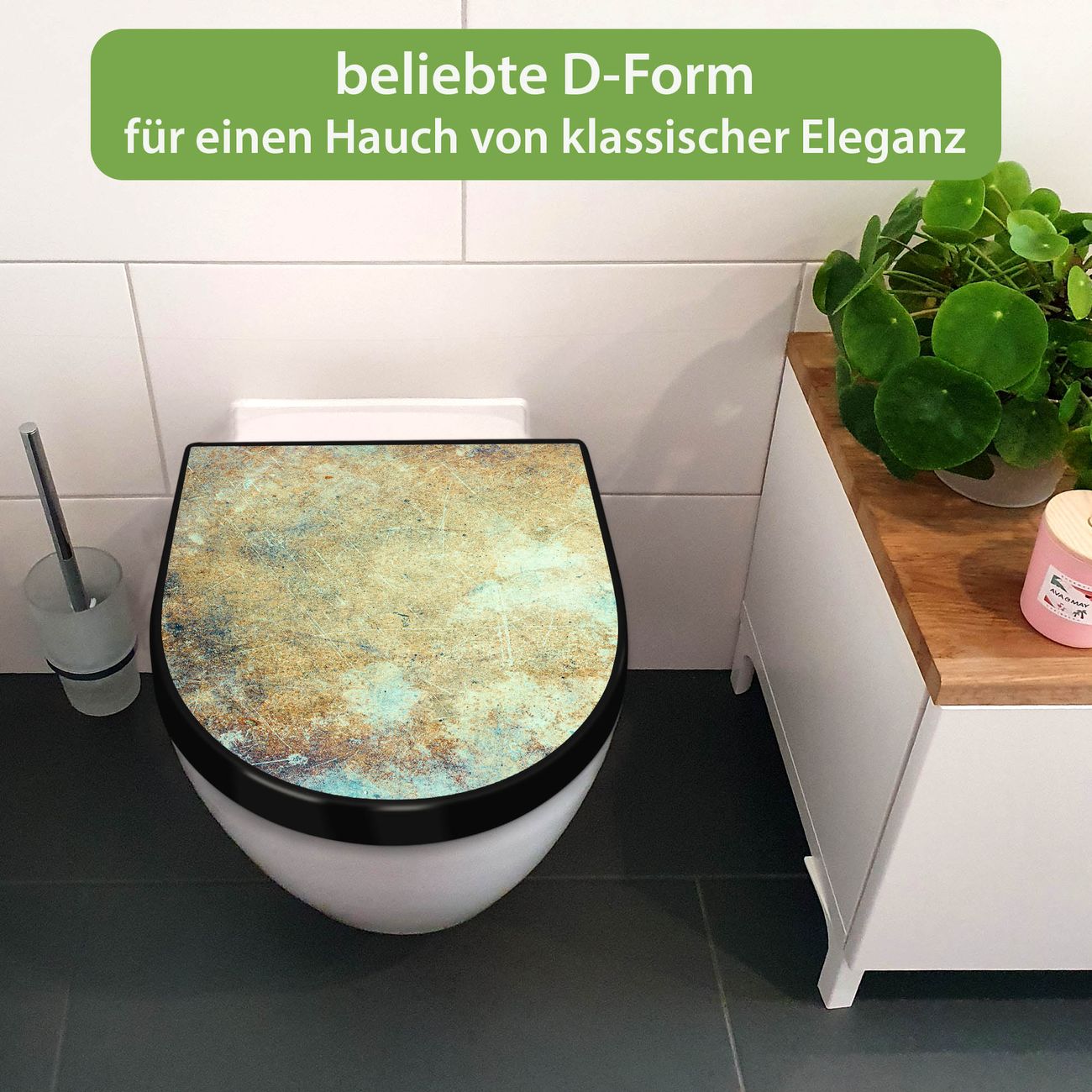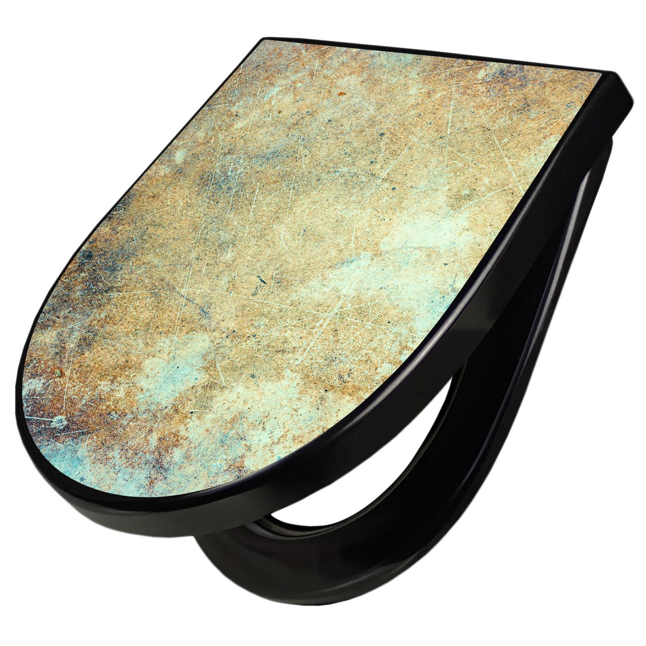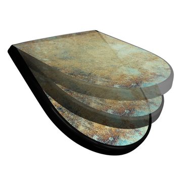 WC Sitz D-Form Schwarz mit Absenkautomatik Motiv Verwitterte Patina