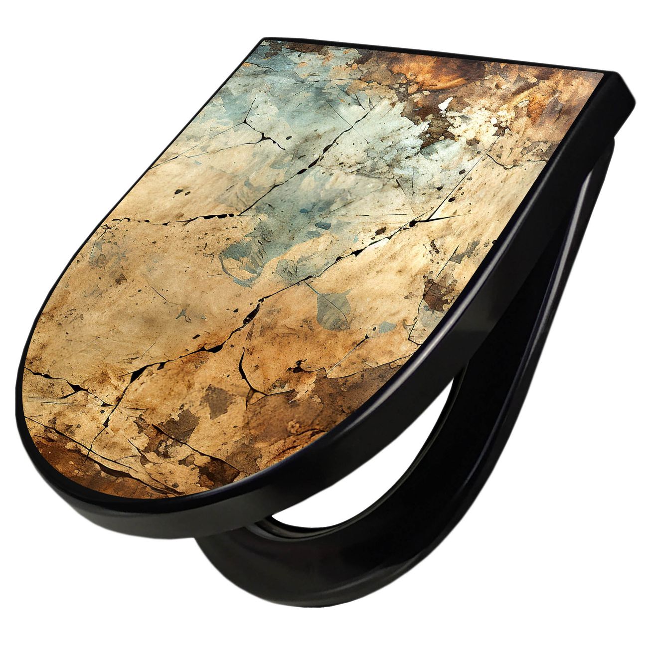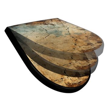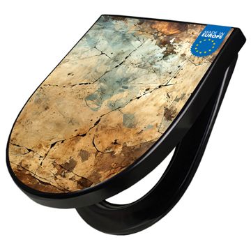 WC Sitz D-Form Schwarz mit Absenkautomatik Motiv Verwitterte Texturen