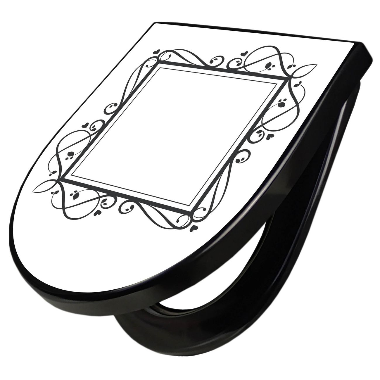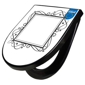 WC Sitz D-Form Schwarz mit Absenkautomatik Motiv Verzierter Herzrahmen