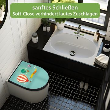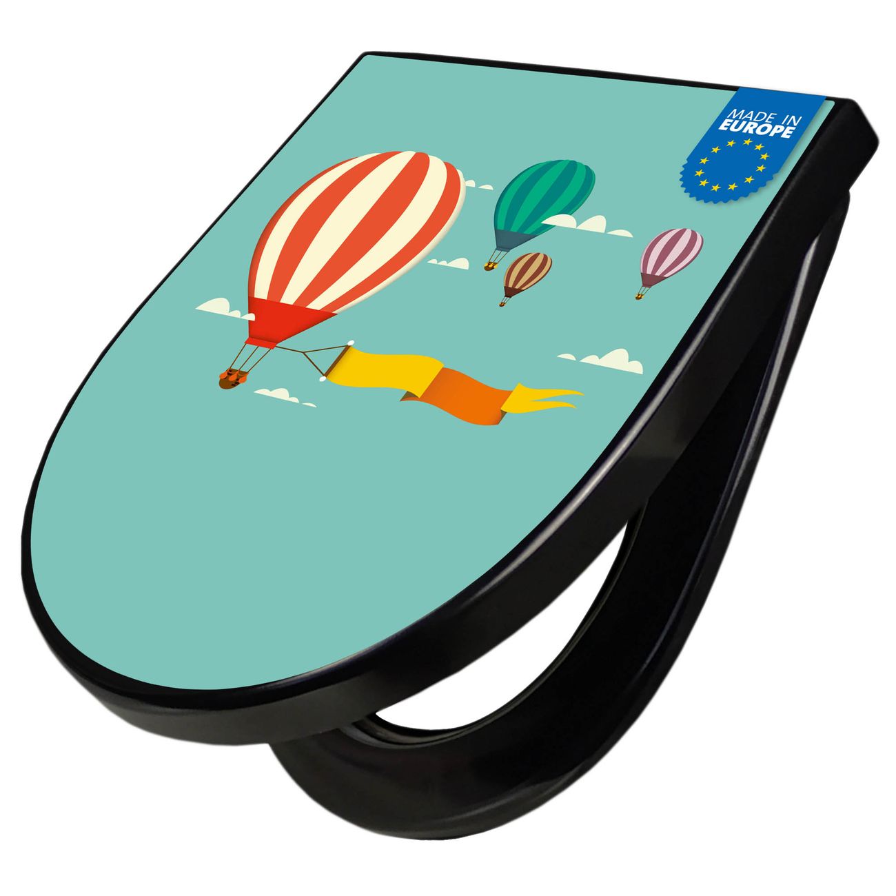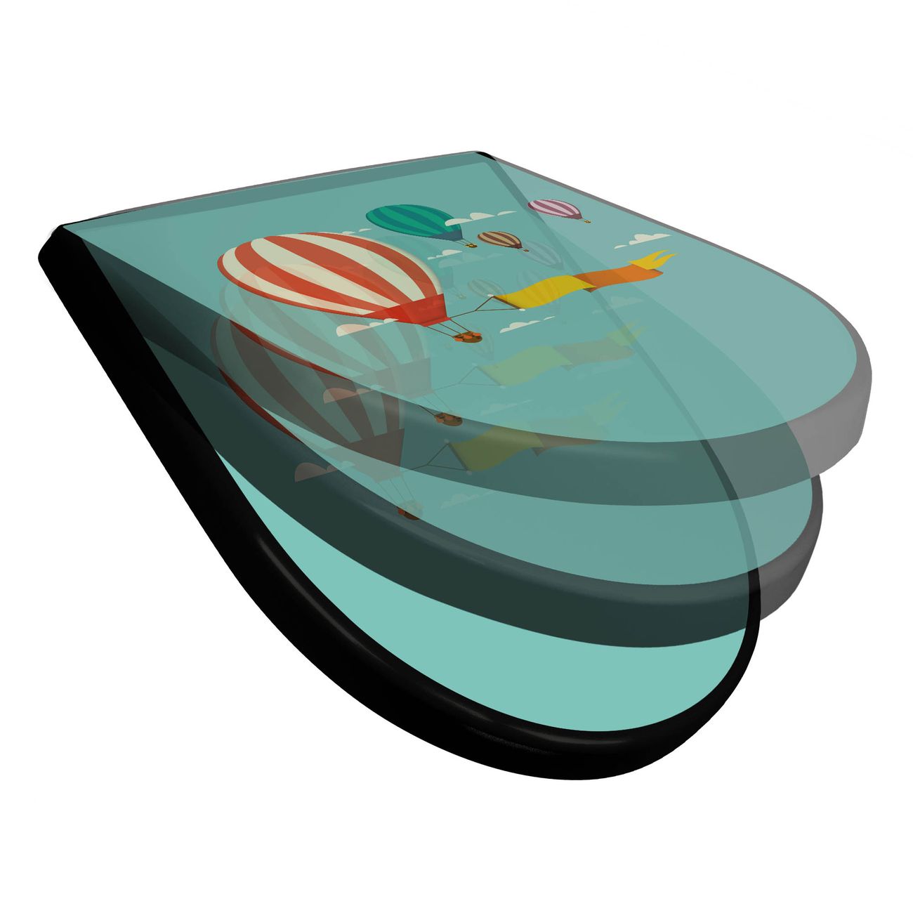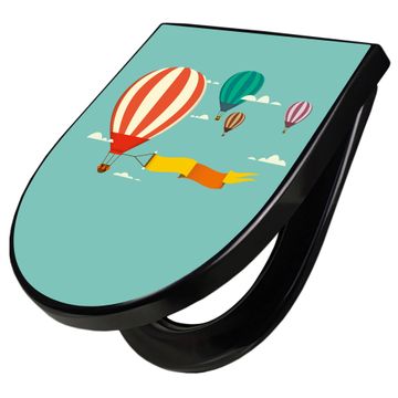 WC Sitz D-Form Schwarz mit Absenkautomatik Motiv Vier Ballons